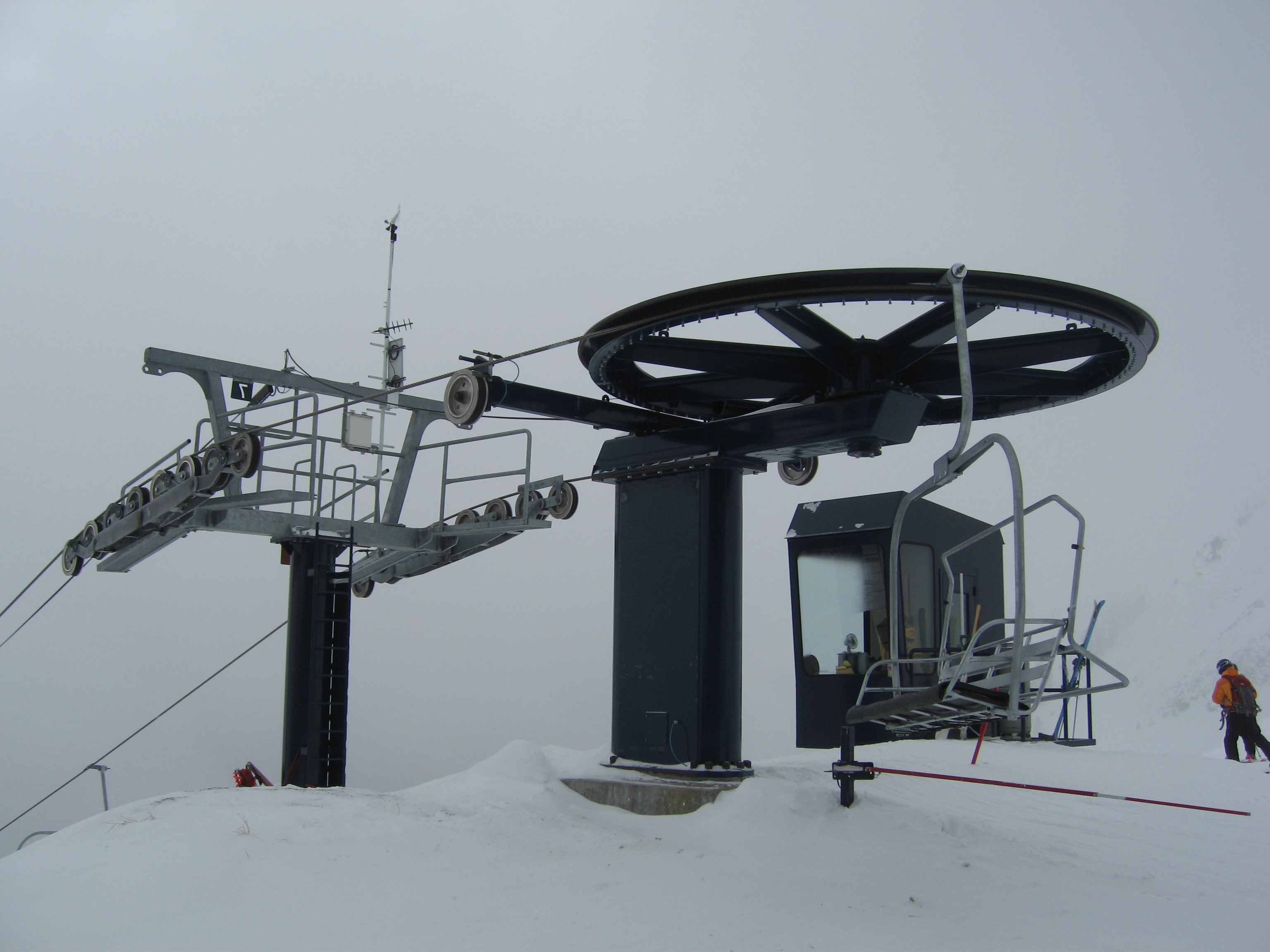 Top bullwheel.Looking up the lift line.Bottom terminal.Another view of the top and tower 7.Looking up at the top.Bottom tension-drive station.Looking up from the base.