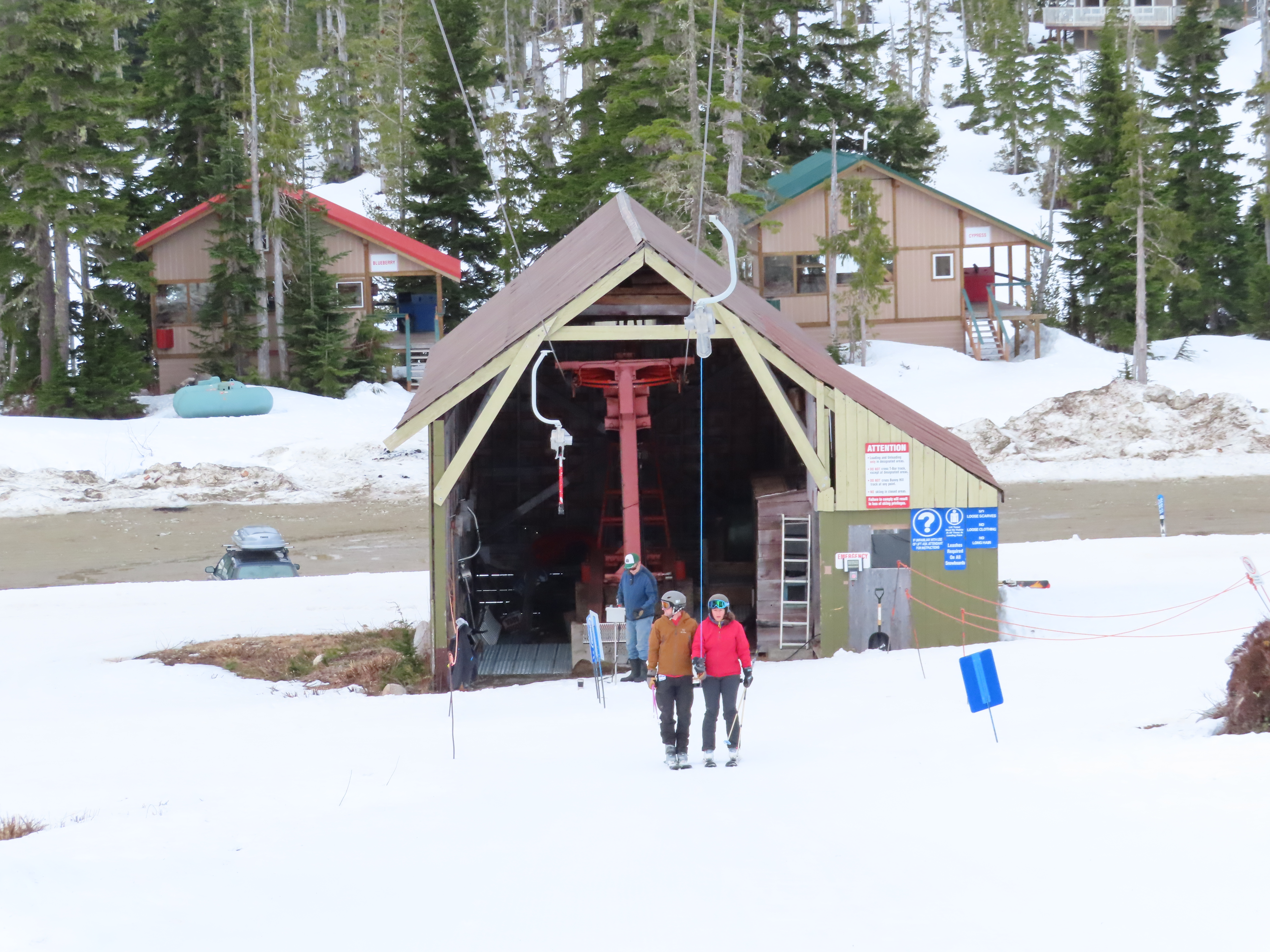 The first T-Bar at Mt. Cain was installed by BC company Harusch in 1980.The bottom station has a building over it.Diesel drive unit with tensioning counterweight behind (this has now been replaced with electric).View down to the lower terminal.Portal style tower.Fixed bullwheel up top.View down from the summit.Side view of the top station.Middle section of the lift line.Tower with a view.Looking up the line.Bottom terminal in the base village.Another look at the summit turnaound.Lift line overview.Lower station building.