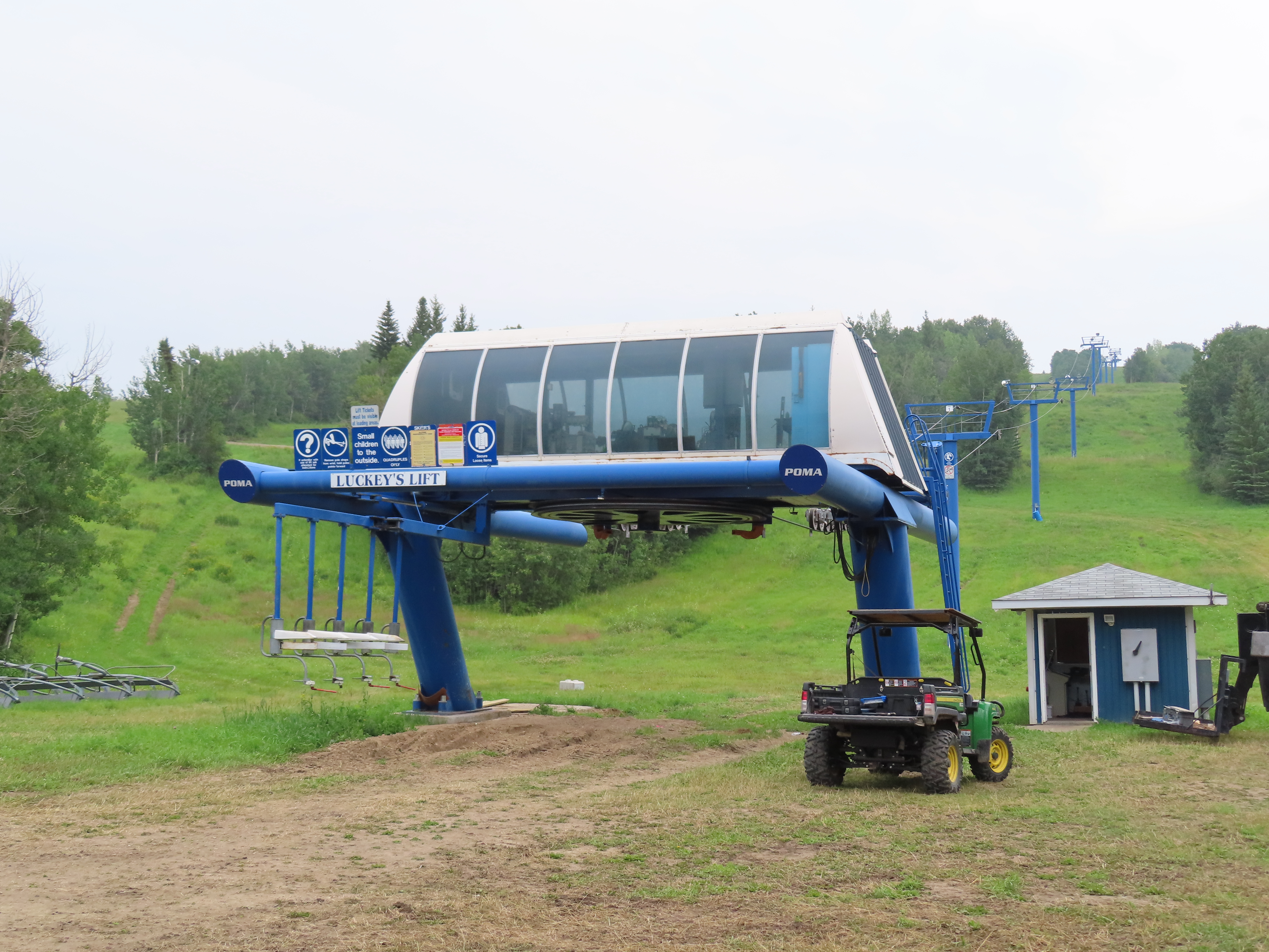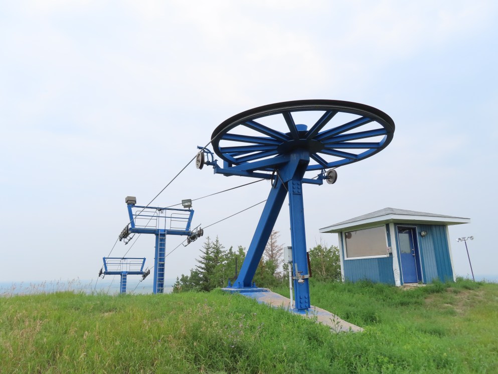 Luckey’s – Table Mountain, SK This is the older of two Poma quads at Table, both of which replaced T-Bars. The top terminal. View from the summit. Upper lift line. Tower 5. The first few towers. Alpha drive-tension station. Chairs removed for maintenance. Lift overview. Share this: Click to email a link to a friend (Opens in new window) Email Click to share on X (Opens in new window) X Click to share on Facebook (Opens in new window) Facebook Like Loading...