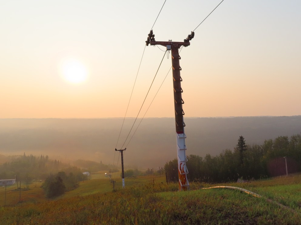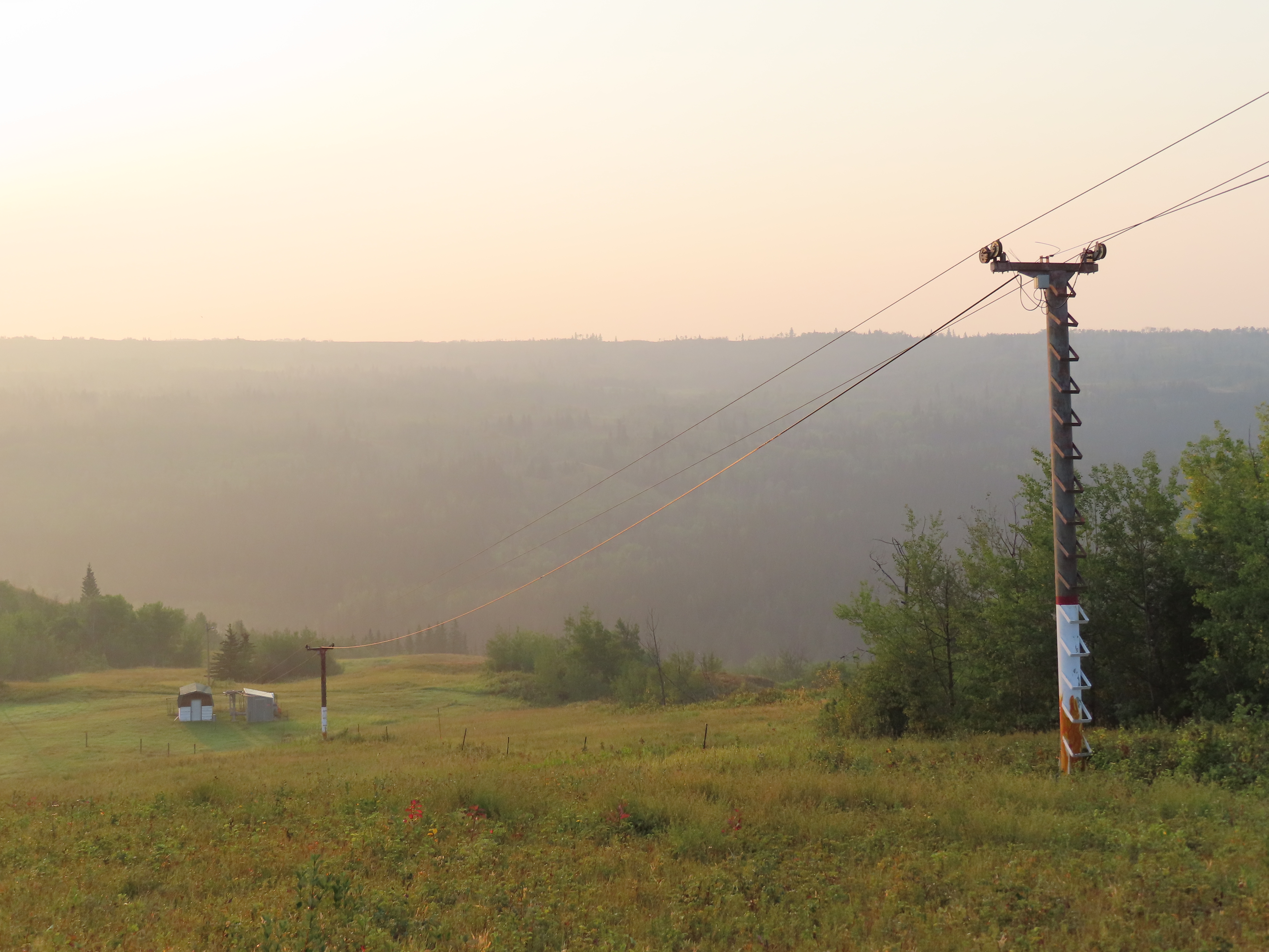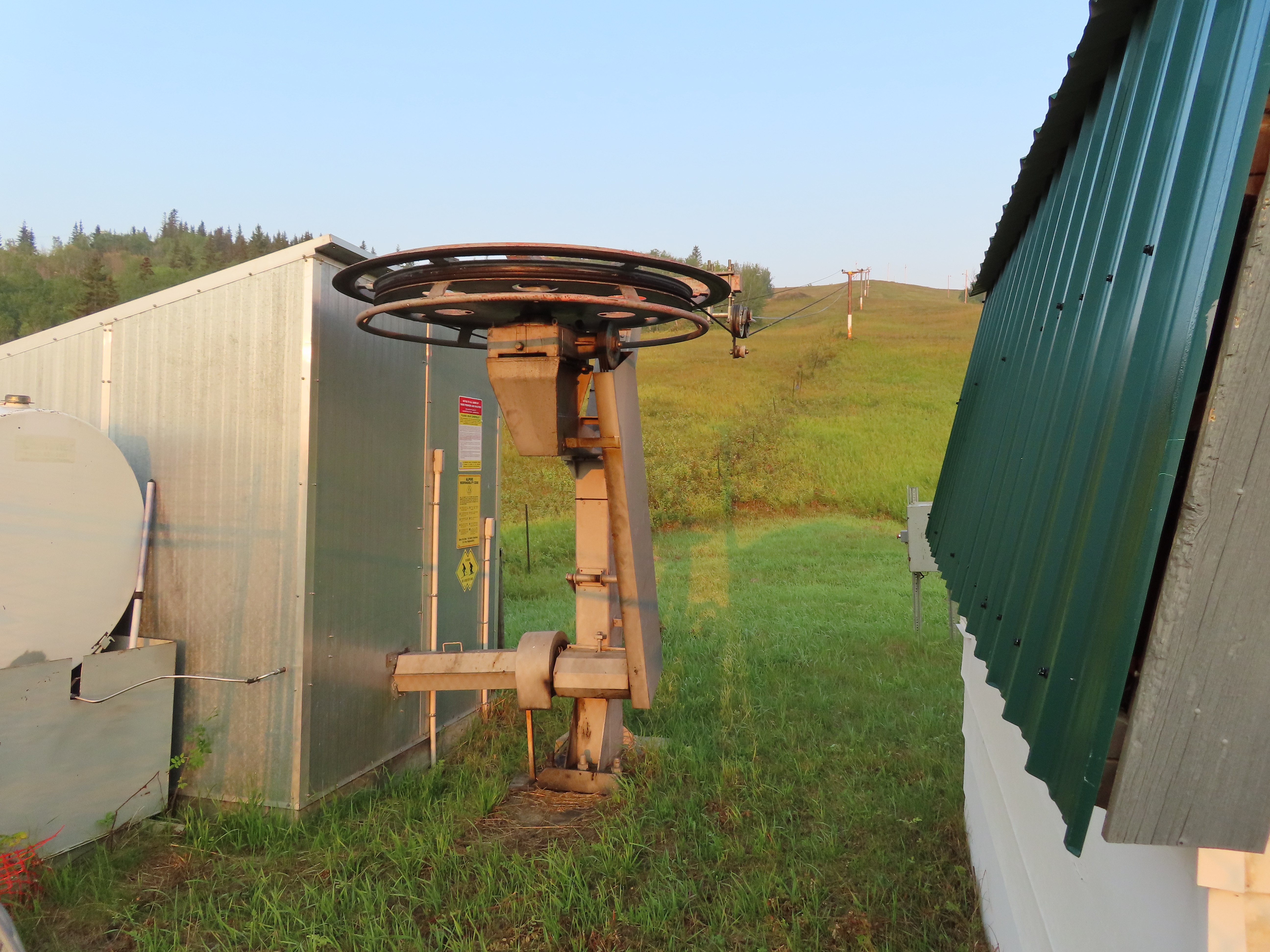 As the name suggests, this platter services the middle of this mountain near the lodge.View up the lift line.Bottom station with separate motor room.View down at tower 2.Upper part of the lift line.View from the summit.Top station.Side view of the top station.