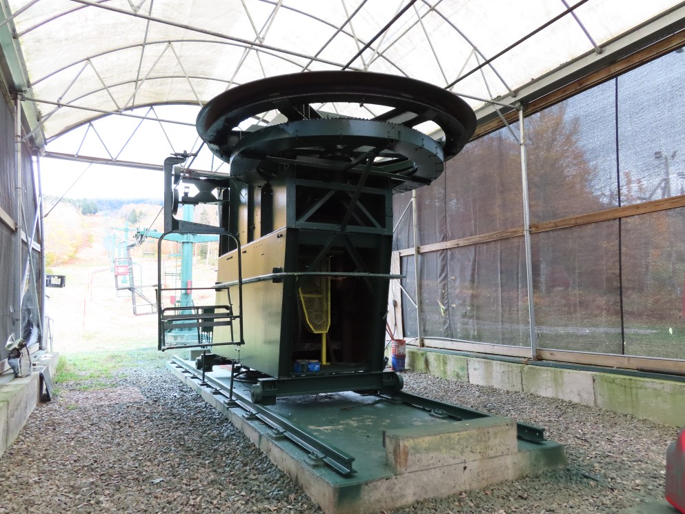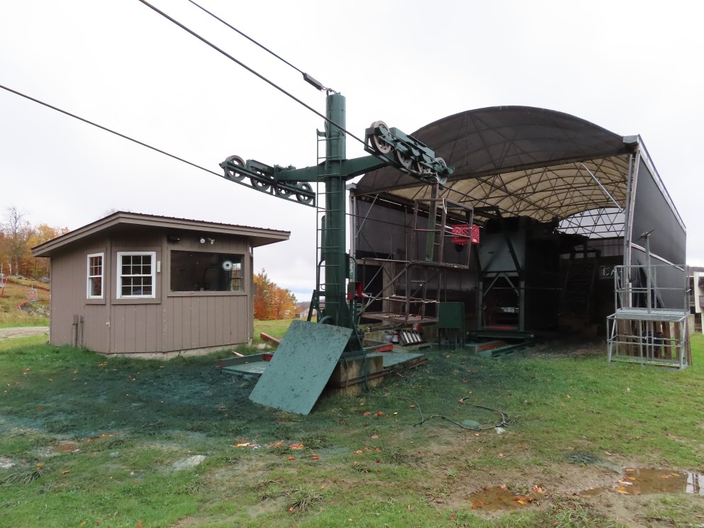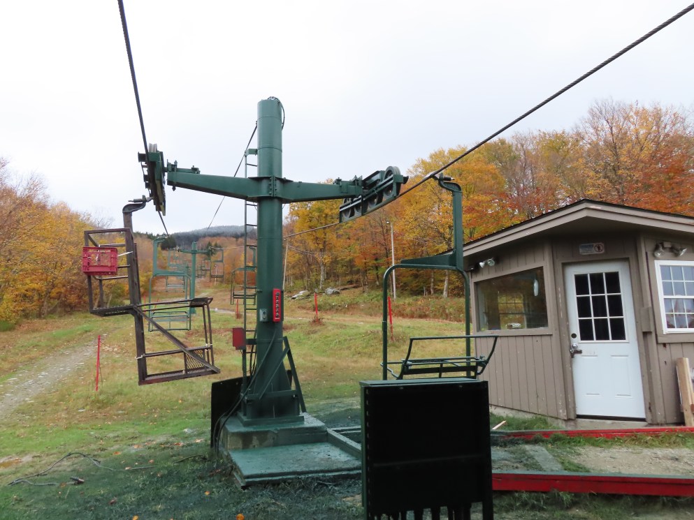 Three Hall doubles opened along with Bolton Valley itself in 1966 and as of 2018, all are still in service.Mid Mountain used to be part of a two lift series to reach Vista Mountain.Tower 9.The bottom terminal and tower 1.Loading area.Counterweight.Drive unit and bullwheel.View up the lift line.