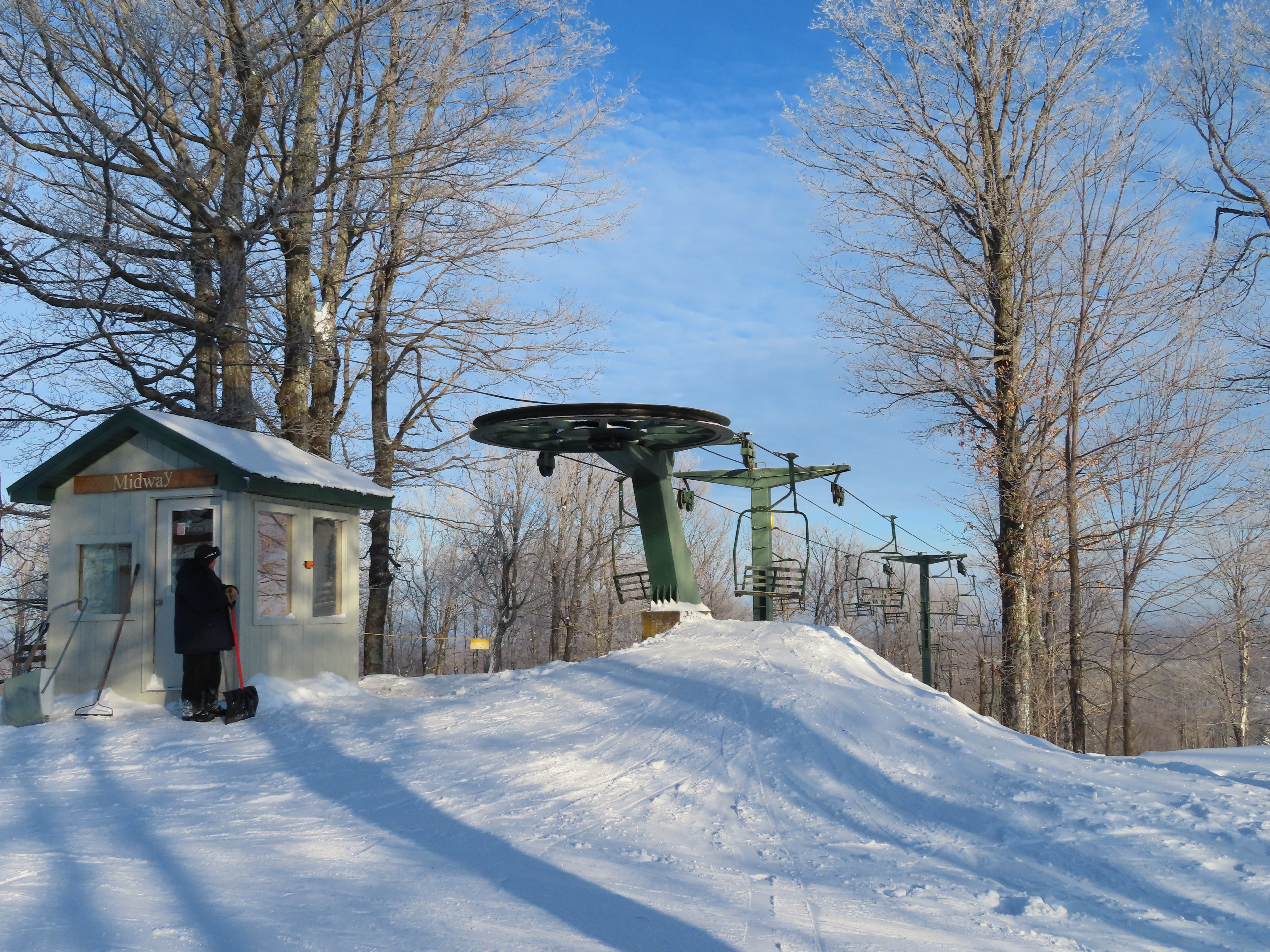 Good to hear it is back up and running again. Last time I was there in 2000 this old double was like you said, quasi-abandoned, all the chairs were removed from the line and stacked at the bottom. Sad the nice CTEC had to be taken out of service.