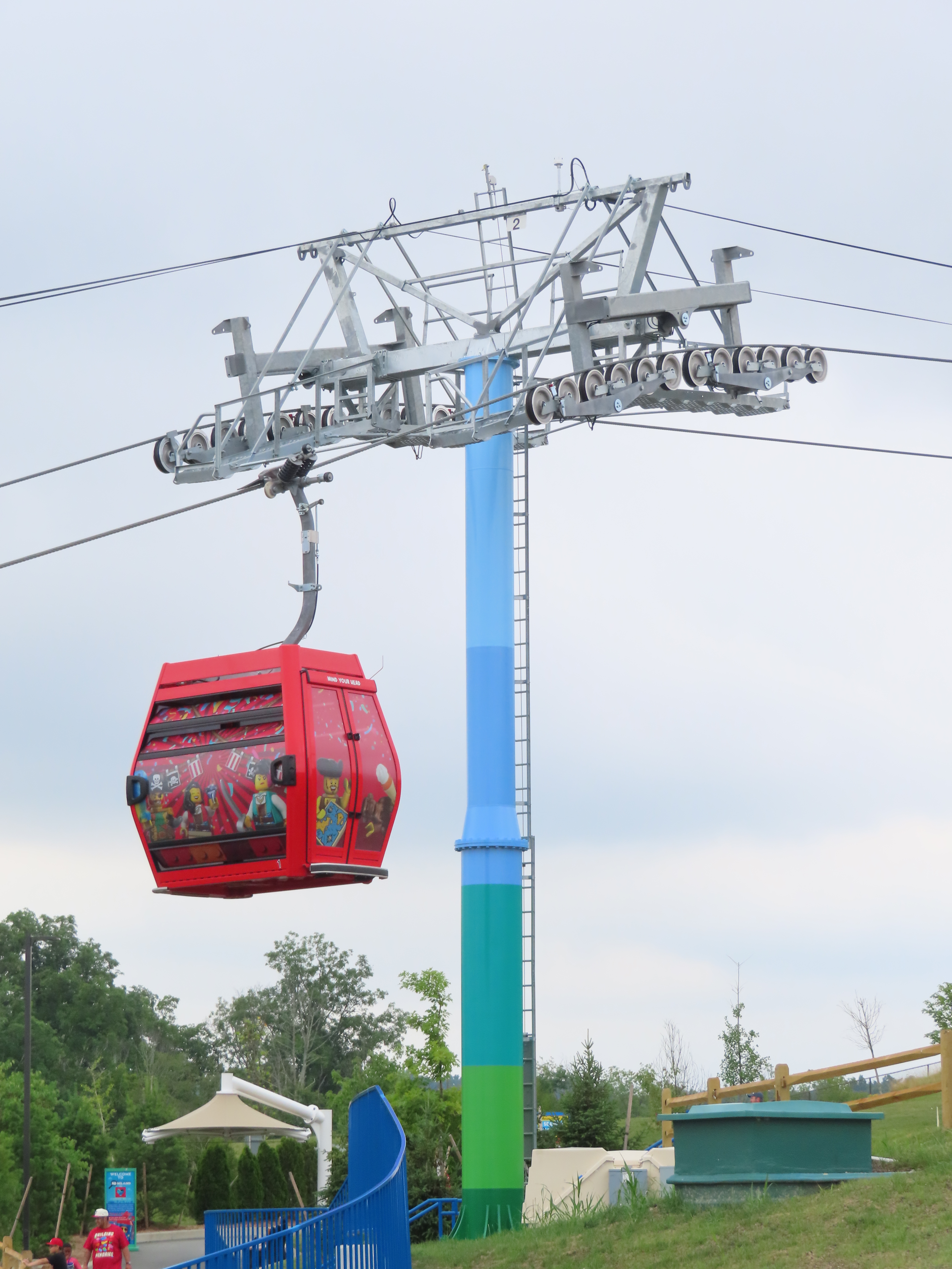 This short gondola transports Legoland guests from the park entrance at the top of a hill to the lower section of the park.The short line has only four towers.Tower 3.Tower 4 adjacent to the top terminal.Top two towers.The lift features seven “party pods” in seven different colors.The first two towers and bottom terminal.Bottom terminal in a pirate themed zone.View up at tower 1.Side view of the bottom station and tower 1.Cabins in the turnaround area at the bottom station.Operator house at the return station.Side view of the drive terminal and short maintenance rail.Tower 3 with the blue cabin.Orange cabin traveling over miniland.These are the first Diamond EVO cabins in North America and utilize sliding doors.Drive “party booth”The pink pod arriving at the drive.Red and pink cabins in the top station.Close up of a cabin.Return terminal.View up at tower 2.LPA station with vinyl wrap.Another view of tower 2.The middle section of the line.Lower station overview.10 passenger cabin travelling over Lego models.Another view of tower 2.Loading area at the top station.Side view of the upper terminal.Aother view of the drive.Tower 4.Blue party pod.Another view of the lower part of the line.Pink pod.Cabins travelling over San Francisco.Each cabin is wrapped on both the outside and inside.Blue cabin leaving the bottom station.Lift line overview.Loading area at the bottom station.