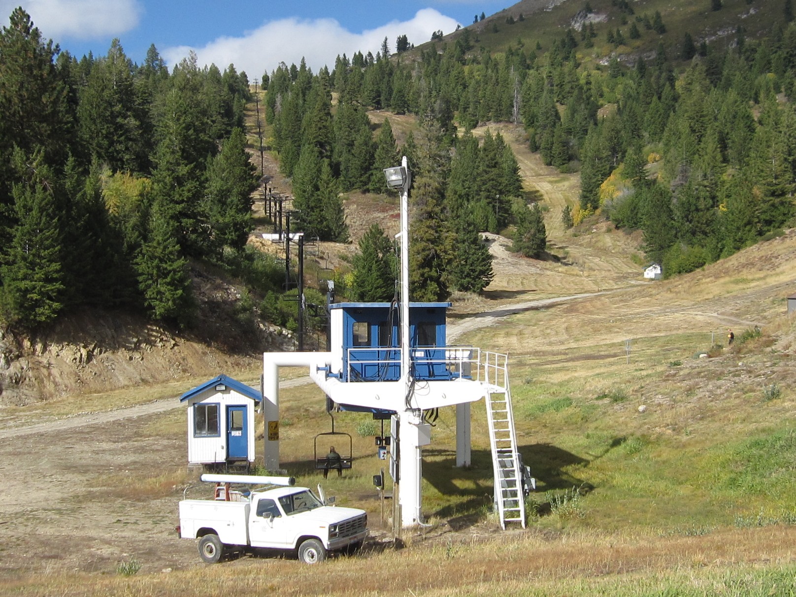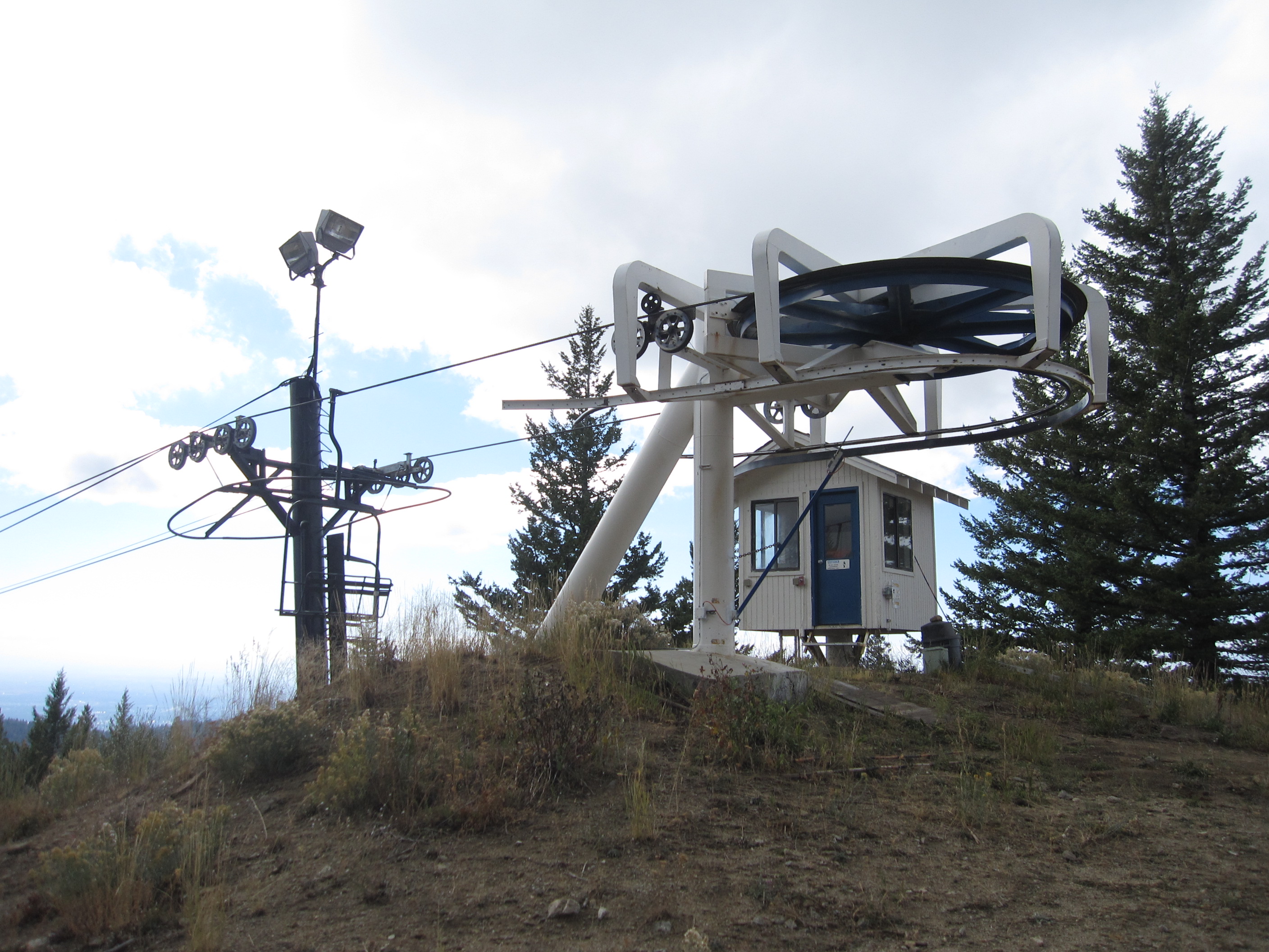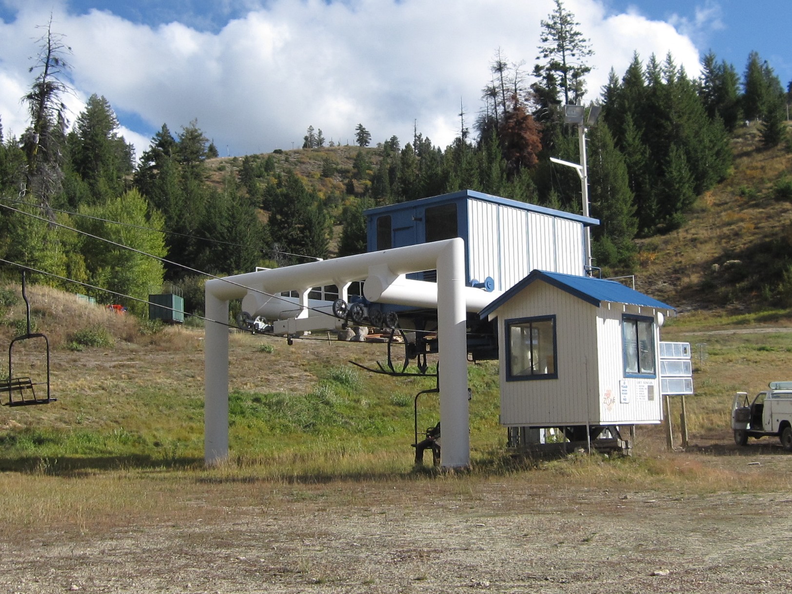 Top return bulwheel.Looking down from the top.Lower lift line.Bottom drive-tension station.Lower terminal and lift line.Looking up the line.Bottom terminal.