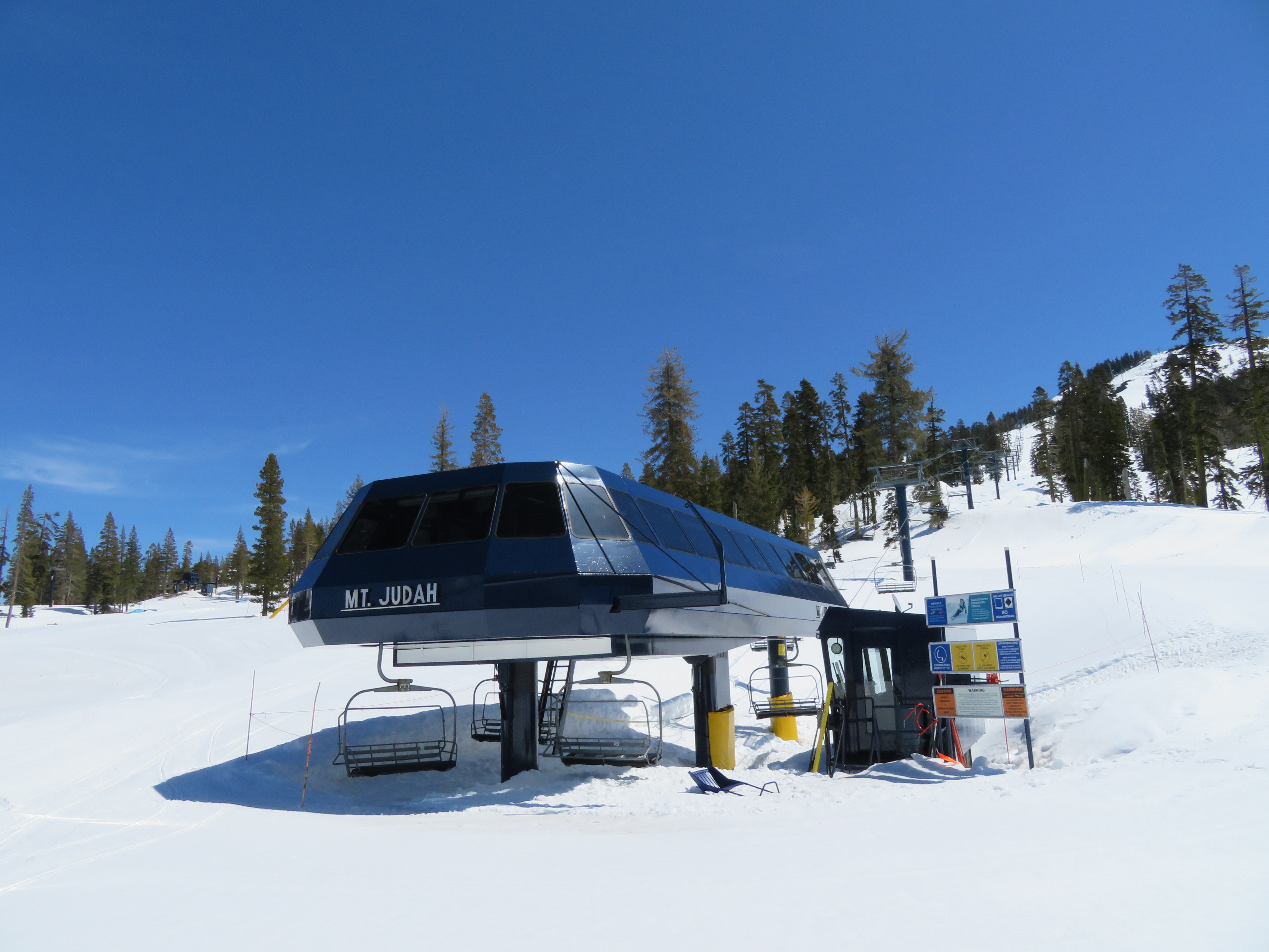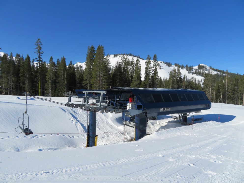 Mt. Judah Express – Sugar Bowl, CA Bottom terminal and tower 1. Lift overview. Top return terminal. Unload ramp. Top station side view. Looking down the lift line. Upper part of the line. Lower lift line. Base terminal at Judah Lodge. Loading area and operator house. Share this: Email a link to a friend (Opens in new window) Email Share on X (Opens in new window) X Share on Facebook (Opens in new window) Facebook Like Loading...