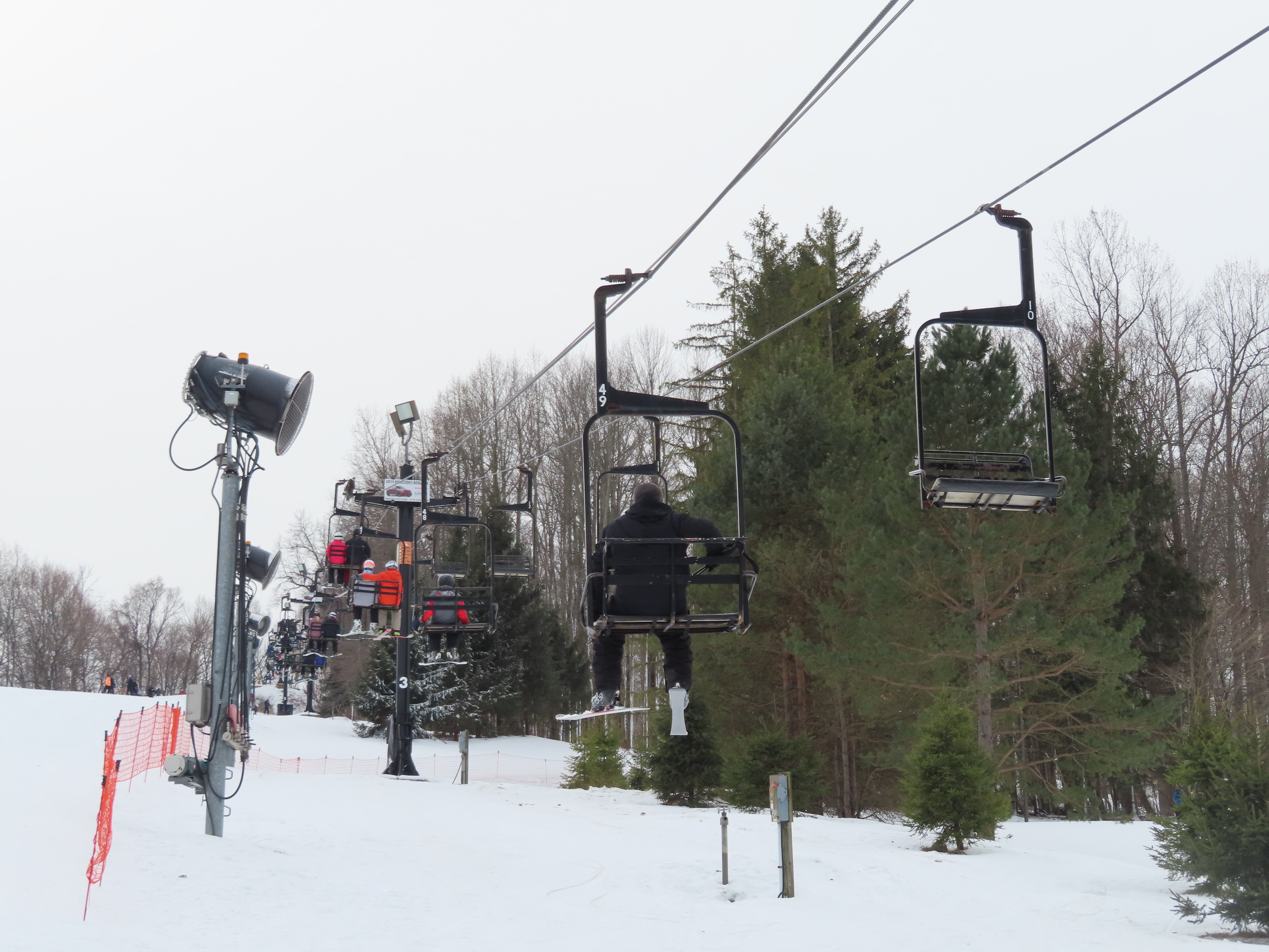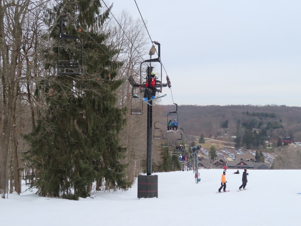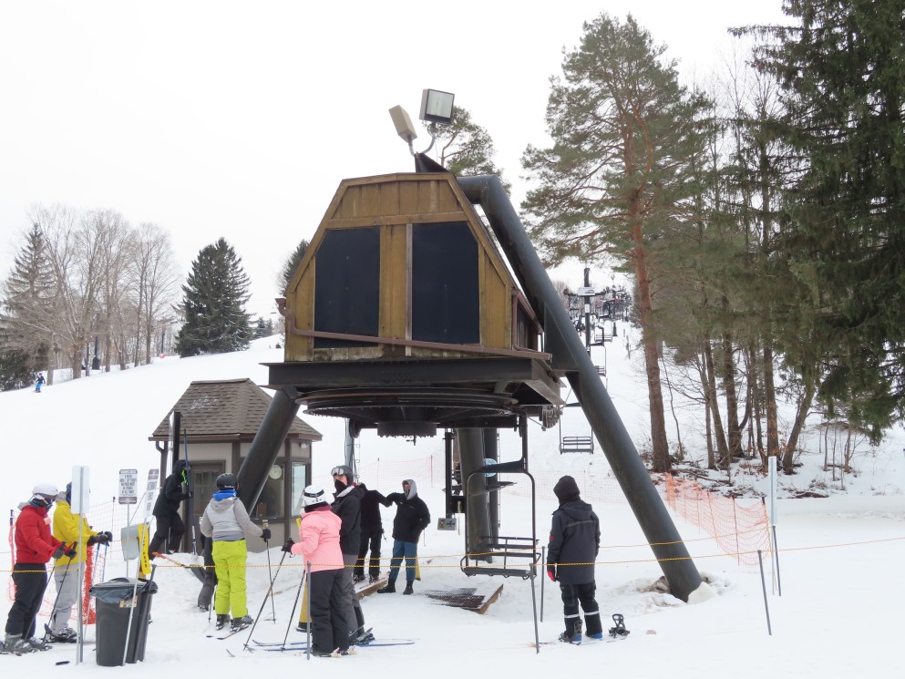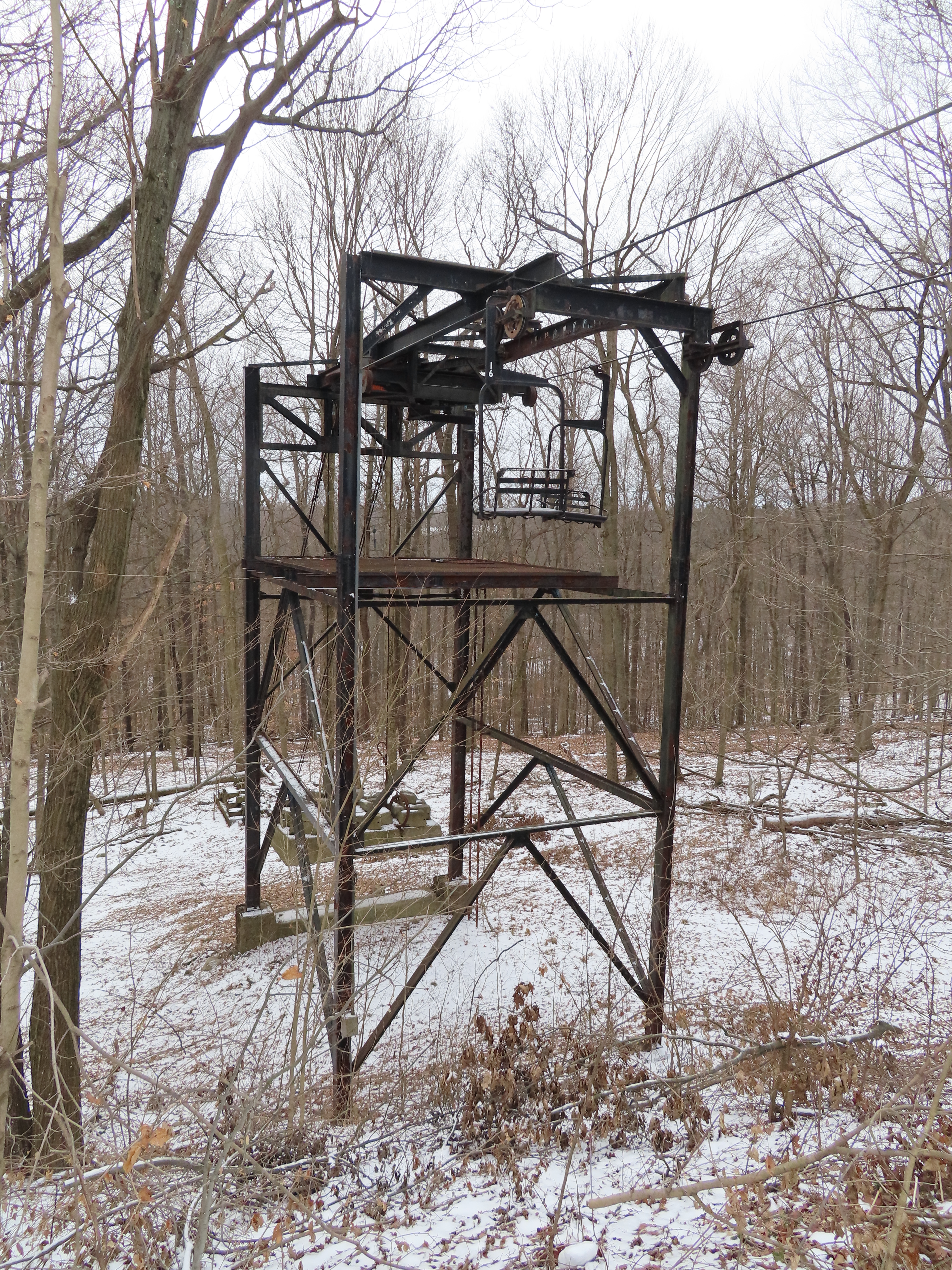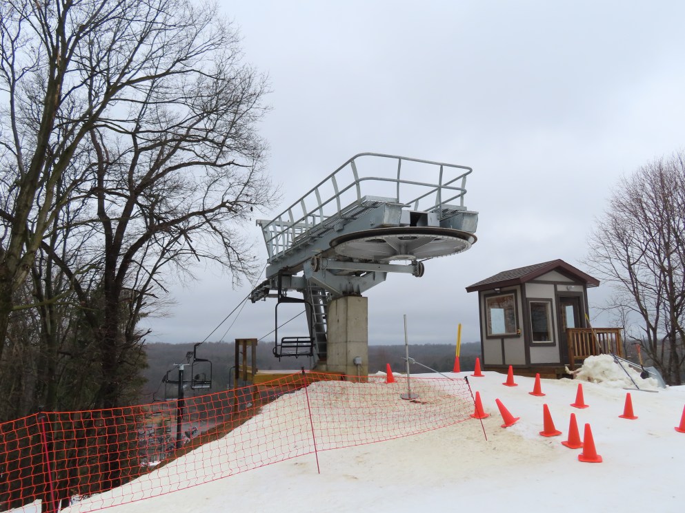 This is likely the very first chairlift built in the State of Ohio.What a cool top terminal!View down the lift line.Looking up from the bottom terminal.At some point the drive terminal was replaced by Thiokol/CTEC.Motor room.Another view of the base station.Skytrac replaced the top terminal with a hydraulic tension return in 2023.The new upper station where tower 6 used to stand.Skytrac station with Hall line equipment.