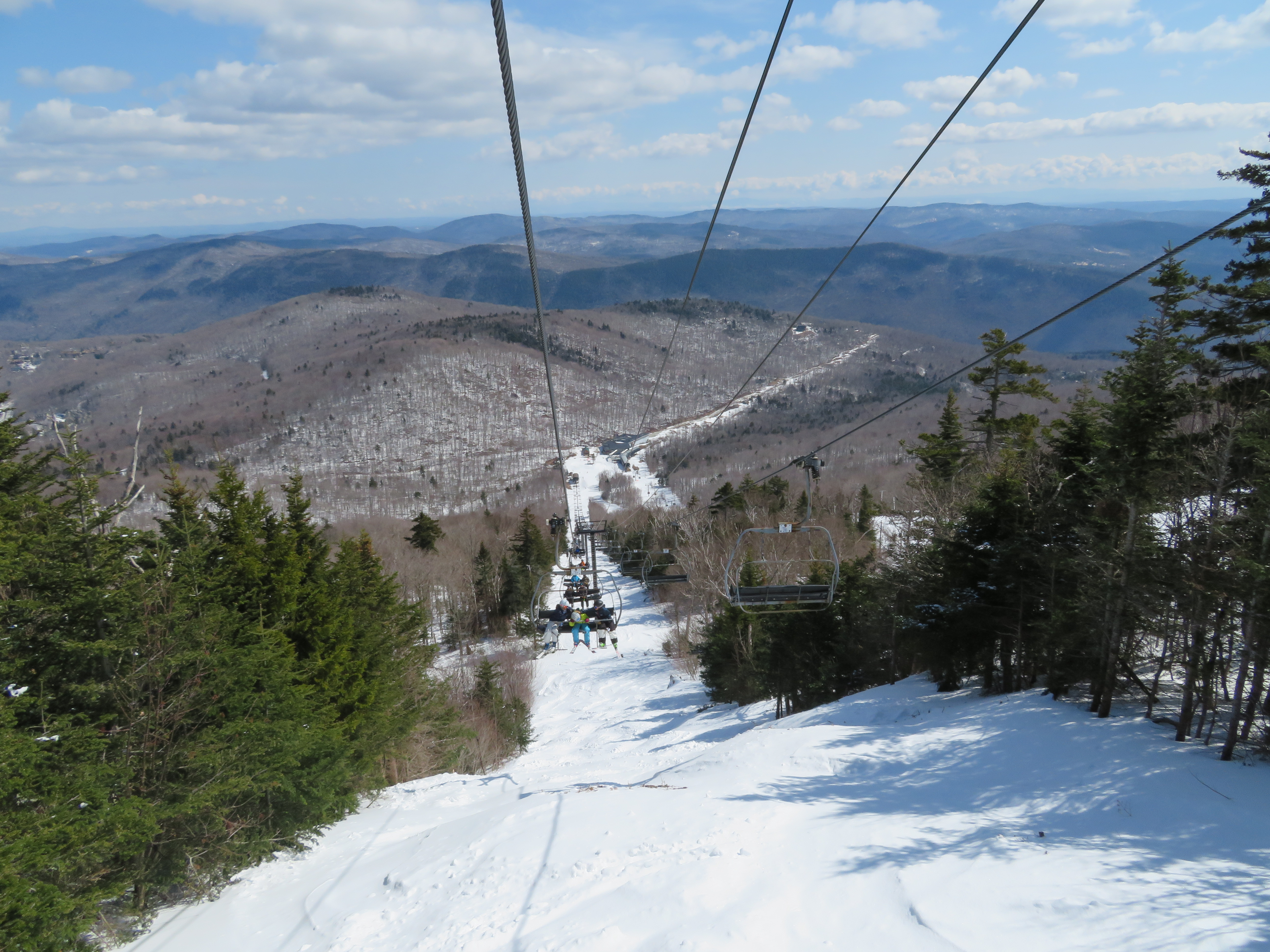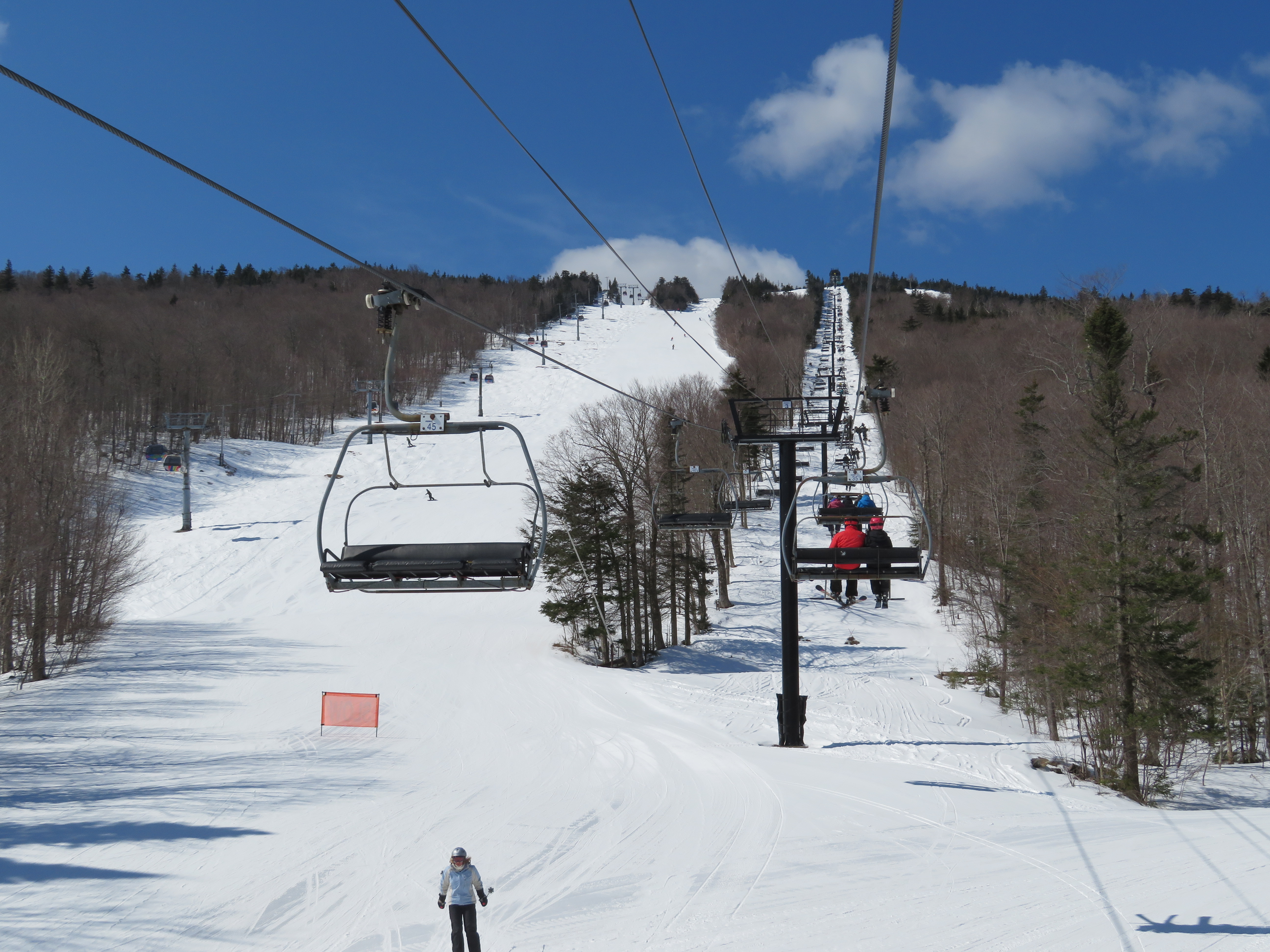 Love this lift so much. Serves as a great reliever to the Skyeship Gondola. Serves trails of all abilities. I got stuck on it for nine minutes once in 9 degrees. You can see snowdon, rams head, and the lower part of the skyeship gondola as well as snowshed