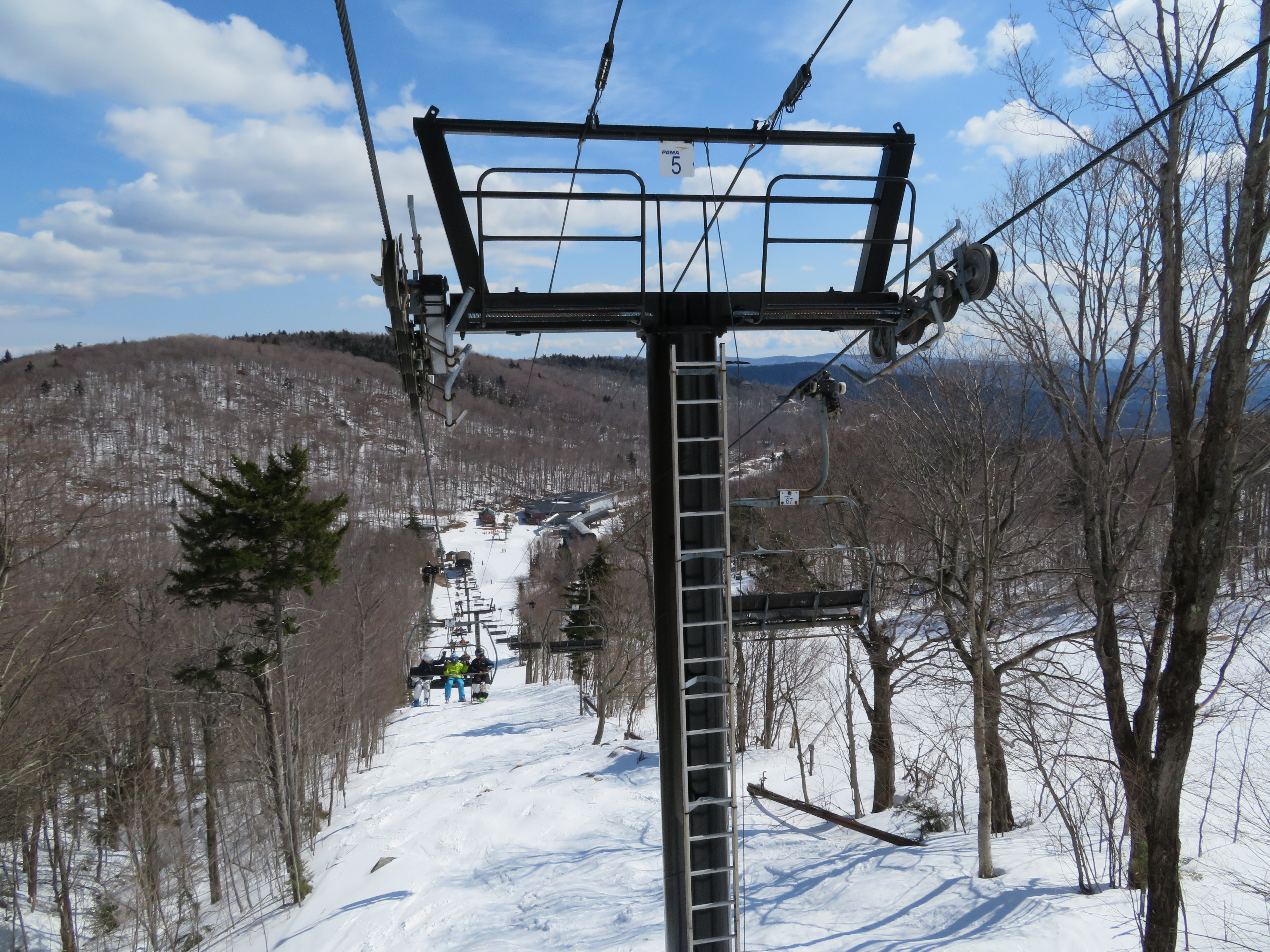 I believe this is true. Les Otten owned Waterville Valley at the time. I believe as much of White Peaks as possible was relocated here, and that includes all the towers, and a majority of the chairs. This lift has 85 chairs, and roughly 2/3rds are from White Peaks. The length is misreported. It’s definitely not 3590 feet long. The resort reports the length as 3286 feet, and I get 3326 feet on Google Earth. I actually get 3590 feet as the length for Superstar on Google Earth (the resort reports it as 3504 feet). Given the fact that I ride both lifts often, there is no way this lift is longer than Superstar.