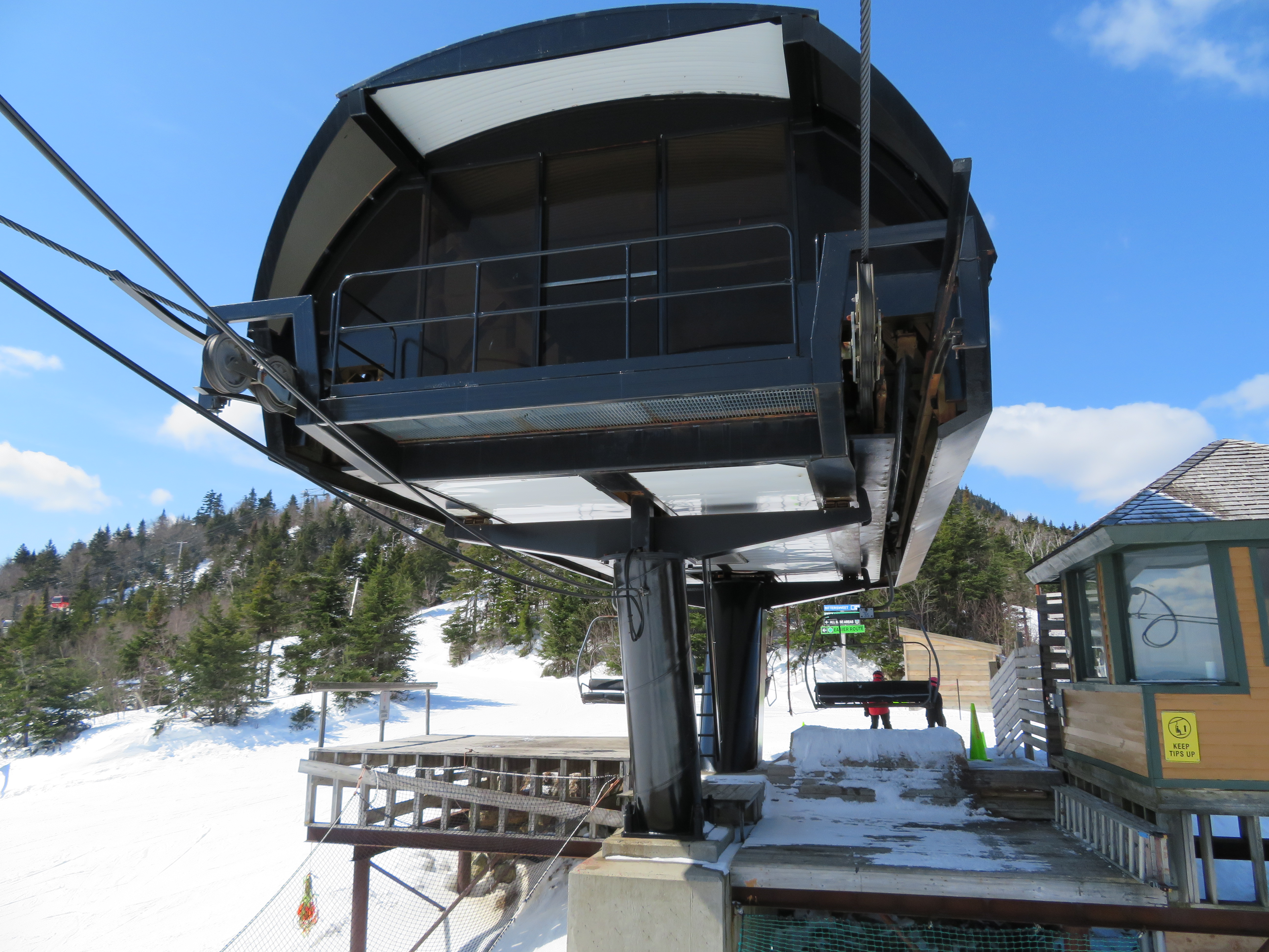 Those are the Short Challenger terminals which never got the rounder corners that the large Challenger terminals got in the mid 90s. Access Express at Big Bear also has terminals like this and was built a year or two later. I think this lift was built with leftover older towers that Poma had, and half of the chairs came used from Waterville when White Peaks Express was shortened.