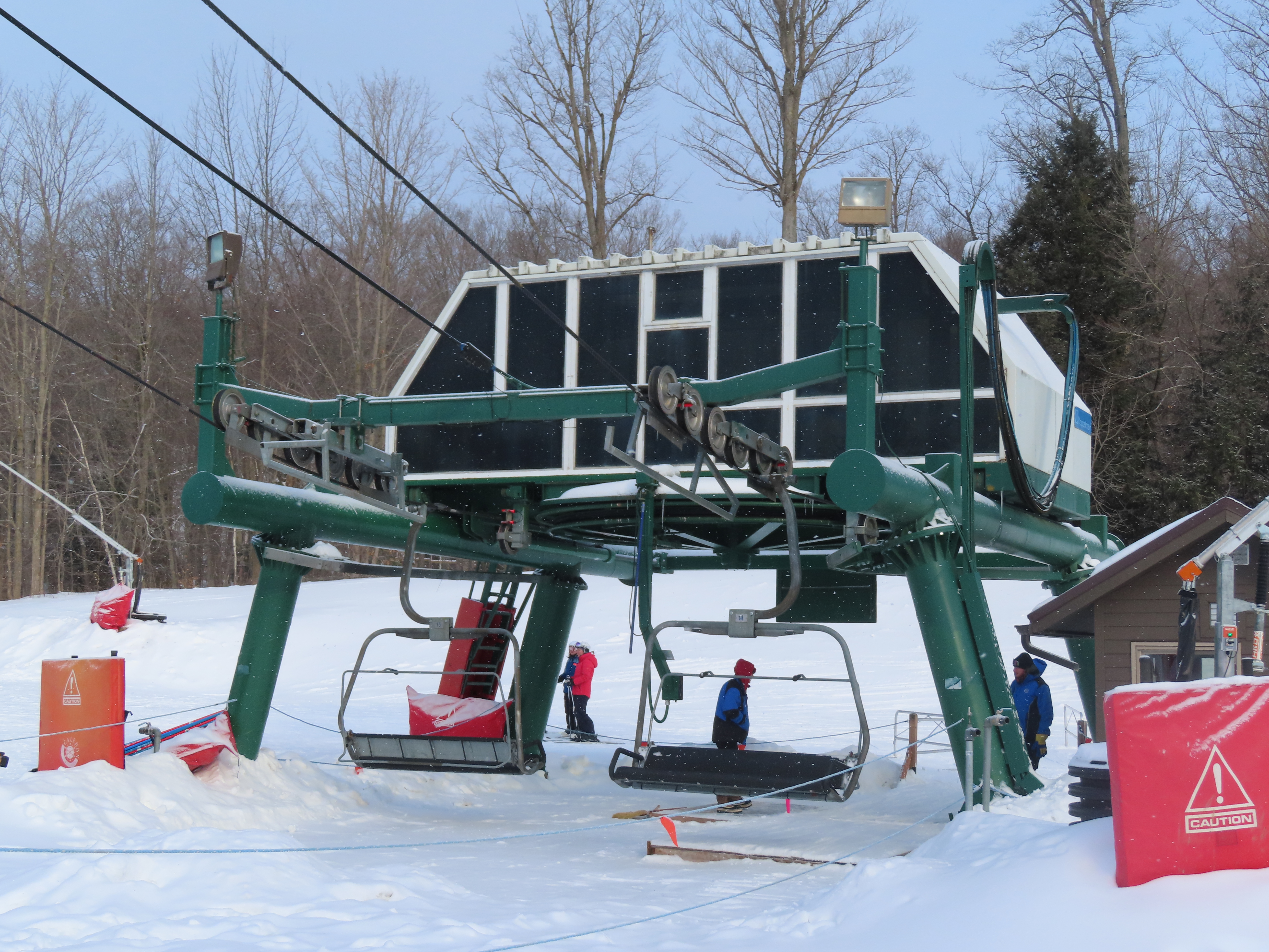 As the name suggests, this lift services trails on the north side of the ski area.View down the short lift line.Looking up the line.’90s style Doppelmayr drive.Lift overview.Side view of the bottom station.Arriving at the summit.Fixed return up top.Doppelmayr Worldbook entry.