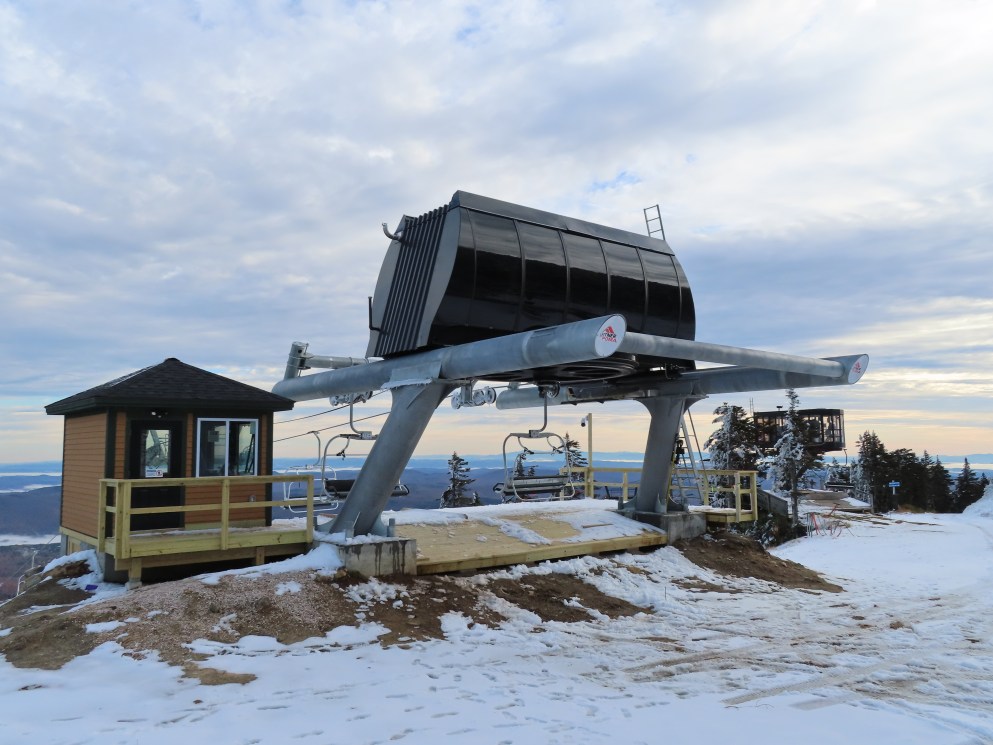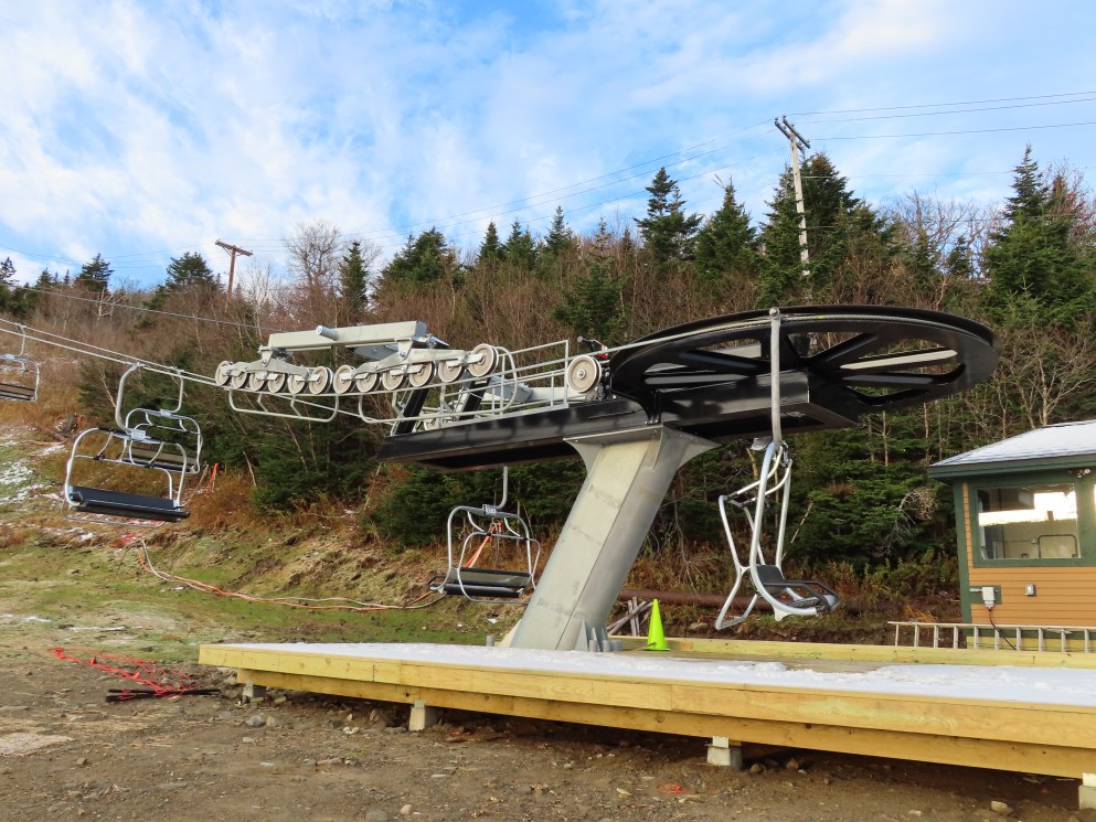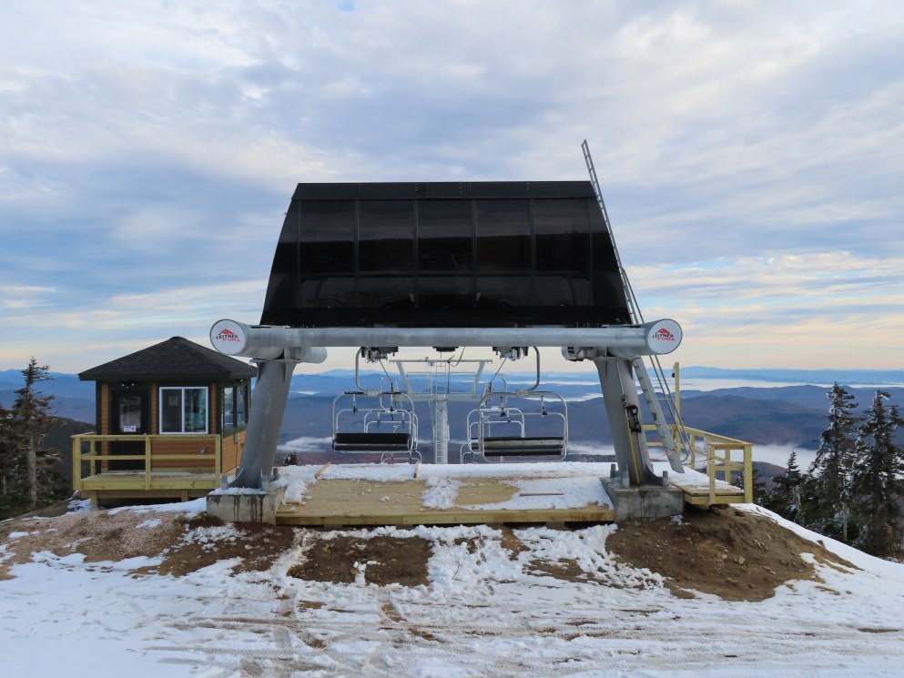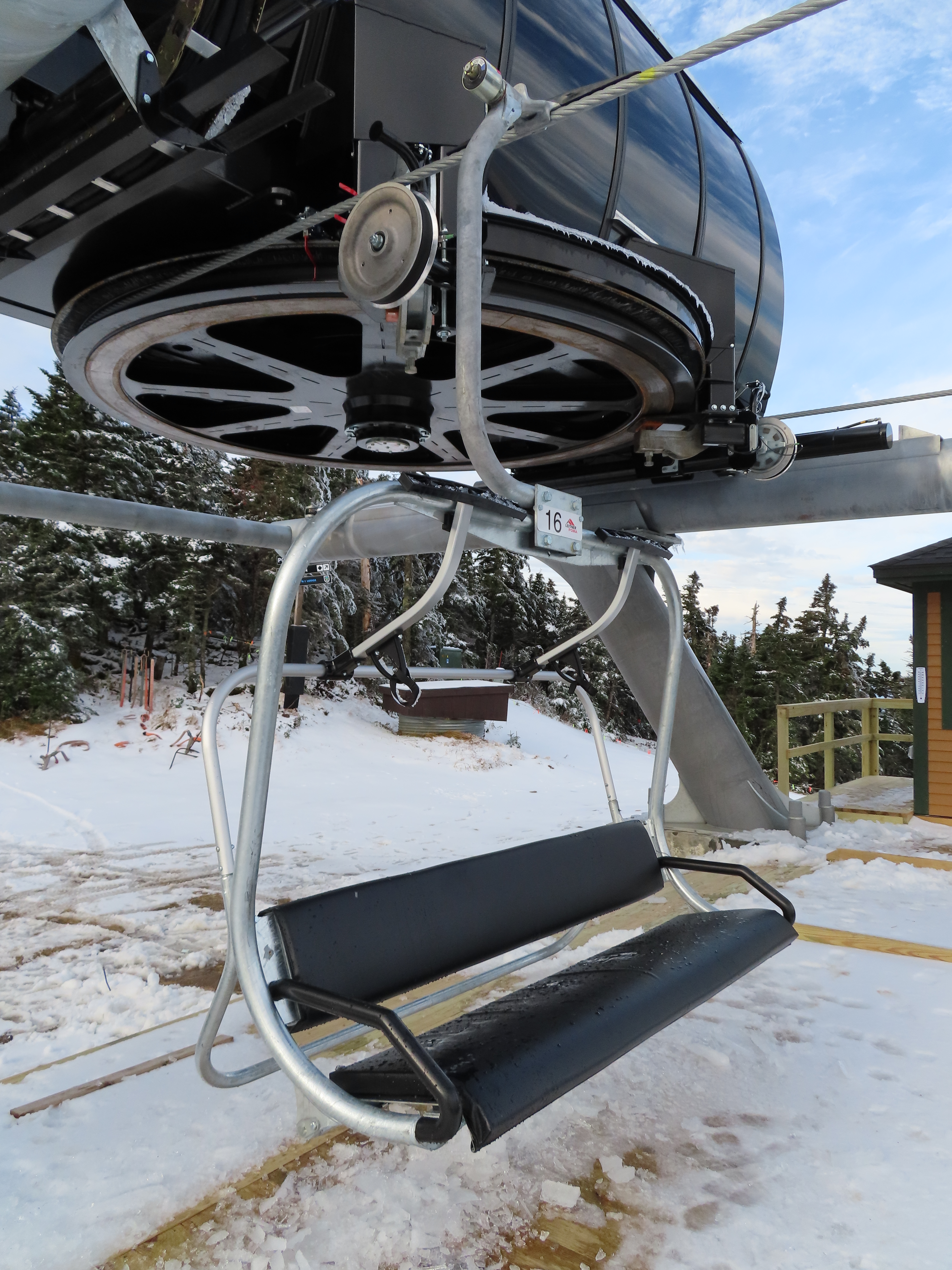 Well this sure is a huge improvement over the old lift. Nicely padded chairs with foot rests that can actually fit 4 adults (instead of barely squeezing in 3) are just the beginning. With the higher capacity, the early season wait times will be so much shorter. The new lift also eliminates the clearance issues the old one had where patrol had to rope off a section of the trail under it because it was too low when fully loaded.