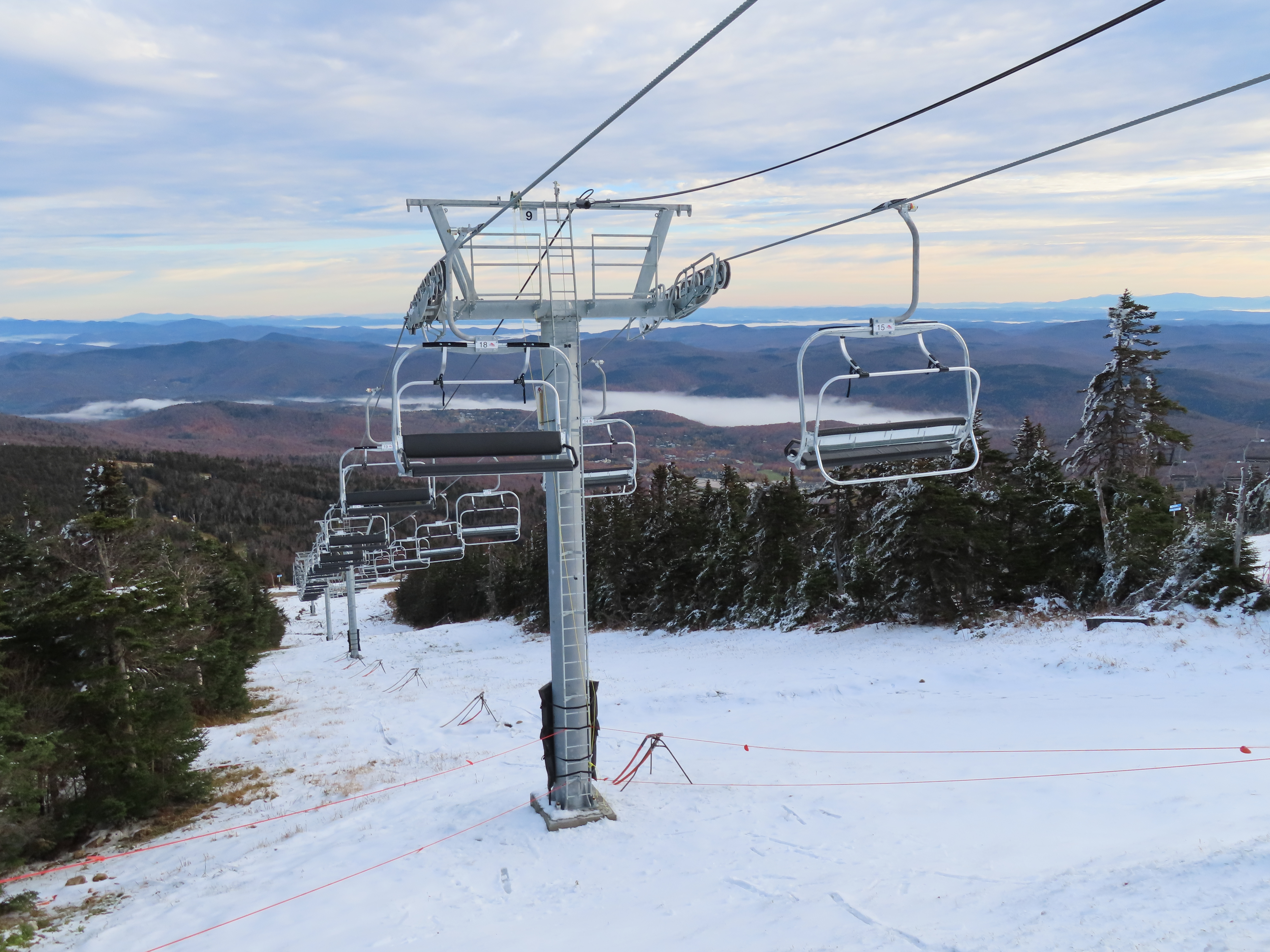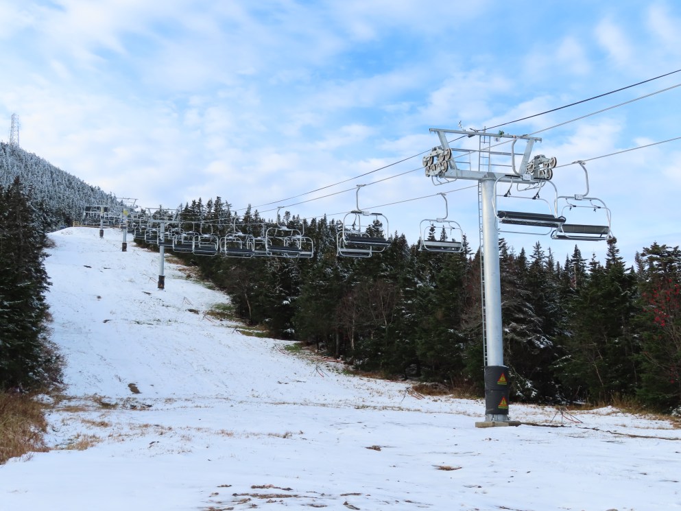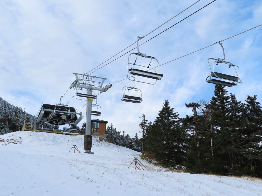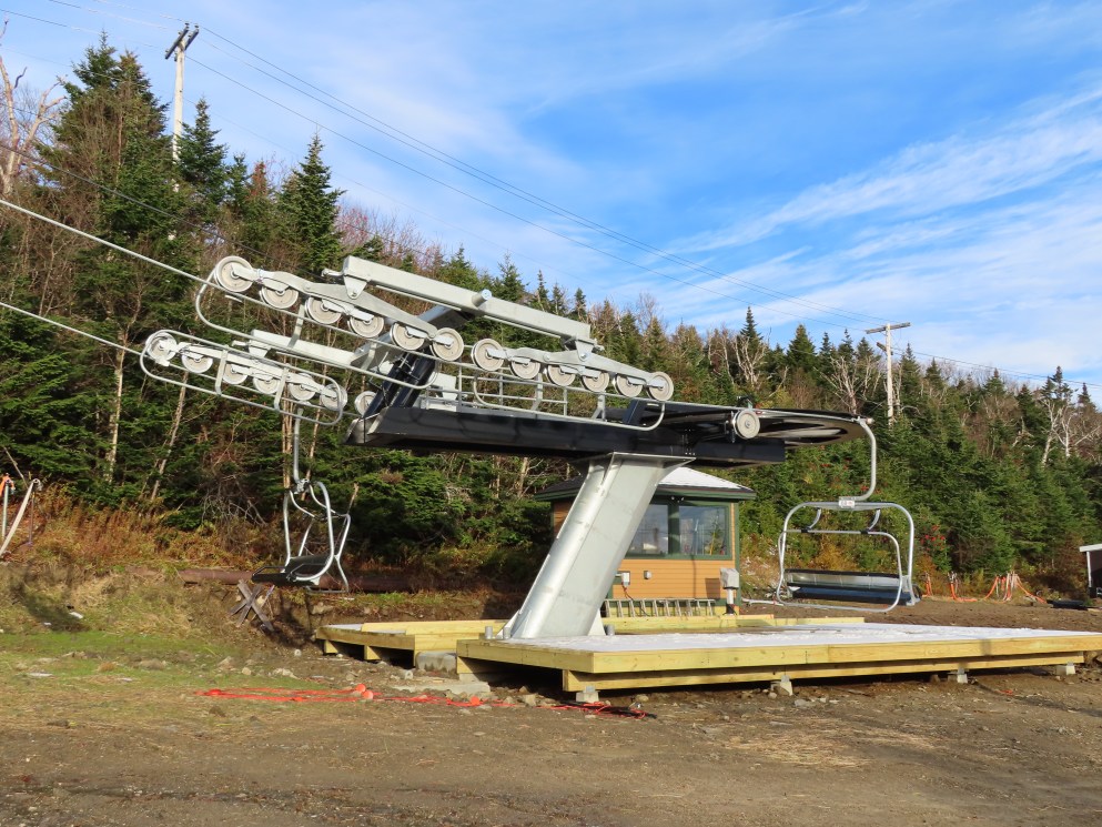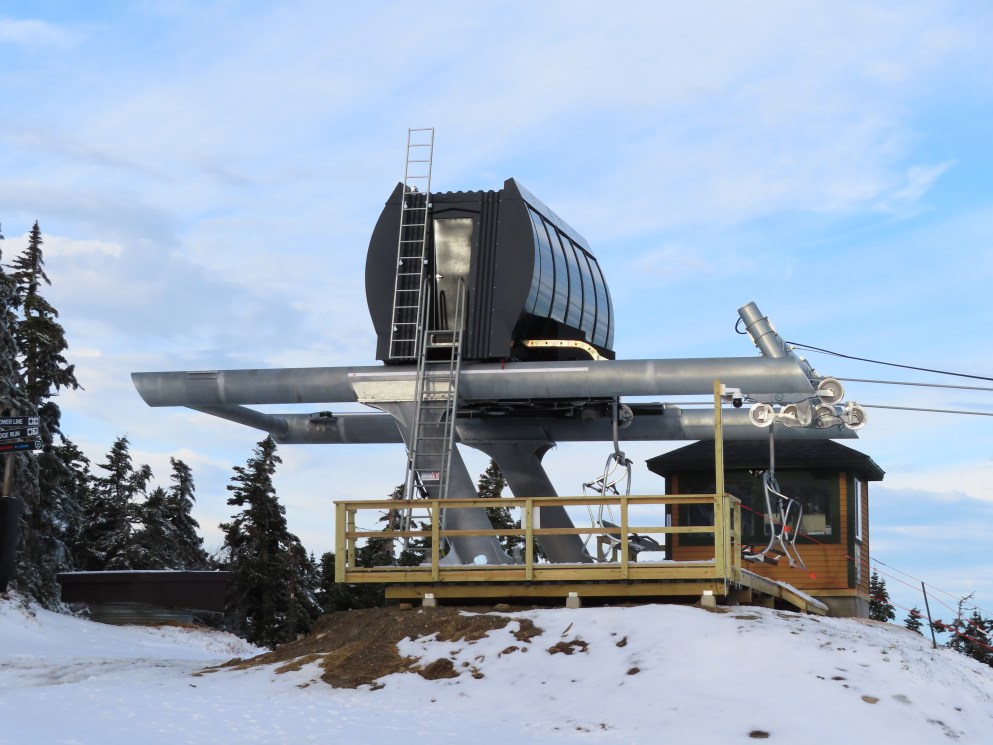 Well this sure is a huge improvement over the old lift. Nicely padded chairs with foot rests that can actually fit 4 adults (instead of barely squeezing in 3) are just the beginning. With the higher capacity, the early season wait times will be so much shorter. The new lift also eliminates the clearance issues the old one had where patrol had to rope off a section of the trail under it because it was too low when fully loaded.