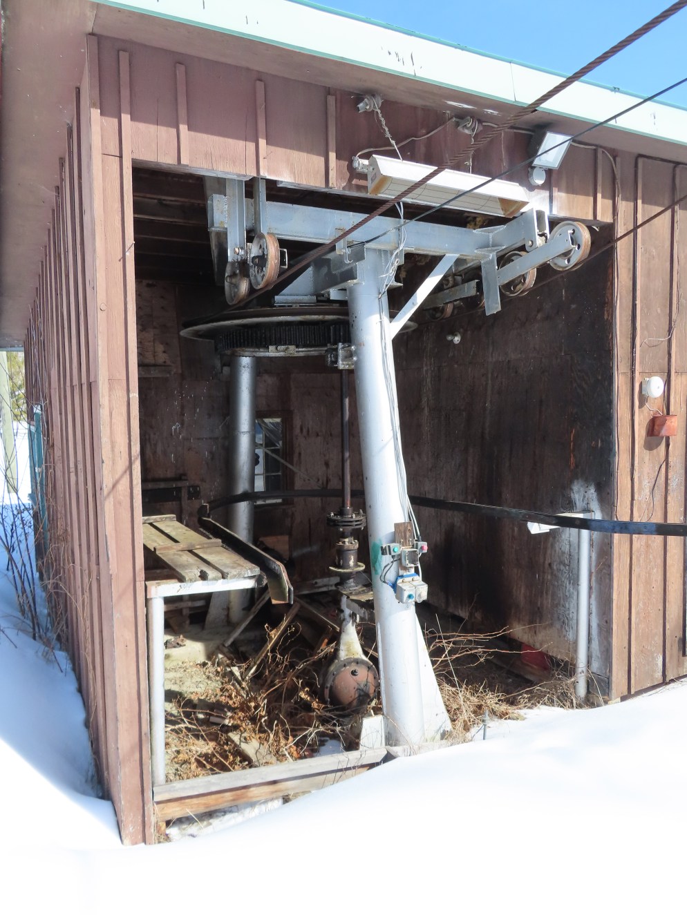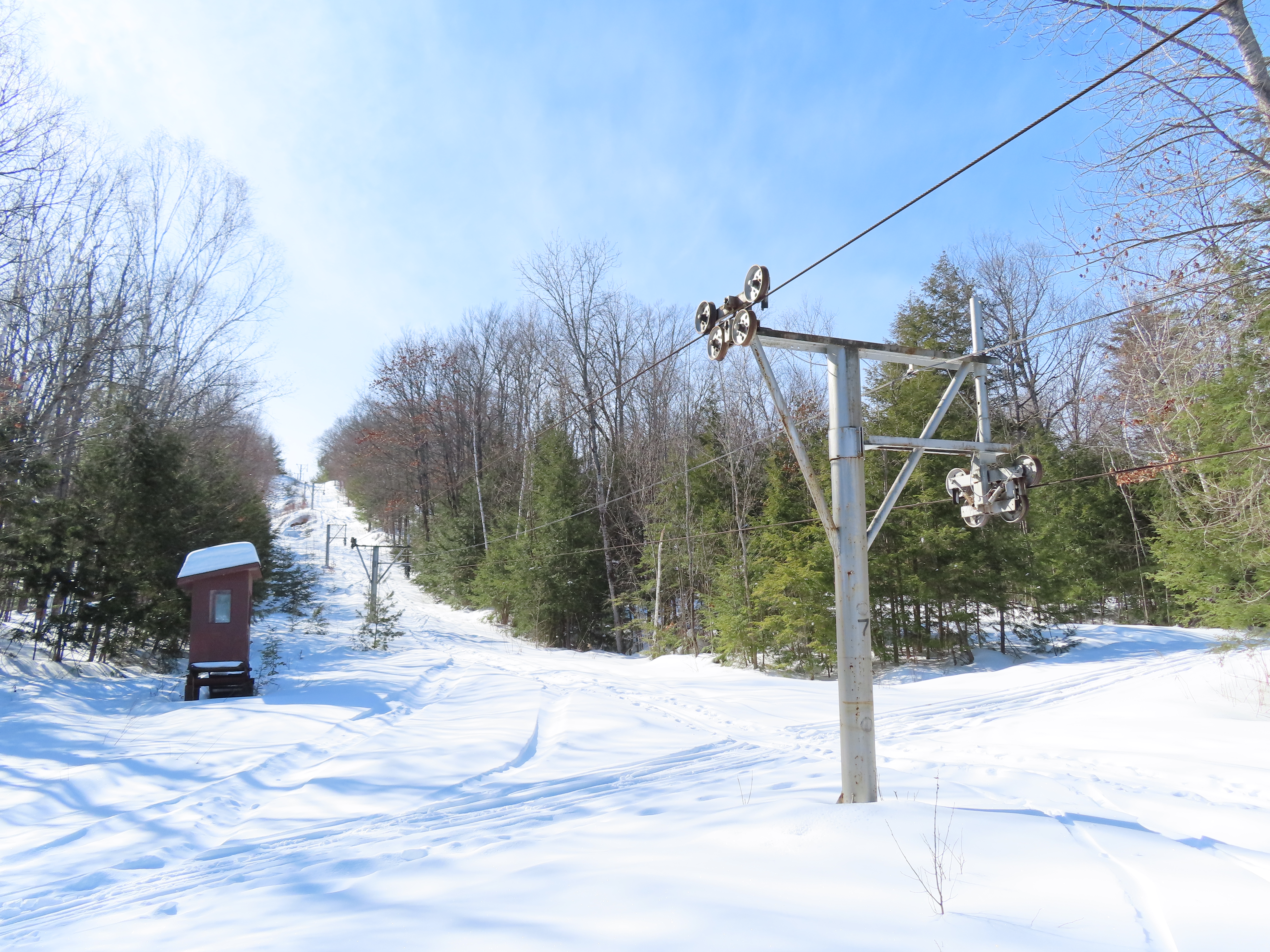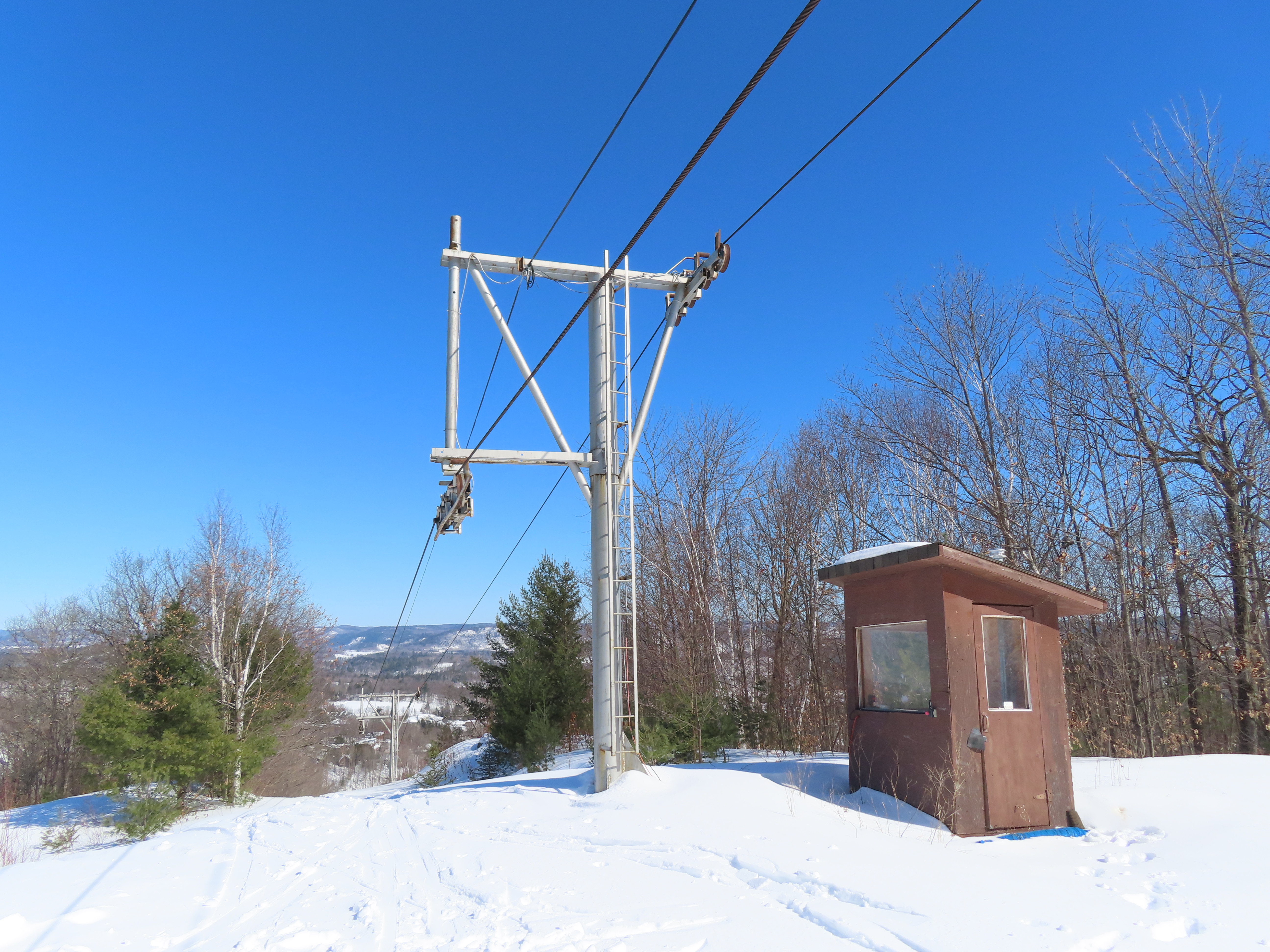 This T-Bar no longer operates as of 2023.Top tension terminal.A half tower.Mid-station unloading.As of the 2022-23 season the lift line is used as a skin track.Loading area turned alpine touring trailhead.Lower station building.Drive bullwheel.