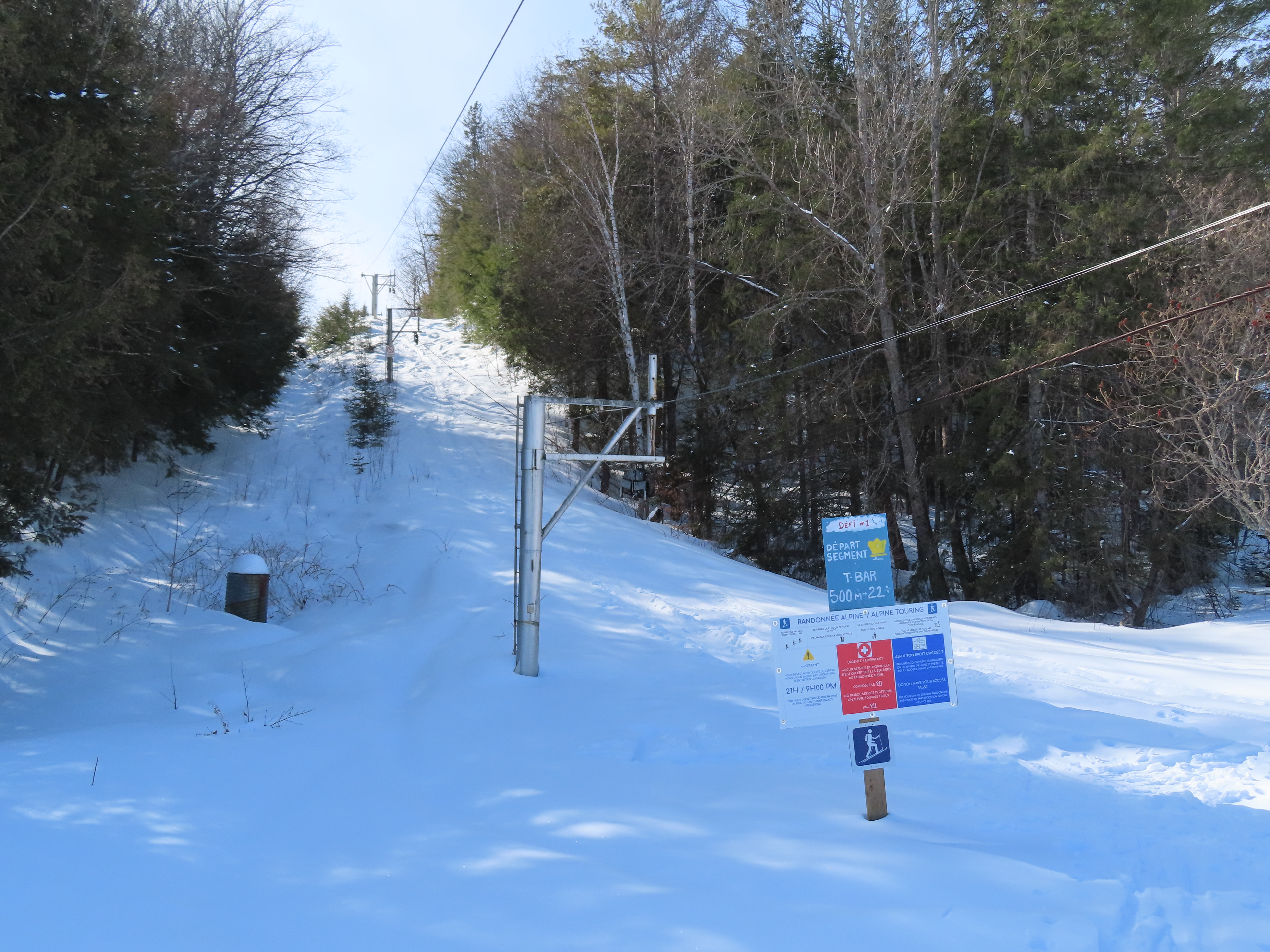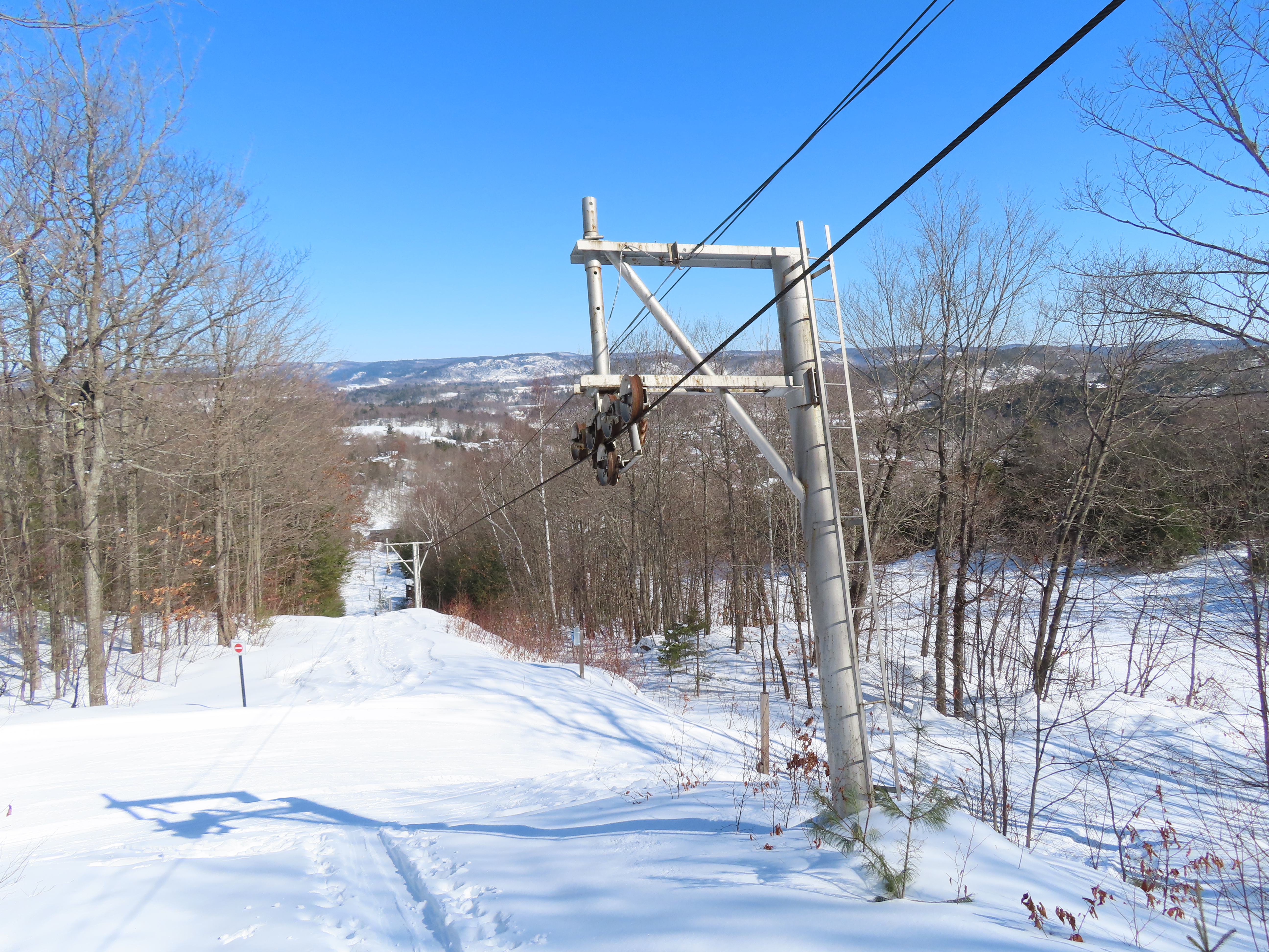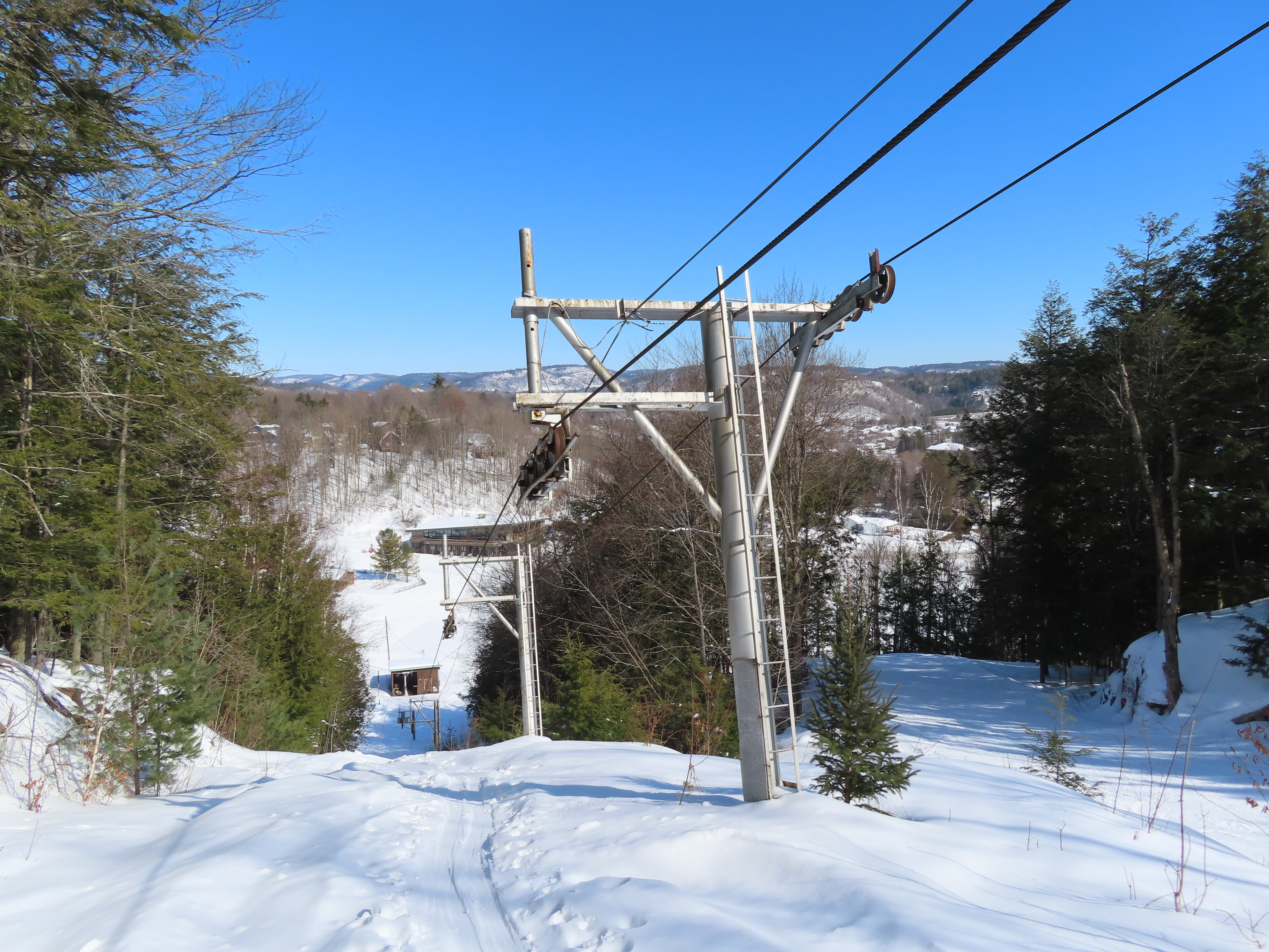 This T-Bar no longer operates as of 2023.Top tension terminal.A half tower.Mid-station unloading.As of the 2022-23 season the lift line is used as a skin track.Loading area turned alpine touring trailhead.Lower station building.Drive bullwheel.