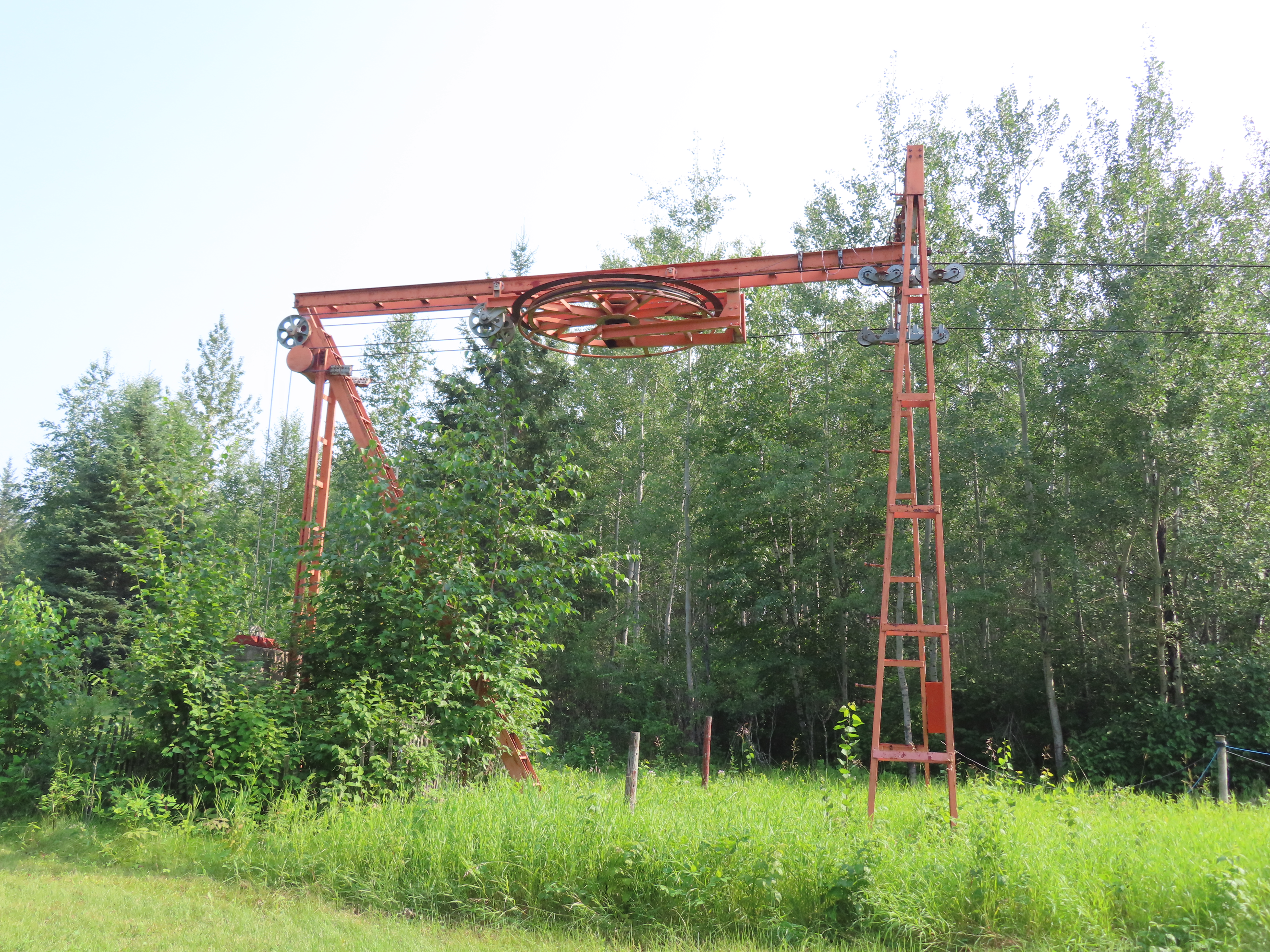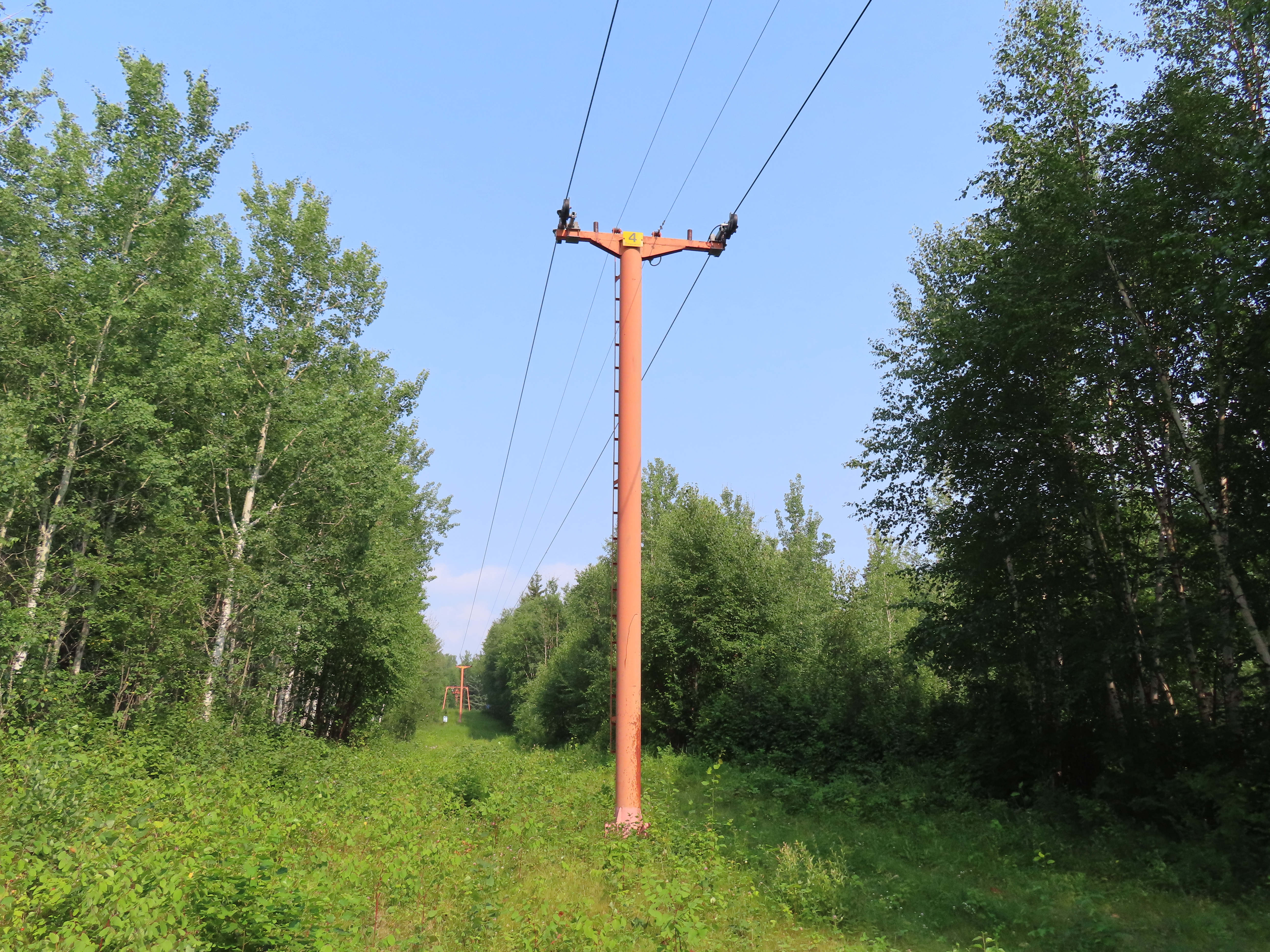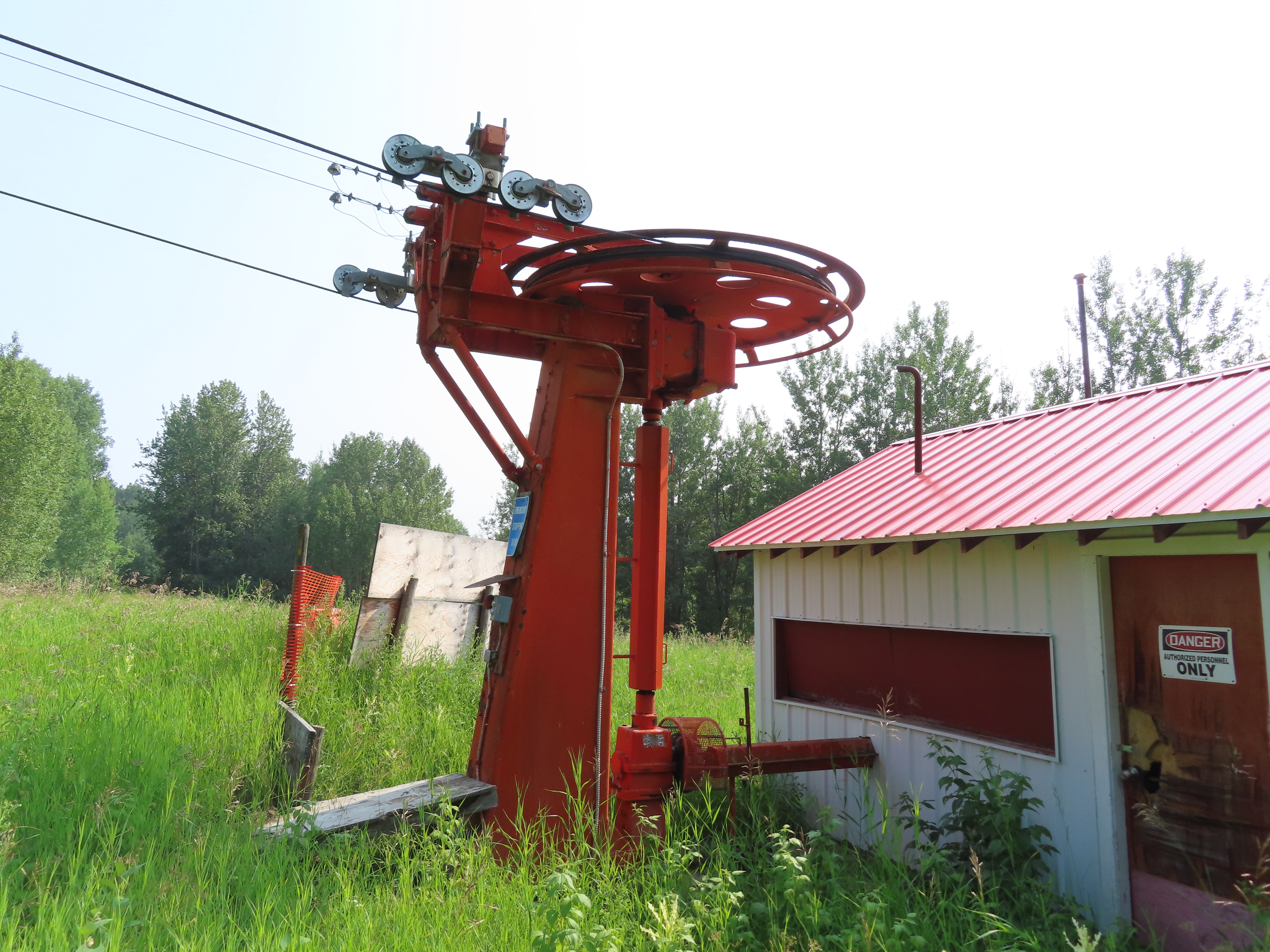 Orange – Tawatinaw Valley, AB This T-Bar services a tree skiing terrain pod. Side view of the top tension terminal. View down the low angle lift line. Upper part of the lift line. Tower 4. T2. Drive station with attached motor room building. Side view of the drive bullwheel. Share this: Click to email a link to a friend (Opens in new window) Email Click to share on X (Opens in new window) X Click to share on Facebook (Opens in new window) Facebook Like Loading...