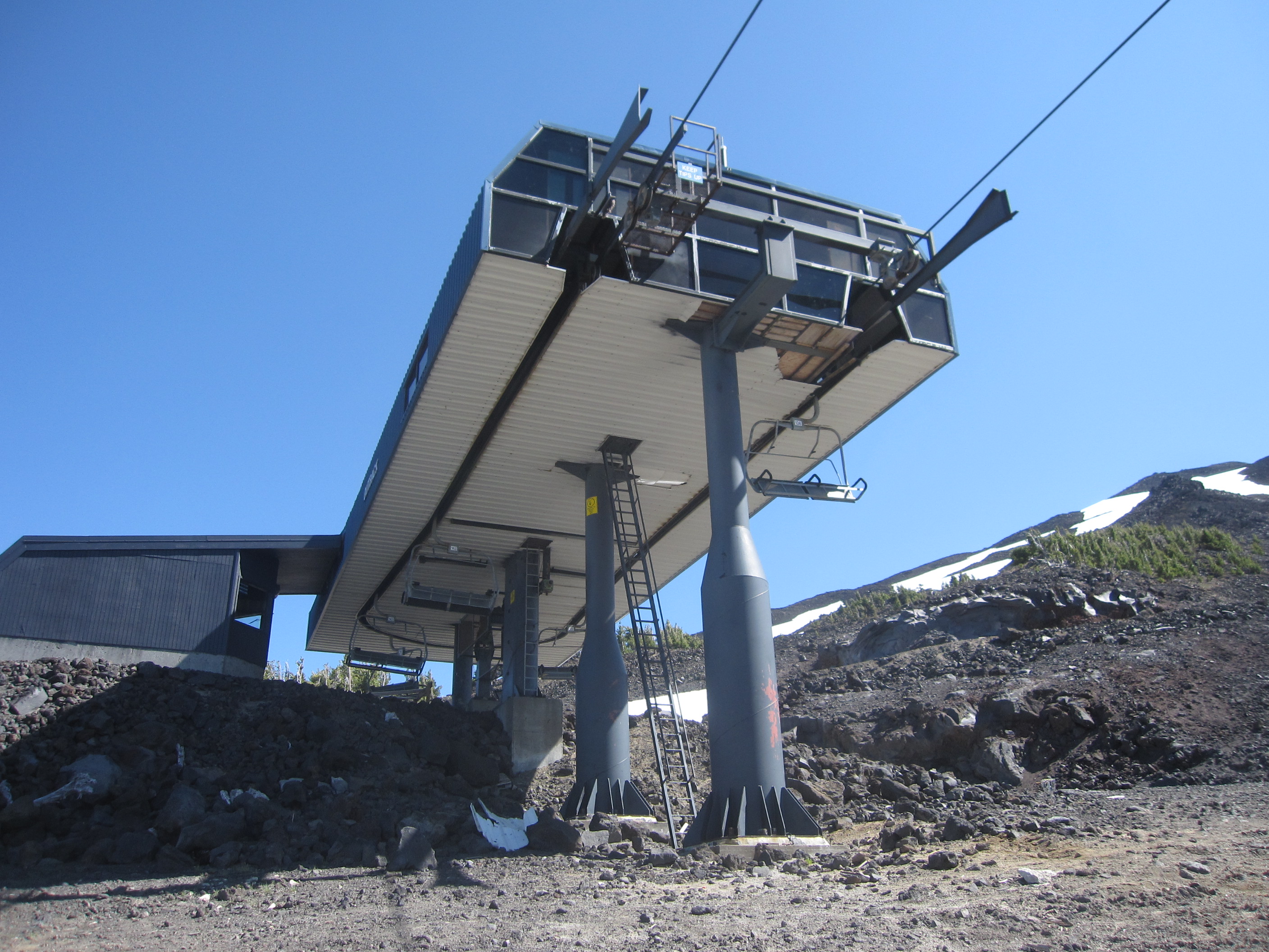 Top terminal.Top and lift line.Top station from below.Top terminal.Lift line.Lower section of the lift line.View up towards the summit.Tower 4.The lower station is height adjustable, maintenance rail and all.Chairs parked on the rail.Base terminal and lift line.Side view of the return terminal.Upper lift line view.