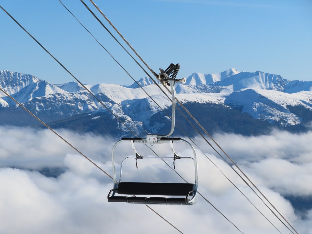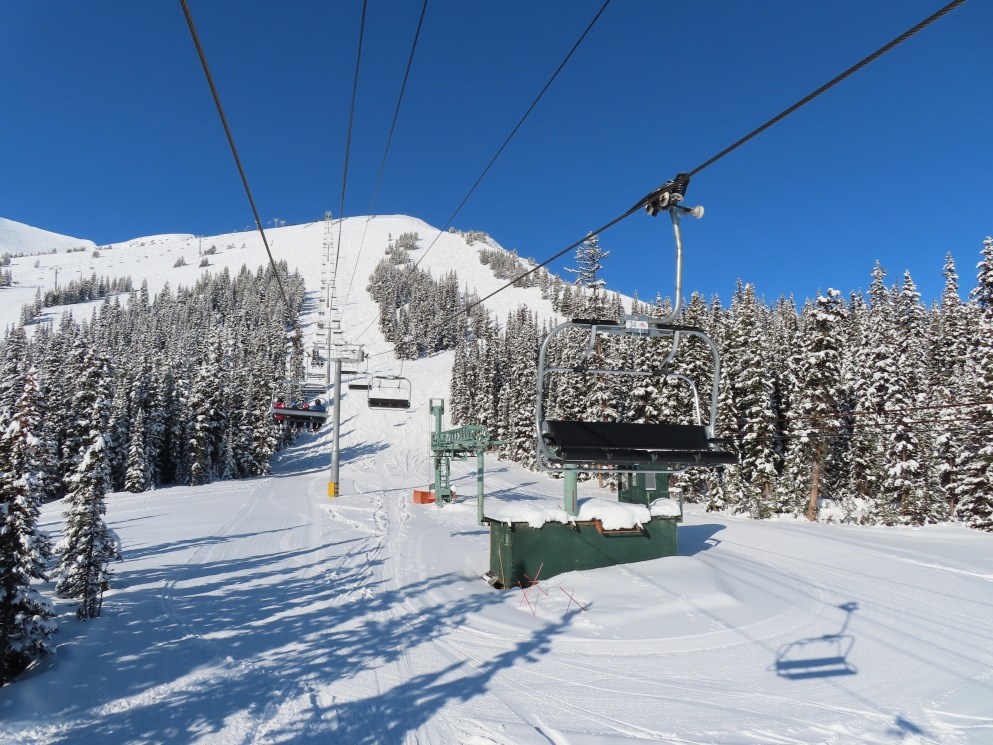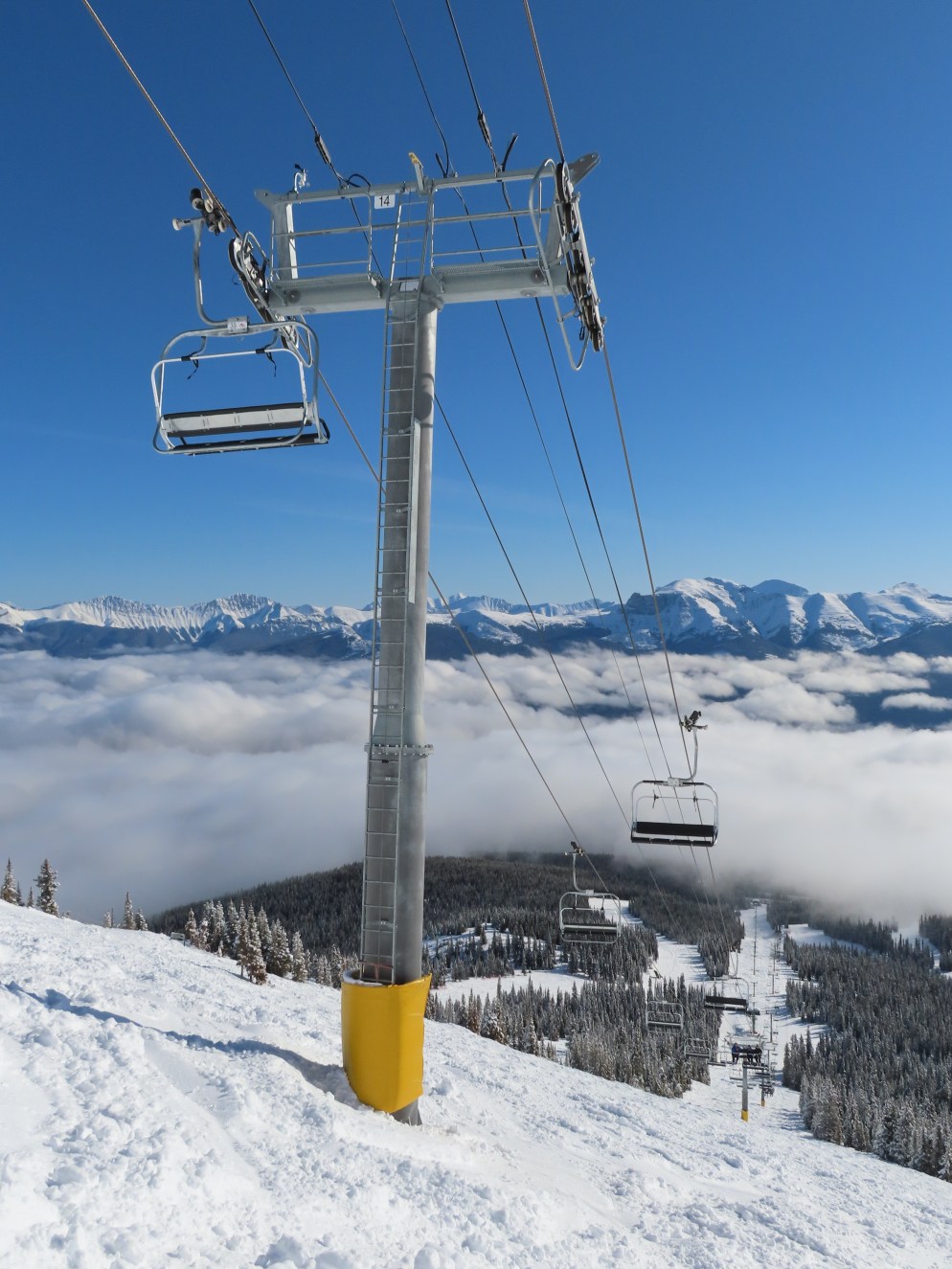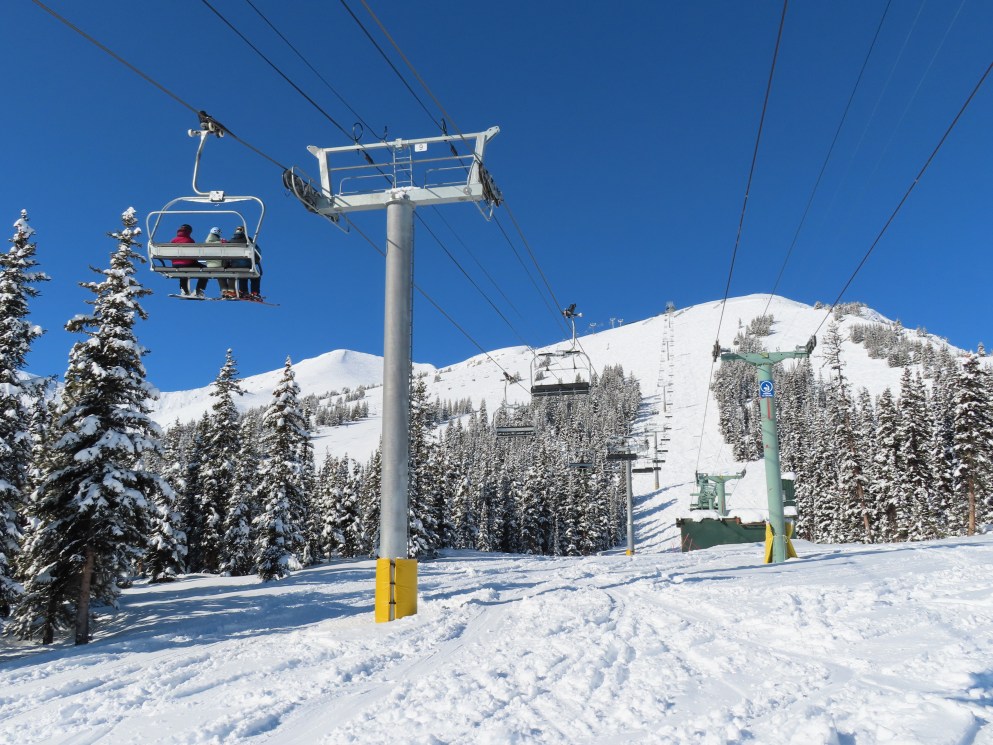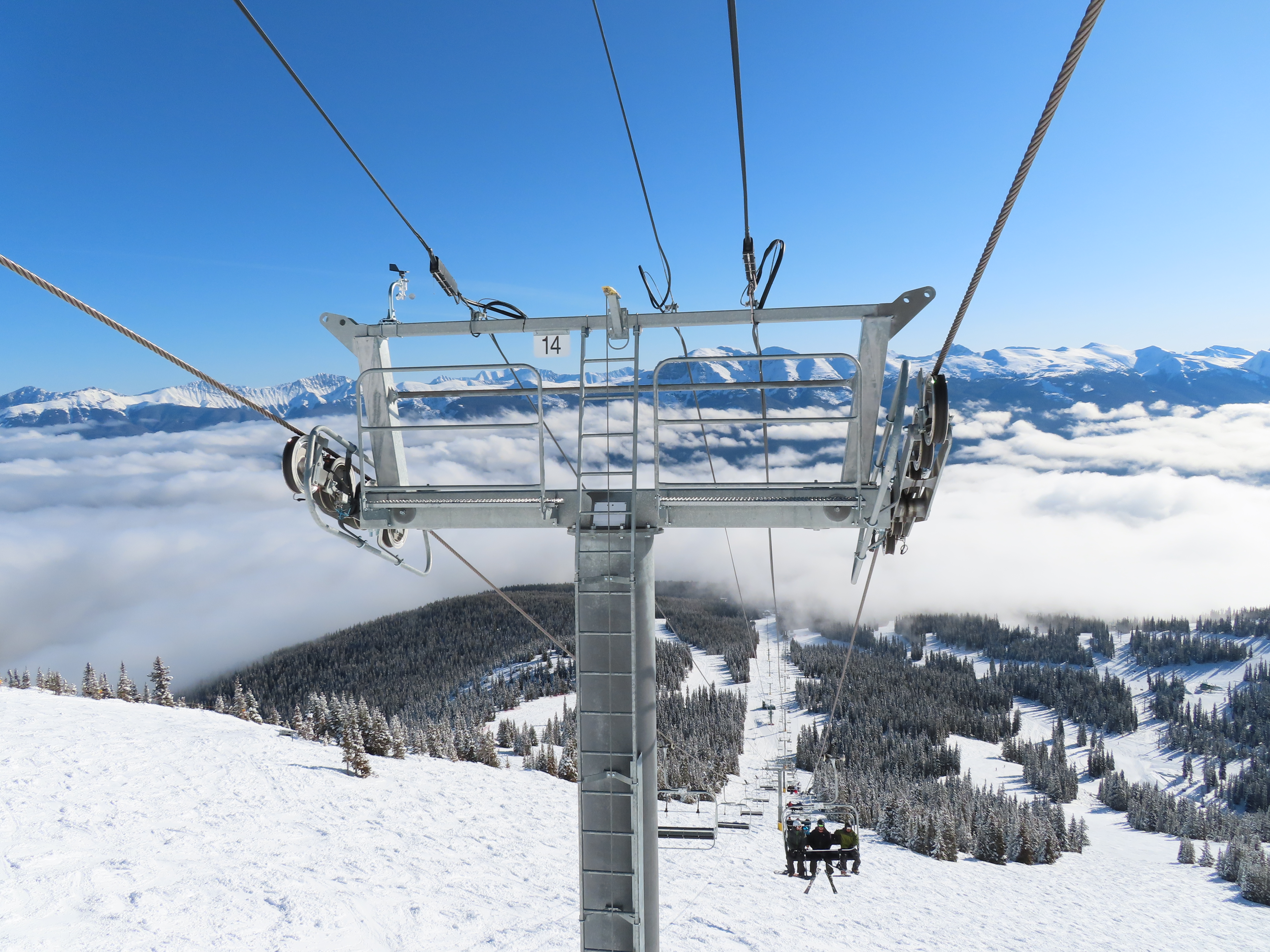 The Paradise Express opened in 2011 in a completely new alignment indirectly replacing three older Doppelmayr lifts.Aerial view of the top terminal.The upper station is directly adjacent to the Canadian Rockies Express.Terminal underskin and lift line.Lower station with integrated sheave assemblies.The unload point.Top terminal.Leitner-Poma Omega T Grip.Lower station side view.View up the line near the retired Caribou chair’s top station.Looking down at tower 12.Another view down the line.T14.Lift line overview.Chair 4.Another view of the top station.Arriving at the drive.A crossarm and lifting frame.Riding up.View back down the first part of the line.Lift overview.View up from the base terminal.