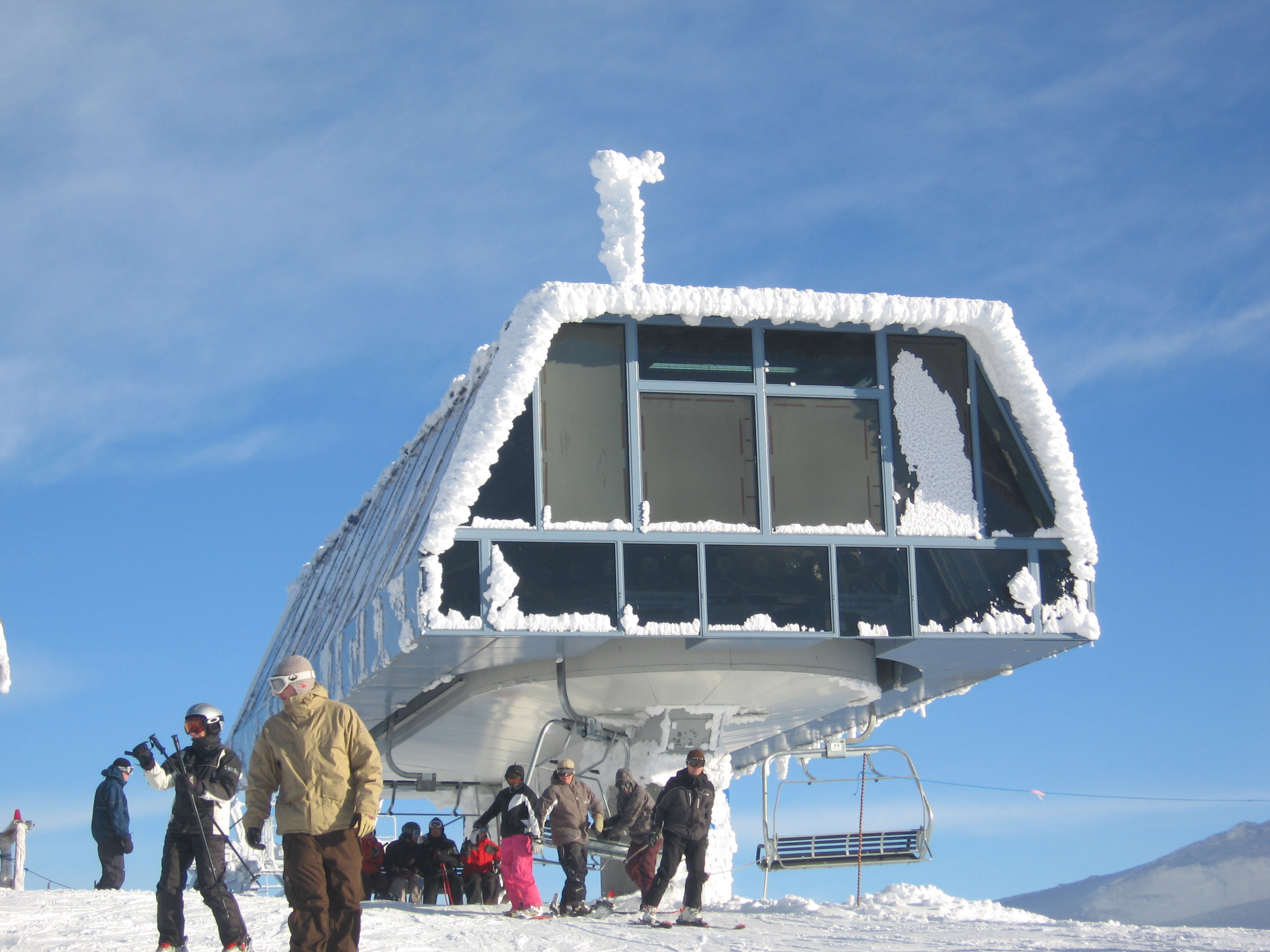Doppelmayr built a nearly identical version of this terminal in Spain a few years earlier but replaced the side windows with wooden panelling