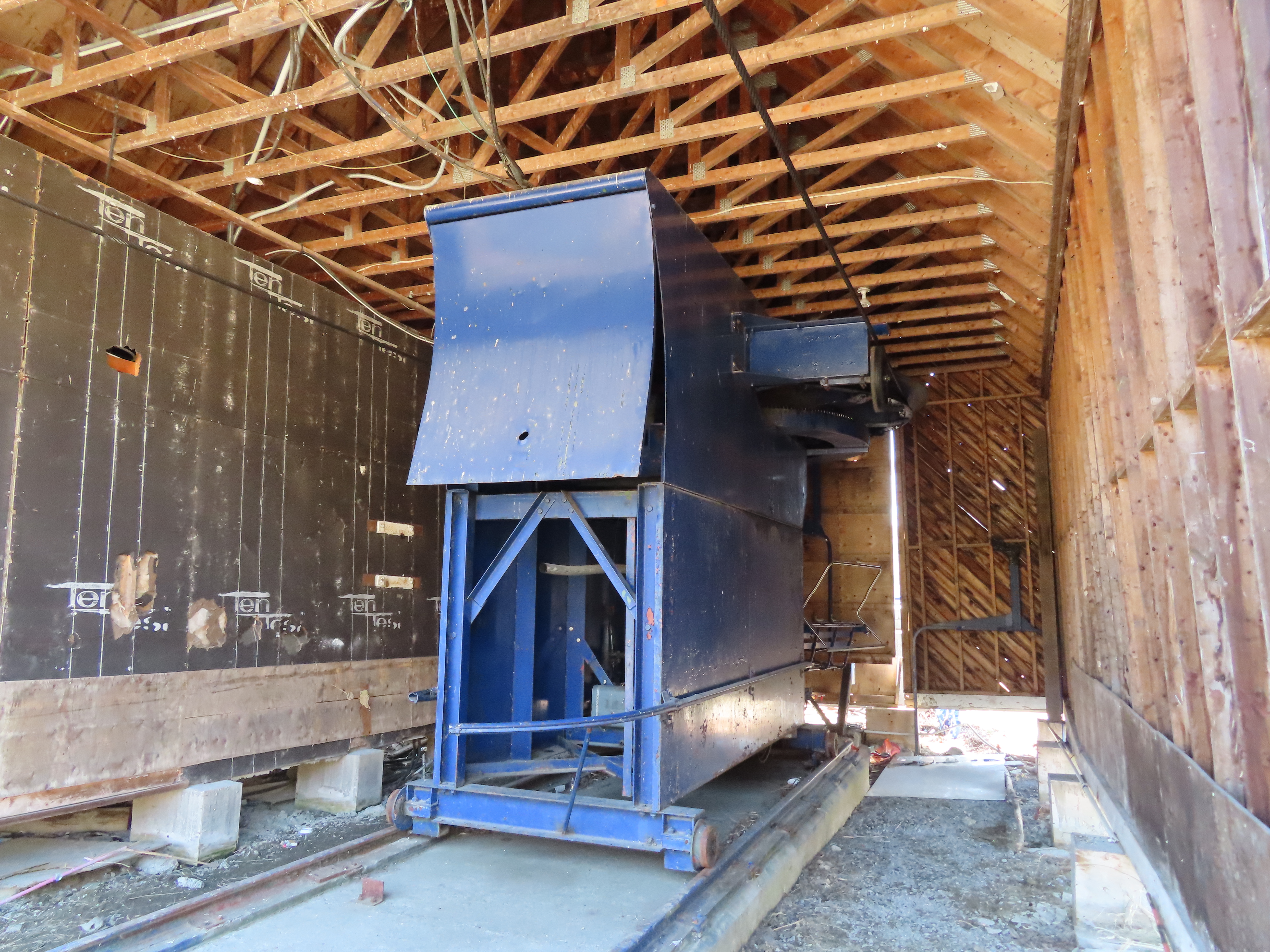 This old Hall has a bottom terminal inside a building.Drive equipment.Loading area at tower 1.Base area overview.View up the short lift line.Looking down the line which parallels a Leitner quad.Return terminal.View from the summit.