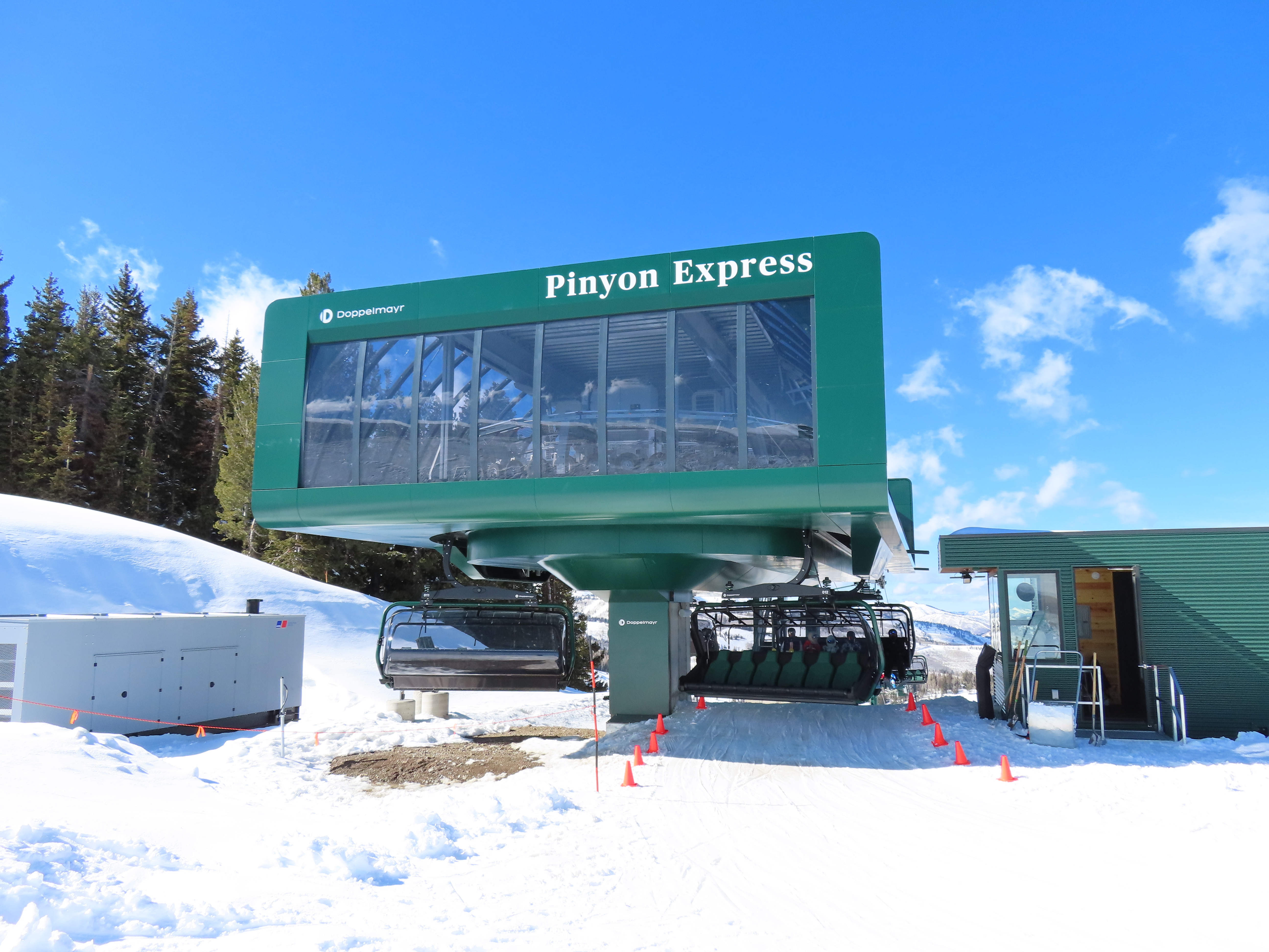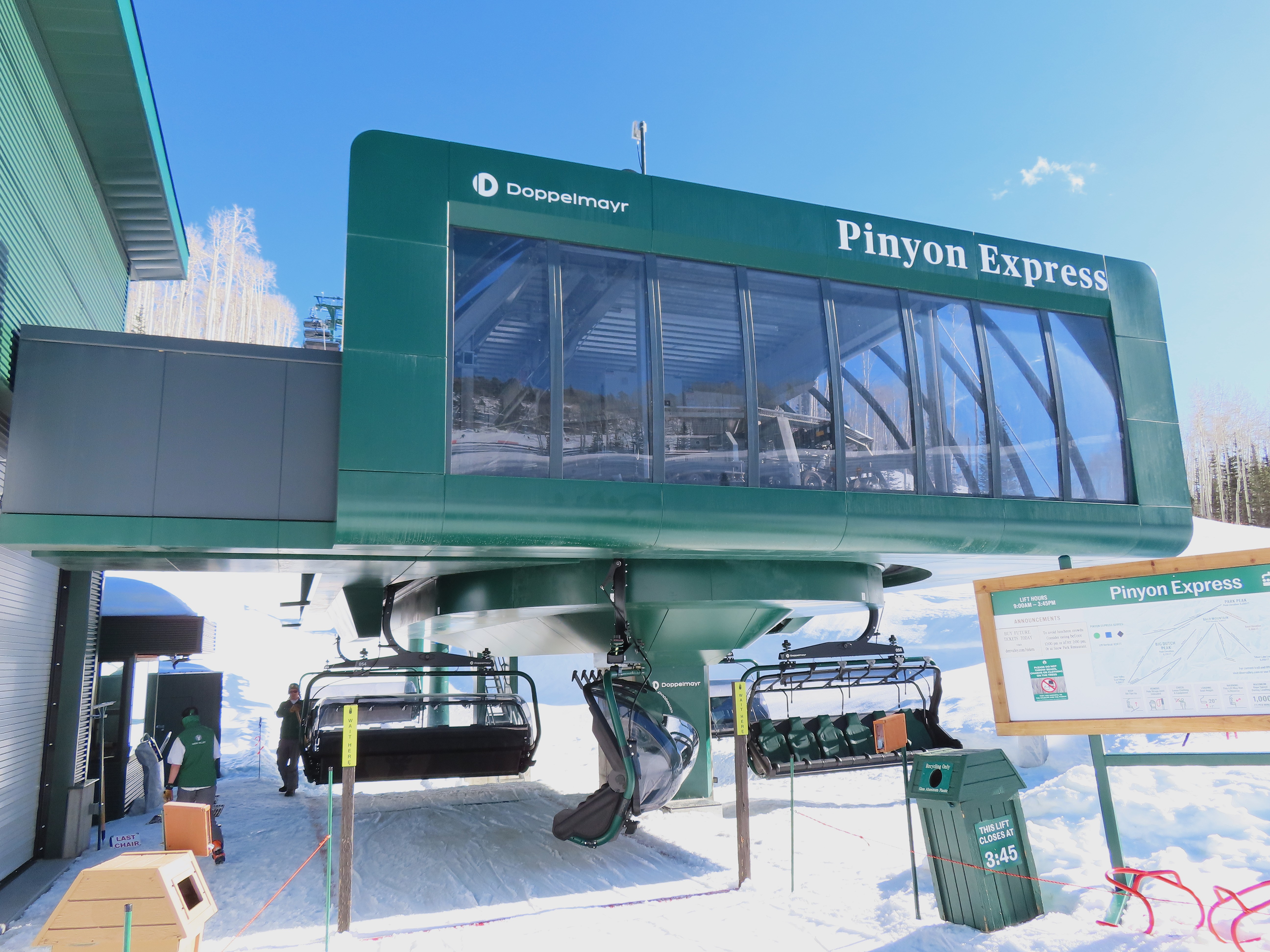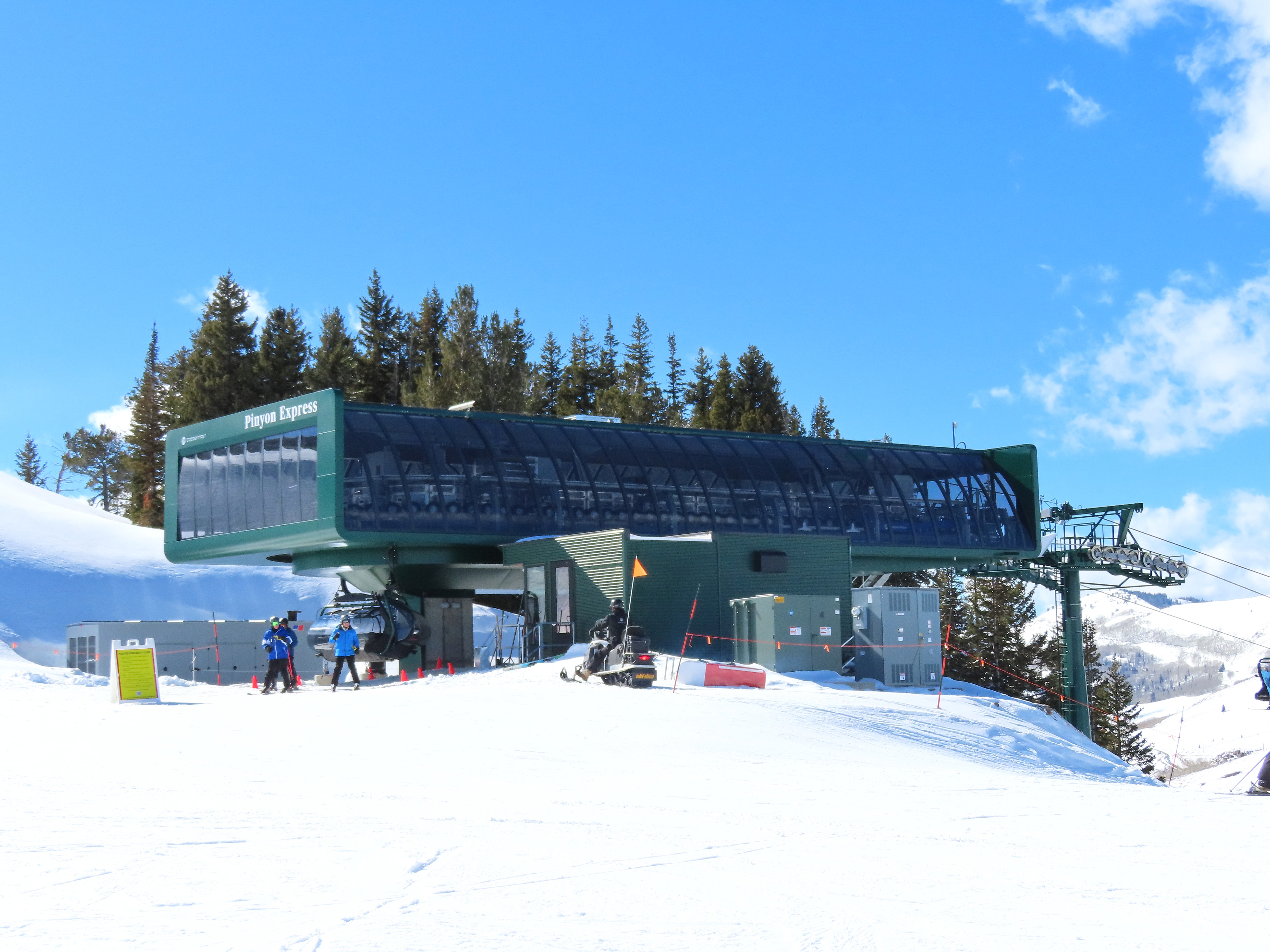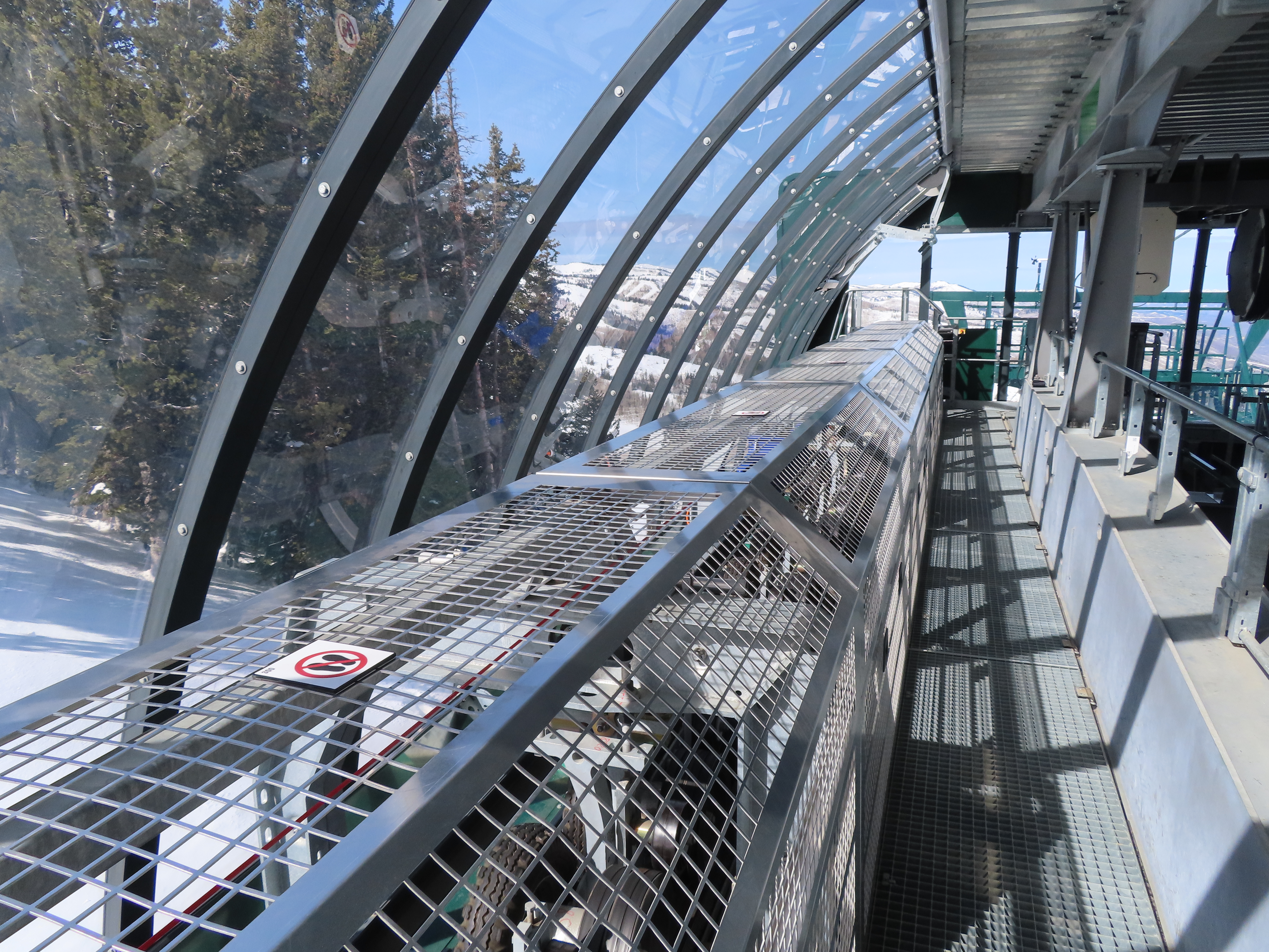 This lift is very similar to Keetley Express, built one year earlier.Doppelmayr stat sign.View riding out of the base toward Park Peak.This high alpine alignment sees lots of wind and sunshine.Tower 10.Unloading area.View from the summit back toward traditional Deer Valley and Park City Mountain.Upper station under cover.View down the middle part of the line.Side view of a conical tower.Six place bubble with heated seats.Flat middle section of the line.This lift forms a crucial link between old Deer Valley and the East Village expansion.Tower 6.Tower 3.Return terminal and maintenance bay.Side view of the drive station.Rather than a separate parking facility, chairs are parked in each station at night.Lift line seen from above.Loading area.Drive station operator controls.ABB AC motor.Evacuation drive.Wireless remote control.Traditional gearbox rather than a direct drive.D-Line station.Drive bullwheel and brakes.View from the summit.Top station just below the summit of Park Peak and Revelator.Bottom station along the Ontario ski run.