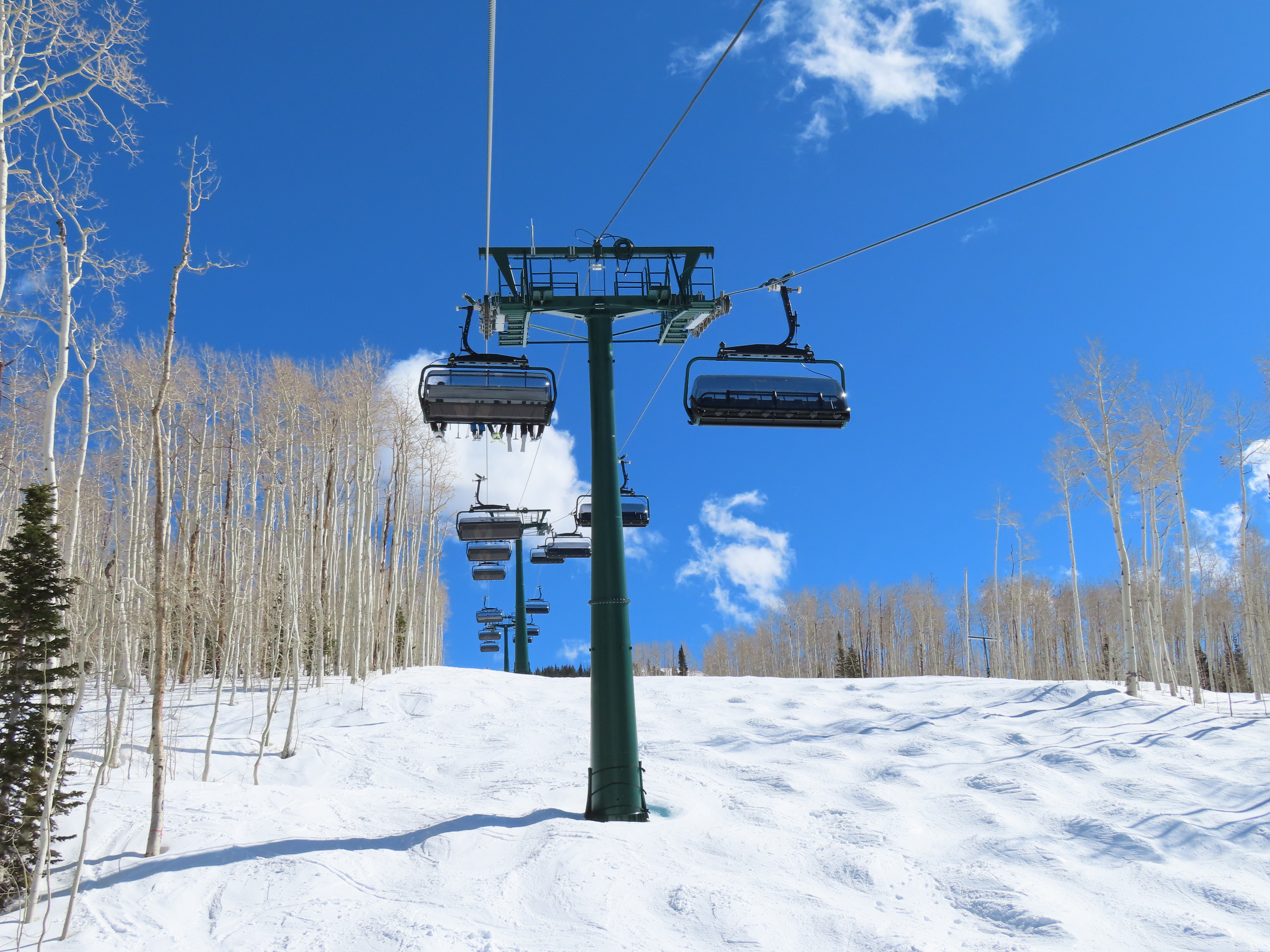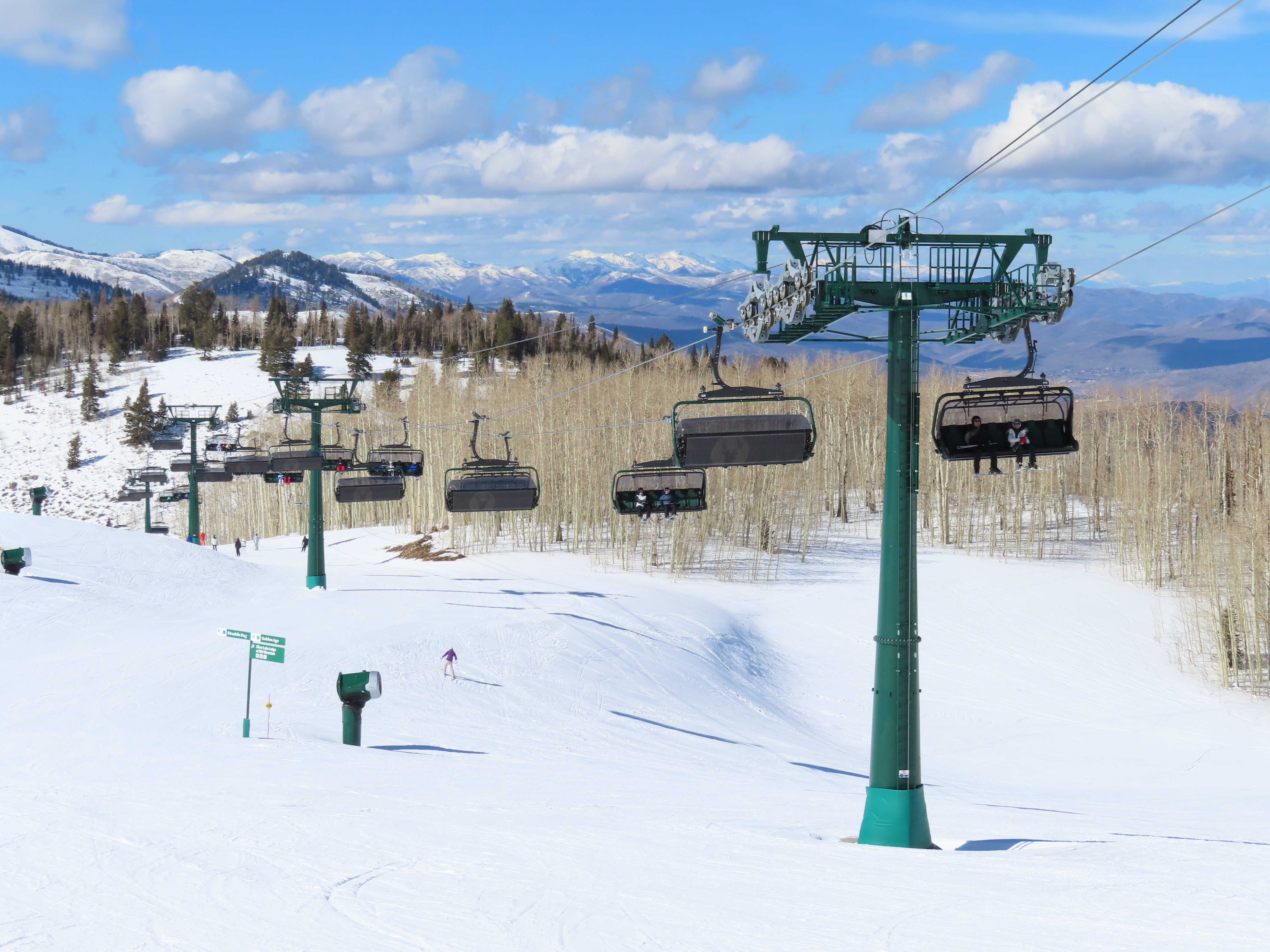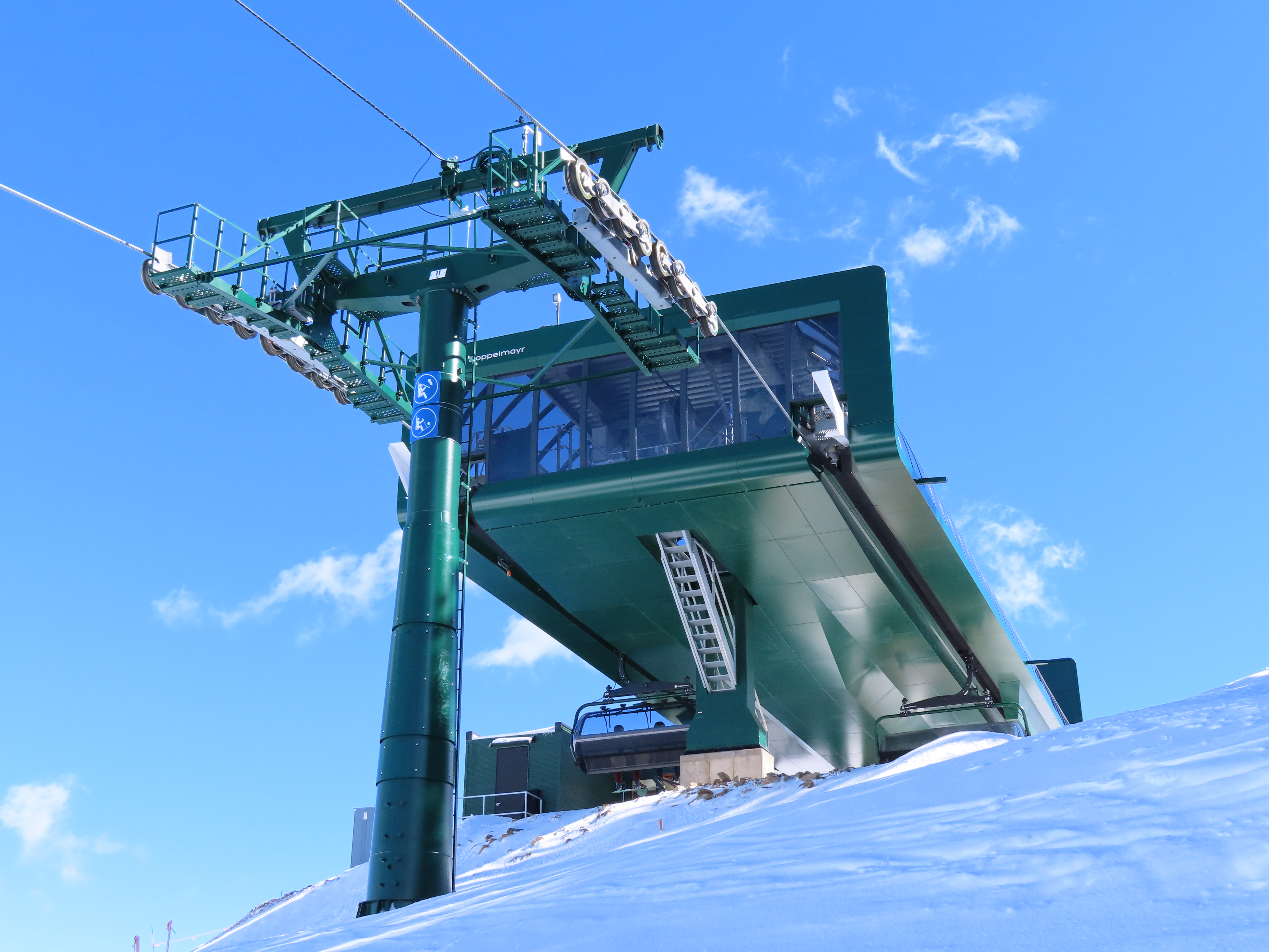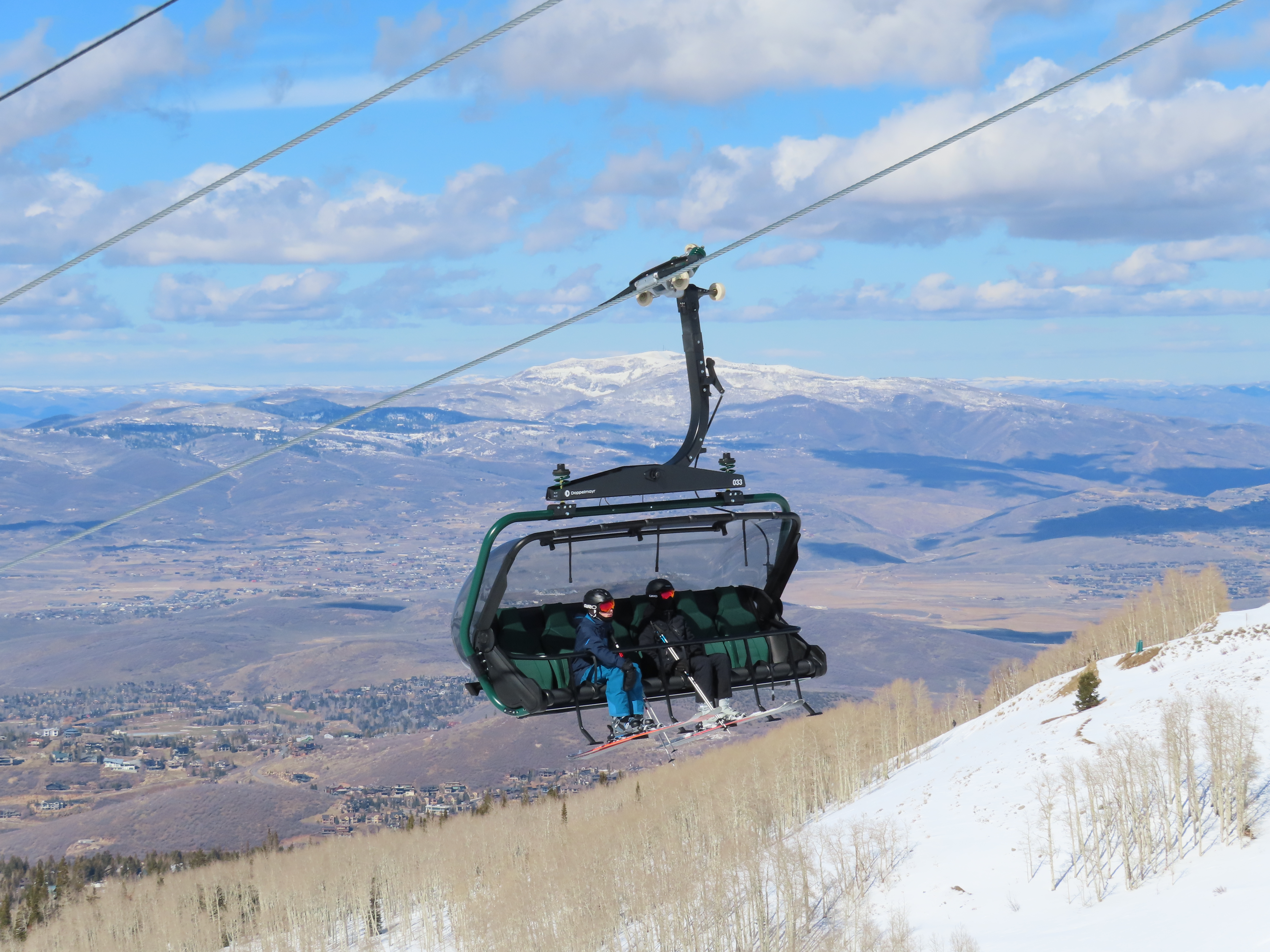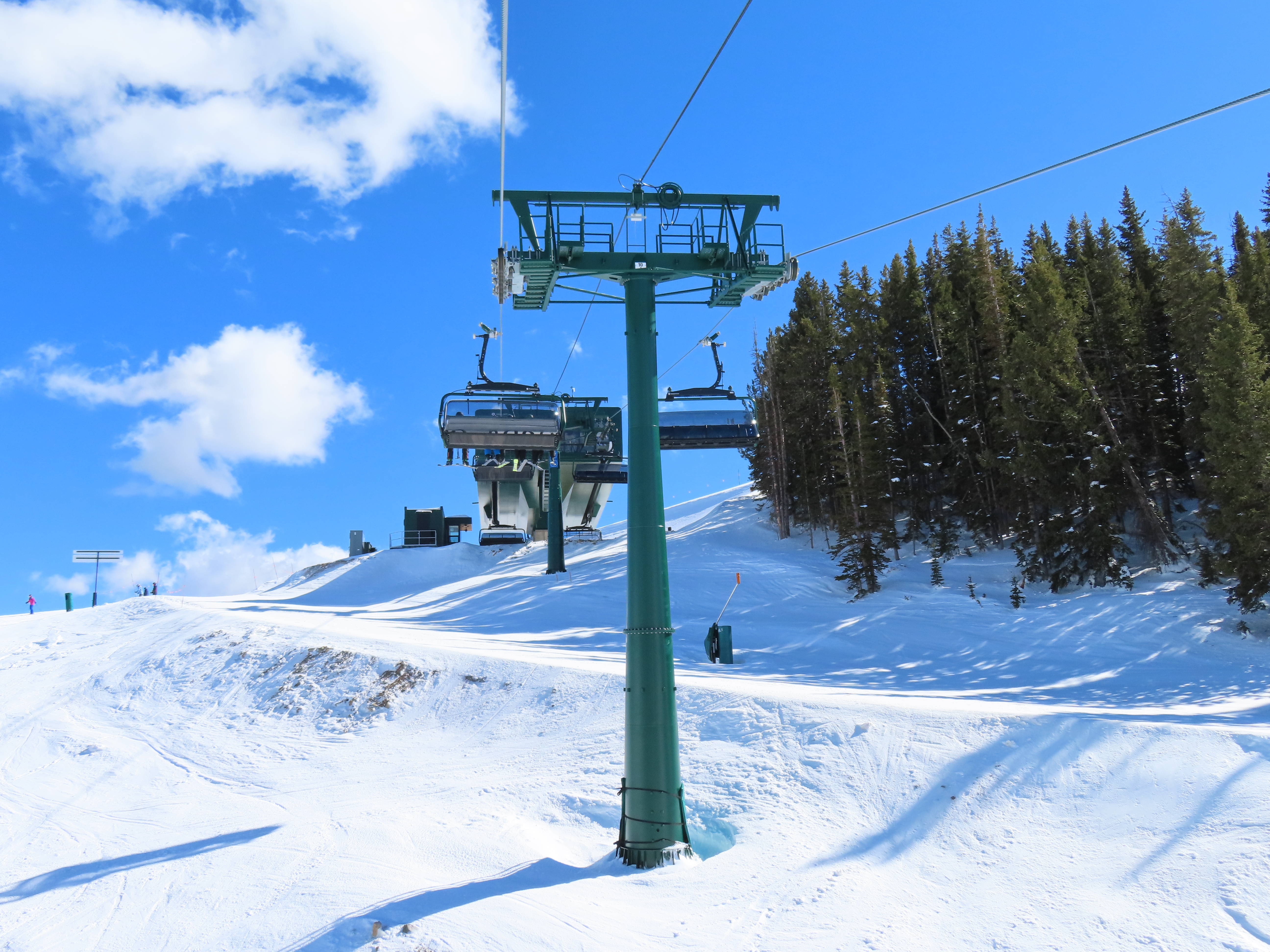 This lift is very similar to Keetley Express, built one year earlier.Doppelmayr stat sign.View riding out of the base toward Park Peak.This high alpine alignment sees lots of wind and sunshine.Tower 10.Unloading area.View from the summit back toward traditional Deer Valley and Park City Mountain.Upper station under cover.View down the middle part of the line.Side view of a conical tower.Six place bubble with heated seats.Flat middle section of the line.This lift forms a crucial link between old Deer Valley and the East Village expansion.Tower 6.Tower 3.Return terminal and maintenance bay.Side view of the drive station.Rather than a separate parking facility, chairs are parked in each station at night.Lift line seen from above.Loading area.Drive station operator controls.ABB AC motor.Evacuation drive.Wireless remote control.Traditional gearbox rather than a direct drive.D-Line station.Drive bullwheel and brakes.View from the summit.Top station just below the summit of Park Peak and Revelator.Bottom station along the Ontario ski run.
