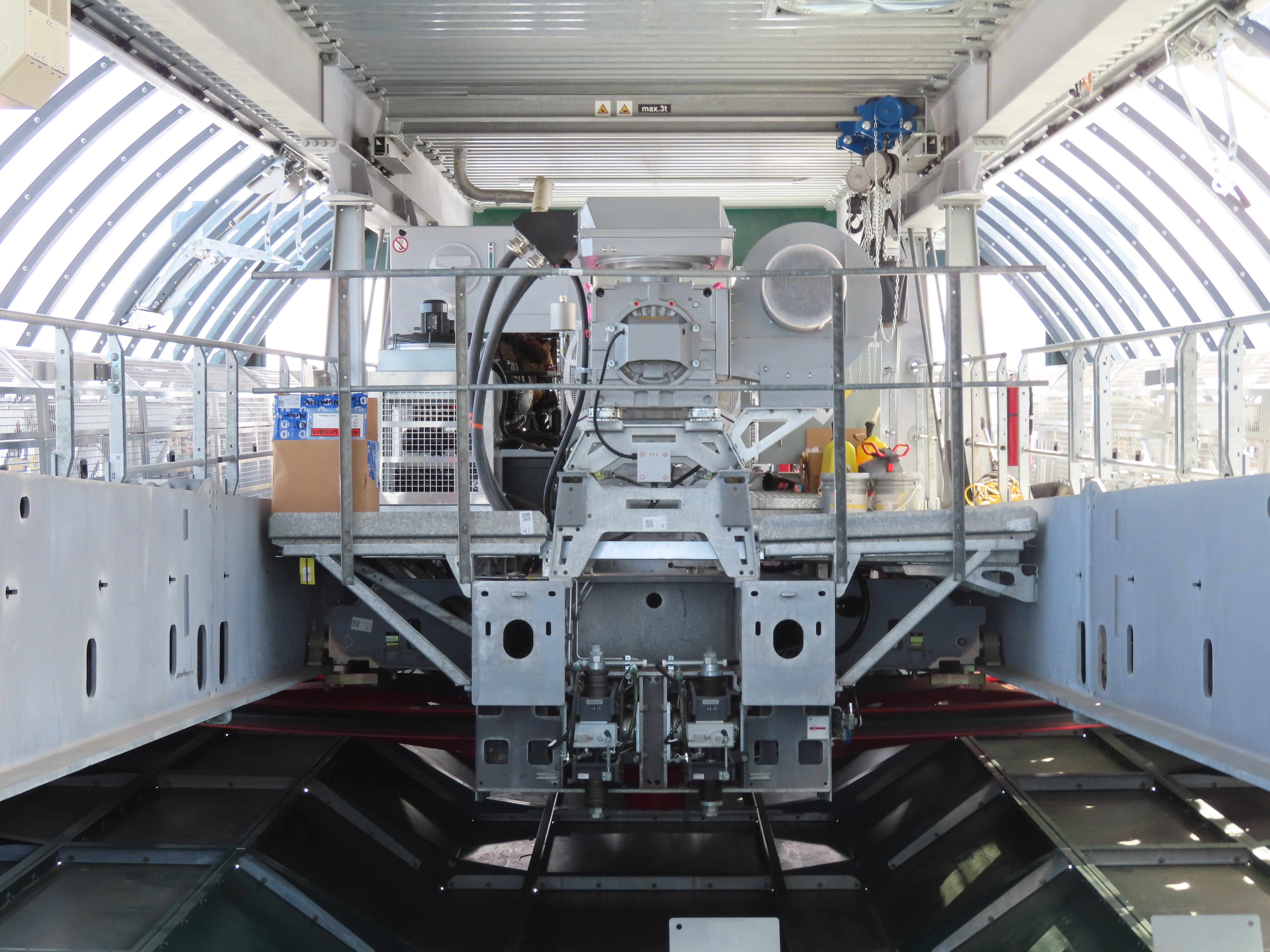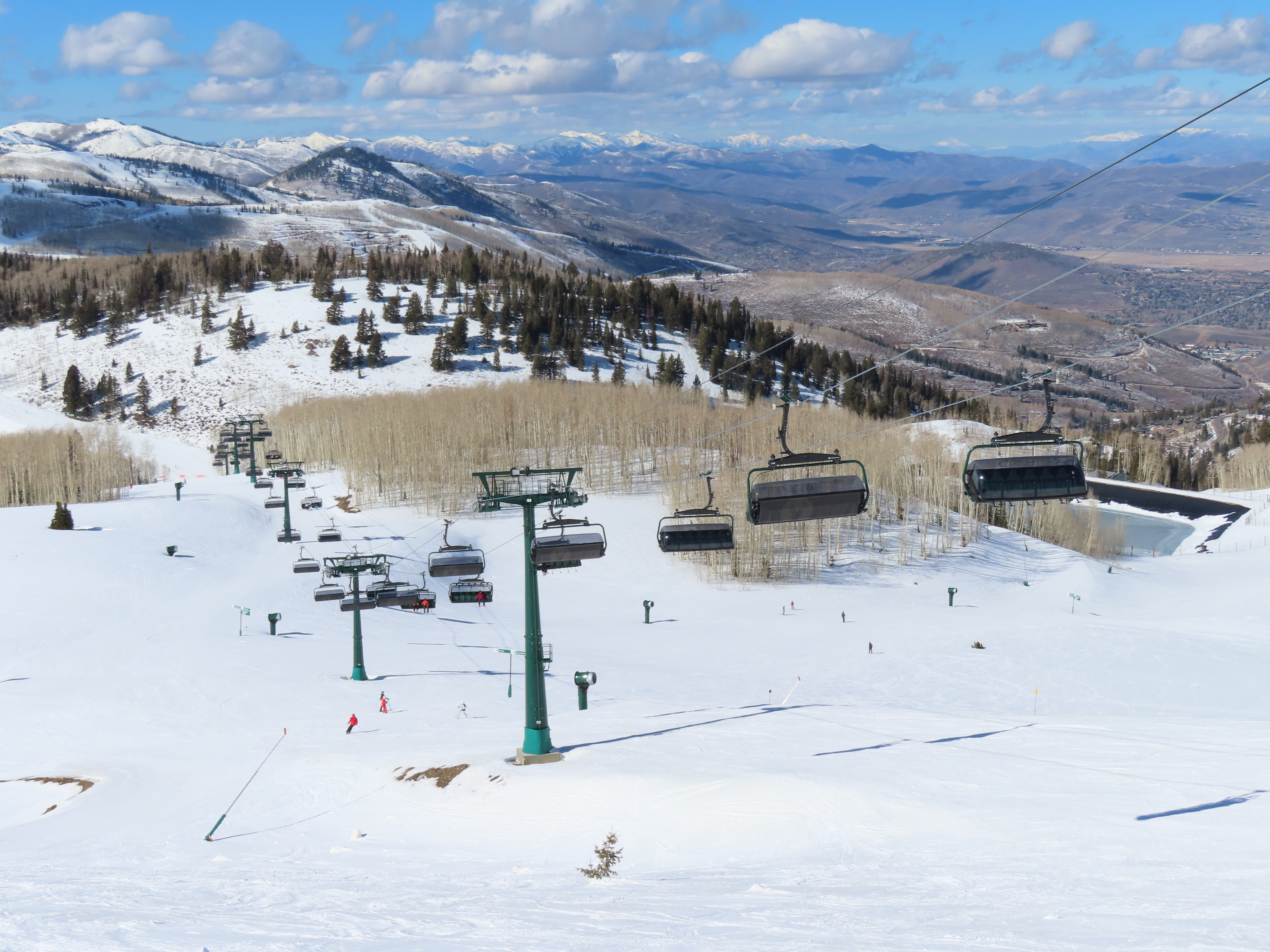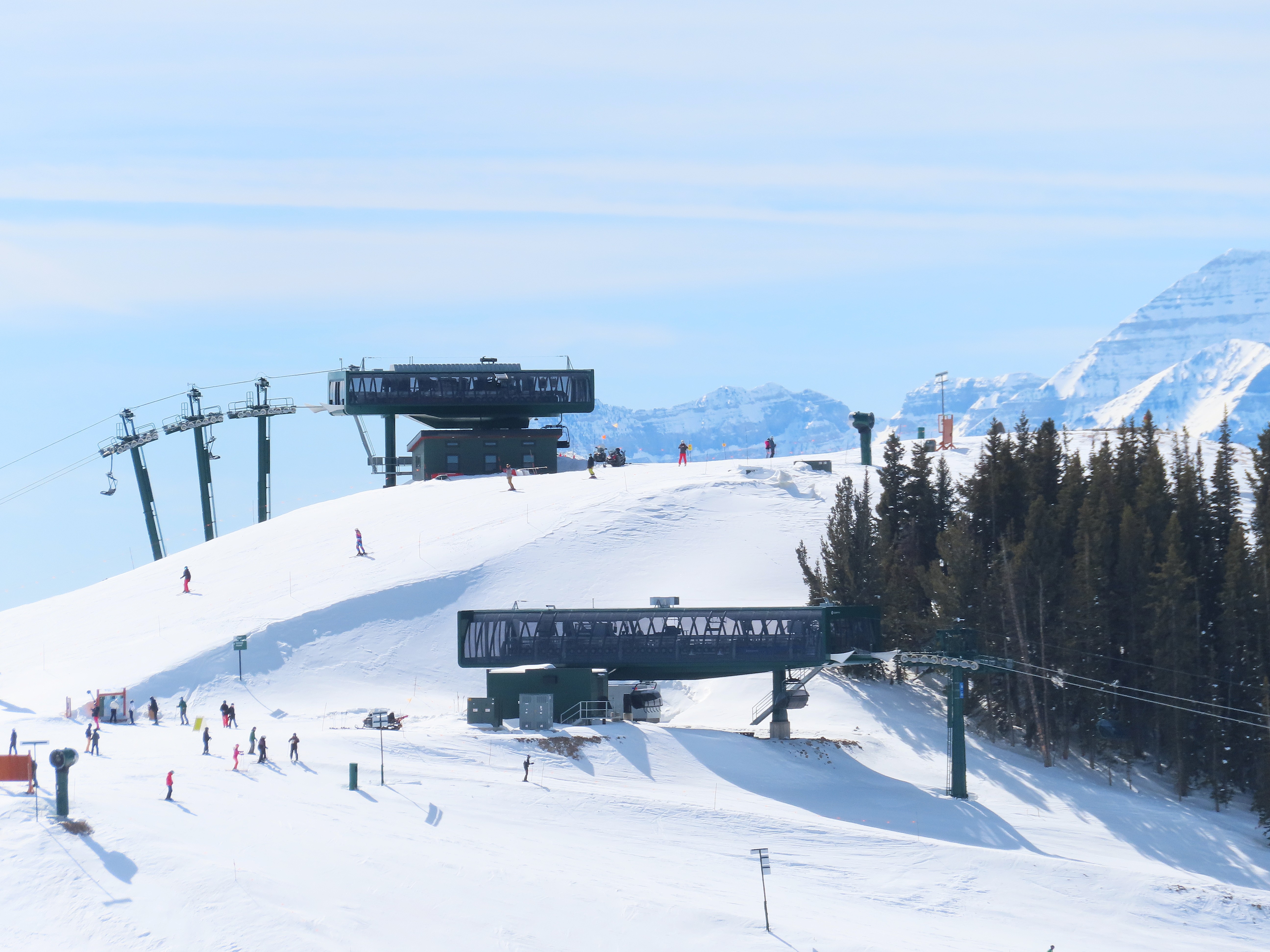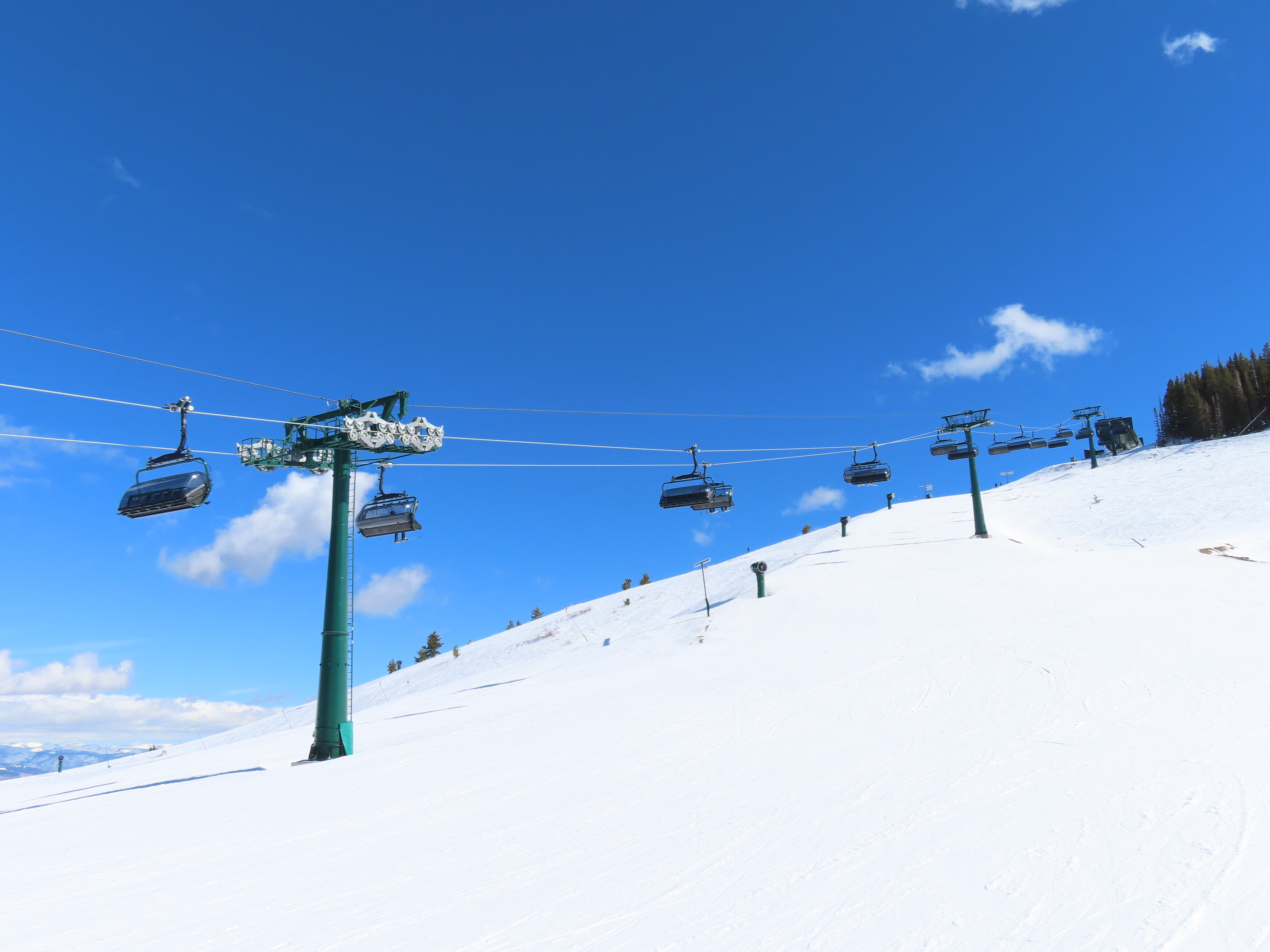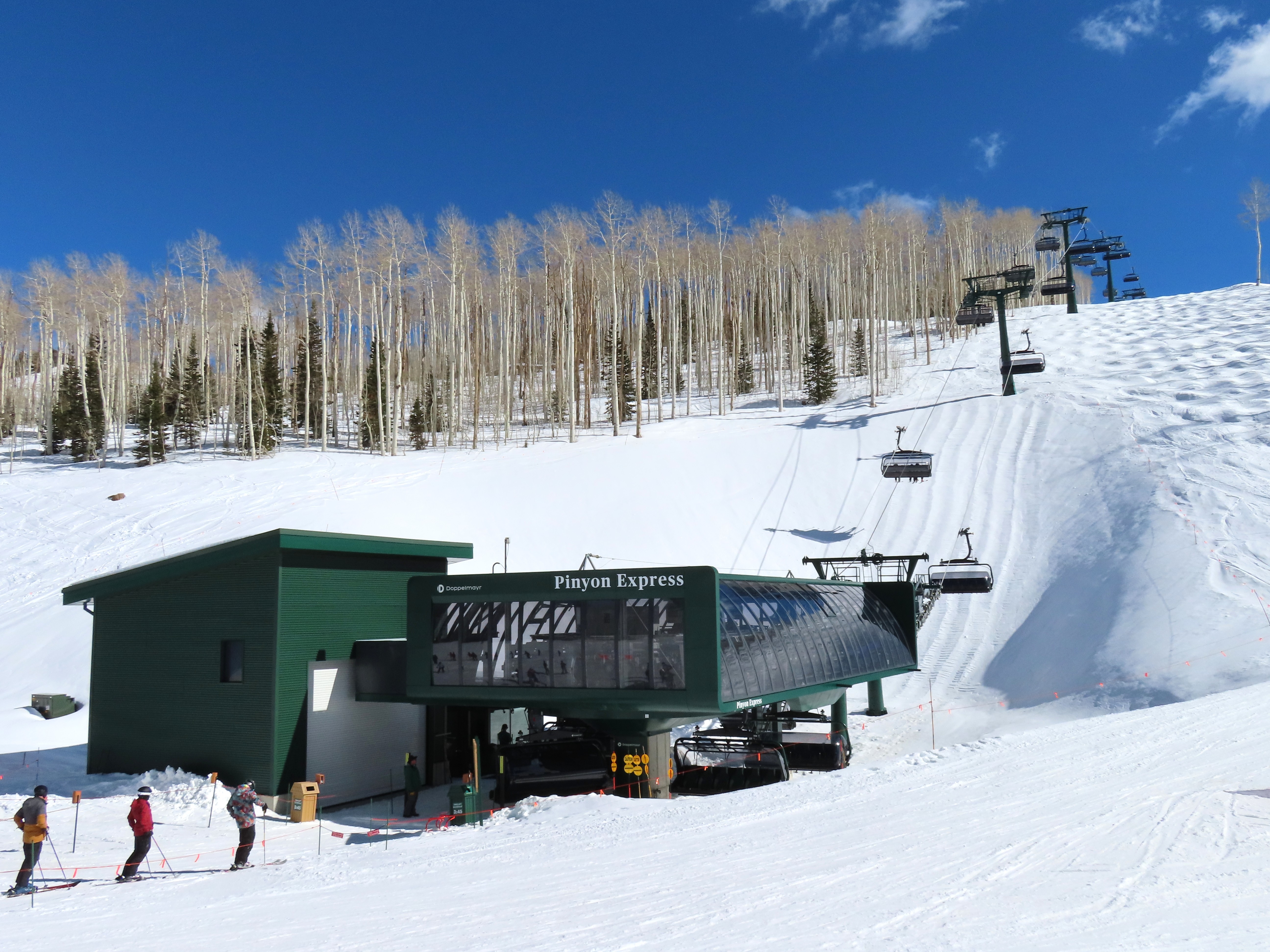 This lift is very similar to Keetley Express, built one year earlier.Doppelmayr stat sign.View riding out of the base toward Park Peak.This high alpine alignment sees lots of wind and sunshine.Tower 10.Unloading area.View from the summit back toward traditional Deer Valley and Park City Mountain.Upper station under cover.View down the middle part of the line.Side view of a conical tower.Six place bubble with heated seats.Flat middle section of the line.This lift forms a crucial link between old Deer Valley and the East Village expansion.Tower 6.Tower 3.Return terminal and maintenance bay.Side view of the drive station.Rather than a separate parking facility, chairs are parked in each station at night.Lift line seen from above.Loading area.Drive station operator controls.ABB AC motor.Evacuation drive.Wireless remote control.Traditional gearbox rather than a direct drive.D-Line station.Drive bullwheel and brakes.View from the summit.Top station just below the summit of Park Peak and Revelator.Bottom station along the Ontario ski run.