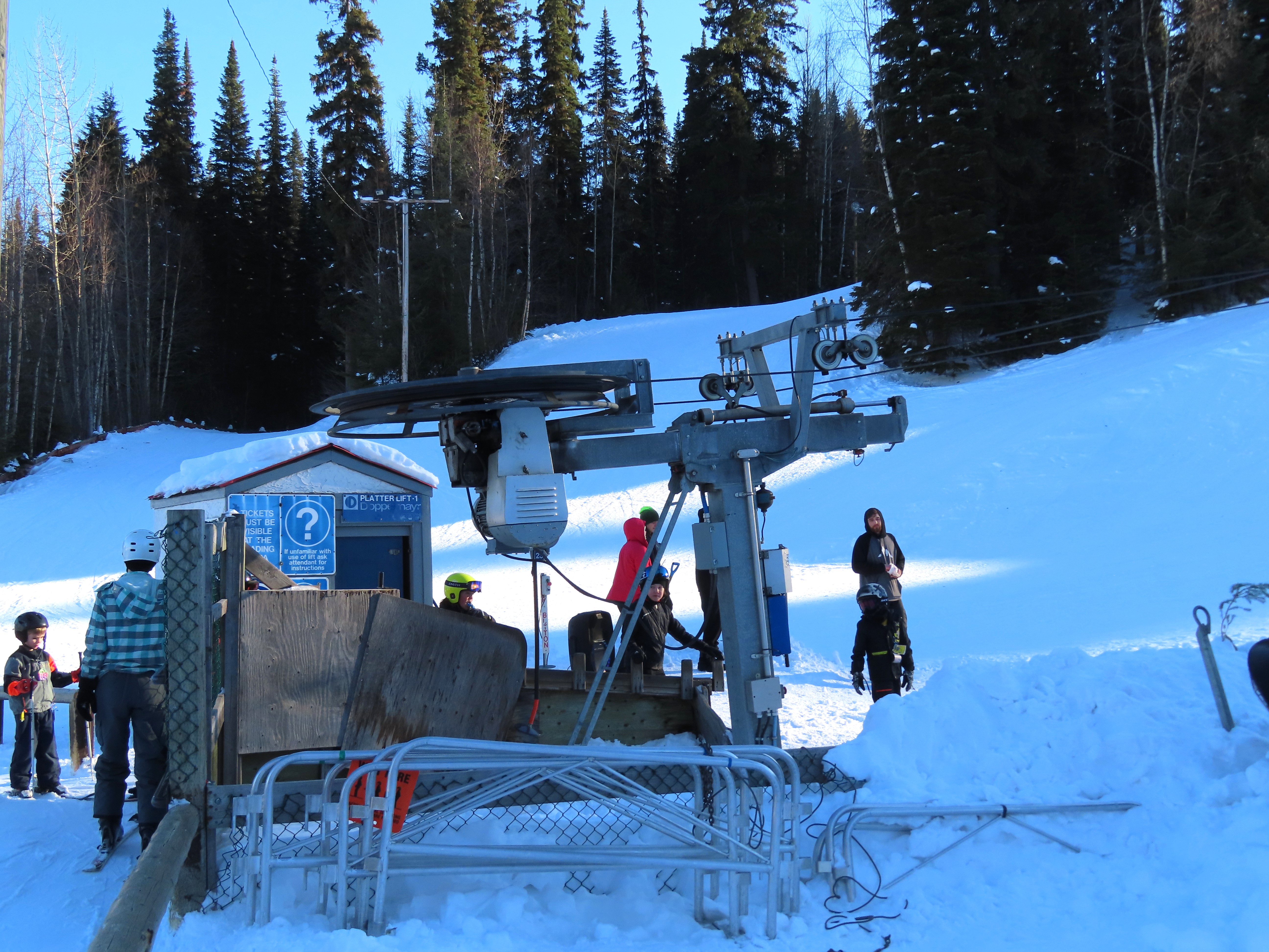 Platter 1 – Hart Highlands, BC This small community ski club features a carpet lift and Doppelmayr platter. View up the short lift line. Top return terminal. View down the line. Unloading point at tower 3. This lift has no top operator. Loading area. View down at tower 2. Lift overview. Share this: Email a link to a friend (Opens in new window) Email Share on X (Opens in new window) X Share on Facebook (Opens in new window) Facebook Like Loading...