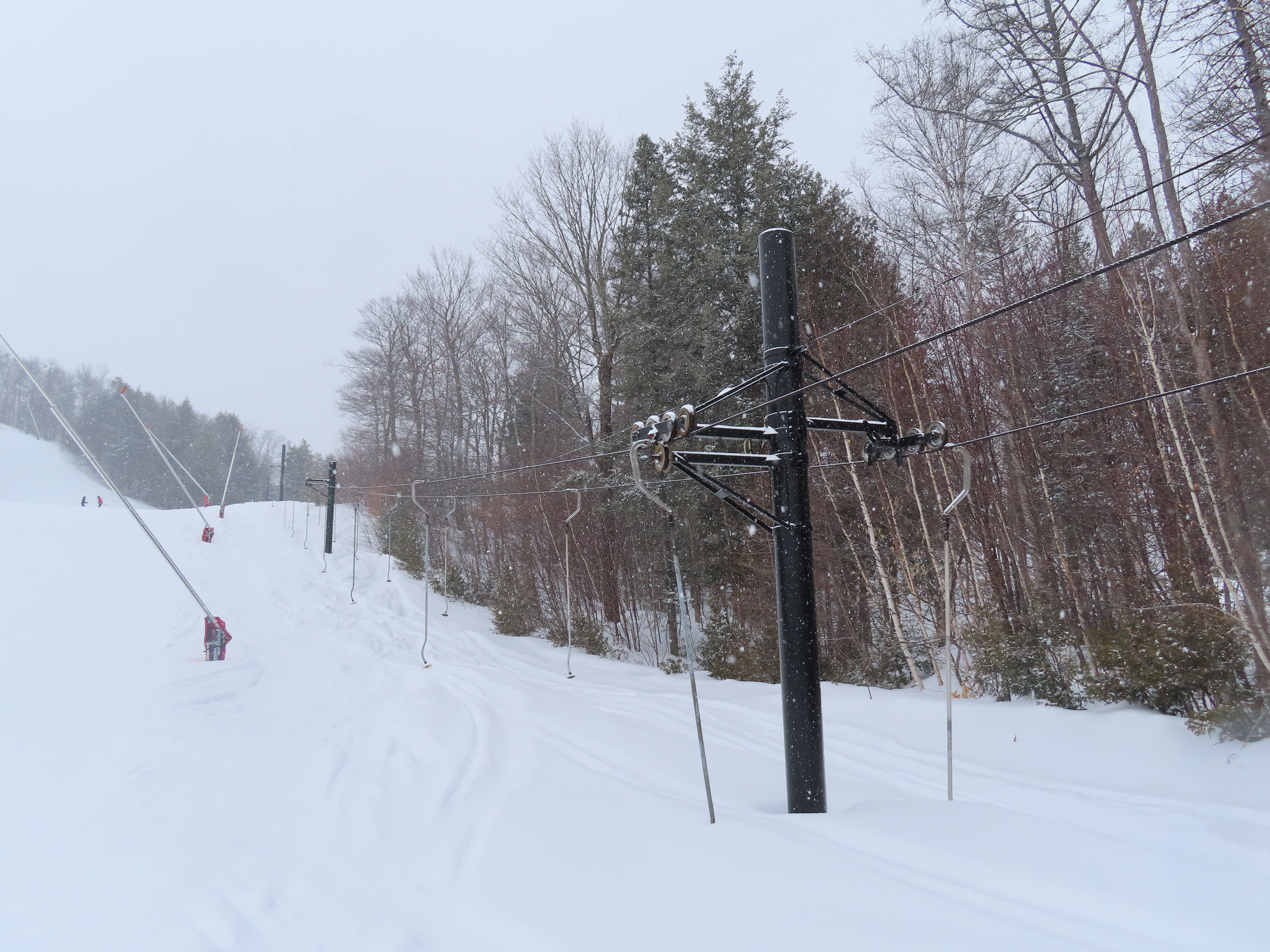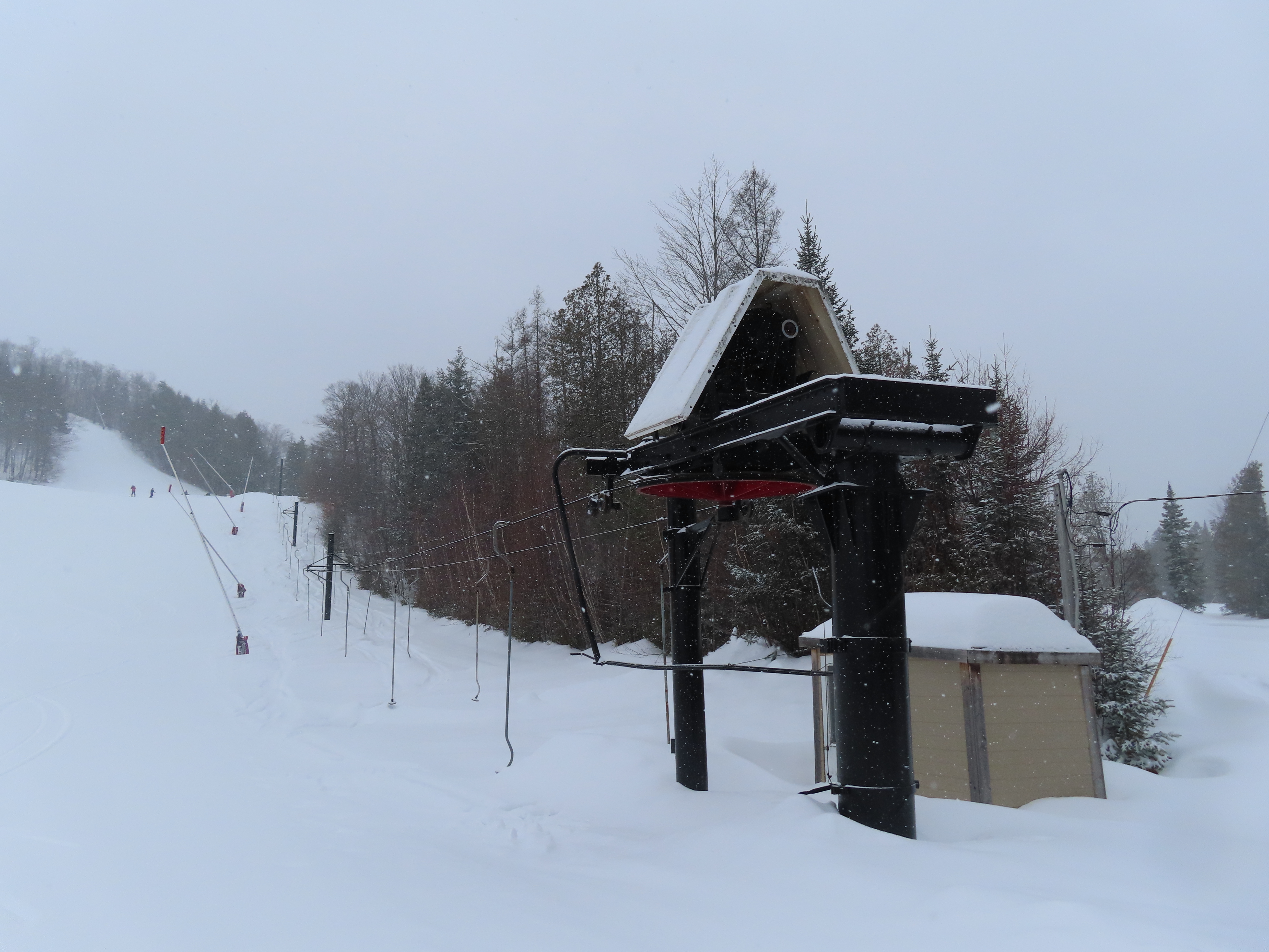 Poma – Ski Montcalm, QC This short surface lift services beginner terrain. Unloading area at tower 4. View down the short lift line. Tower 2. Looking up the line. Drive terminal in the base area. Lift overview. Share this: Email a link to a friend (Opens in new window) Email Share on X (Opens in new window) X Share on Facebook (Opens in new window) Facebook Like Loading...