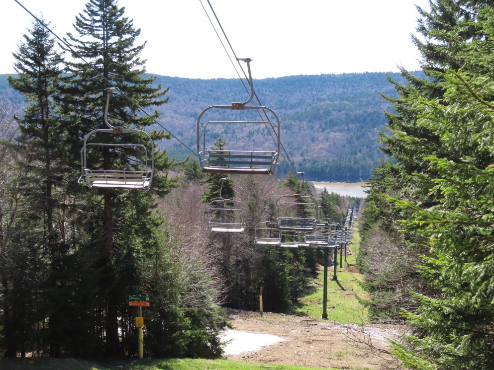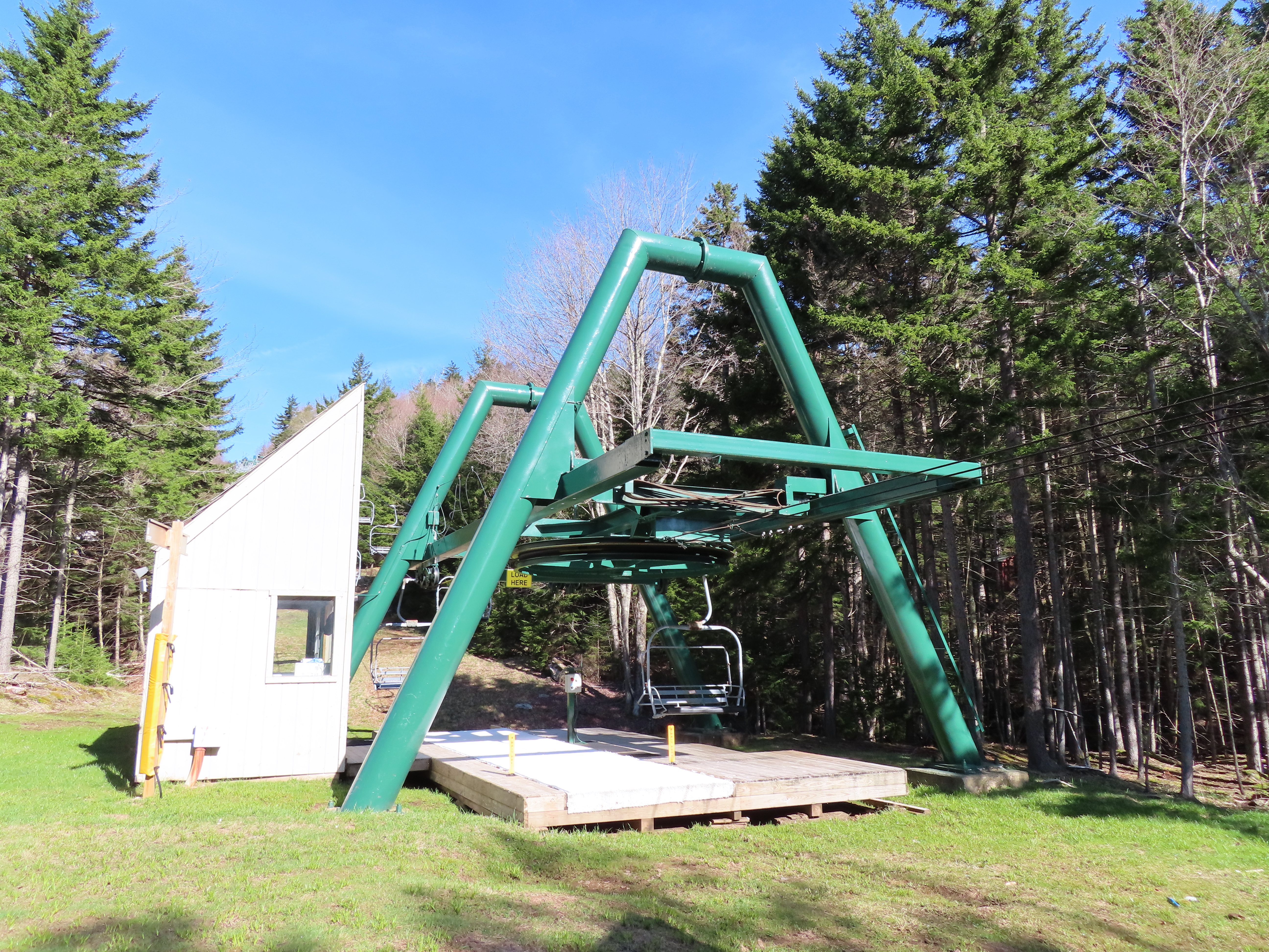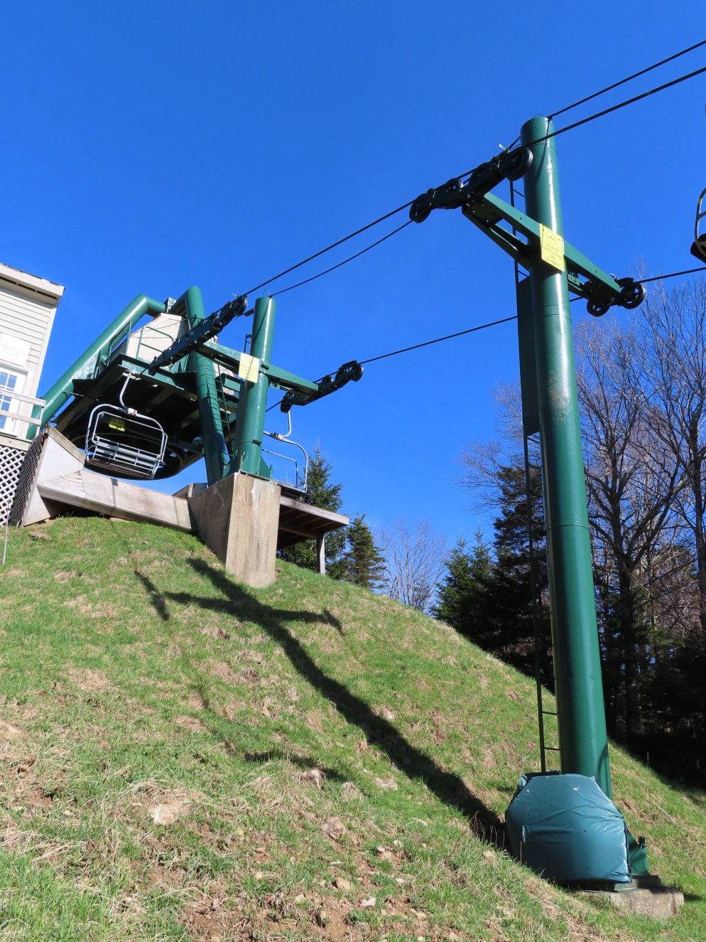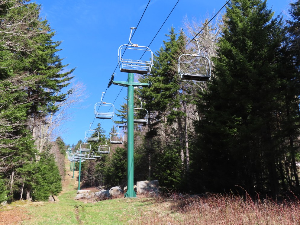 I kind off remember this lift. It accesses terrain parks I guess. There’s so many triples. The triples at Snowshoe are pretty much all identical. Same poles, chairs, terminals. This was a more quiet lift of the other triples? I don’t know? Needs footrests