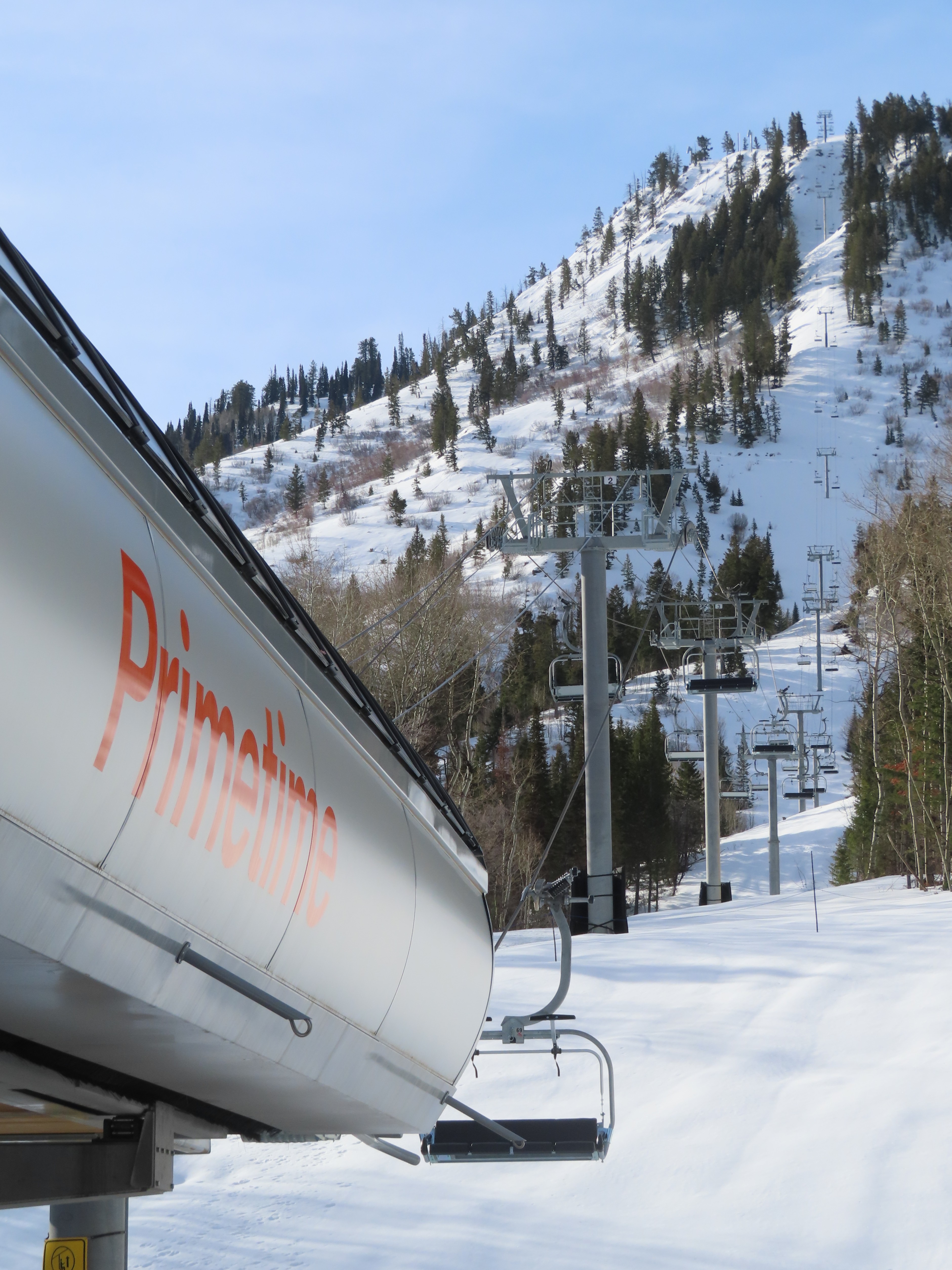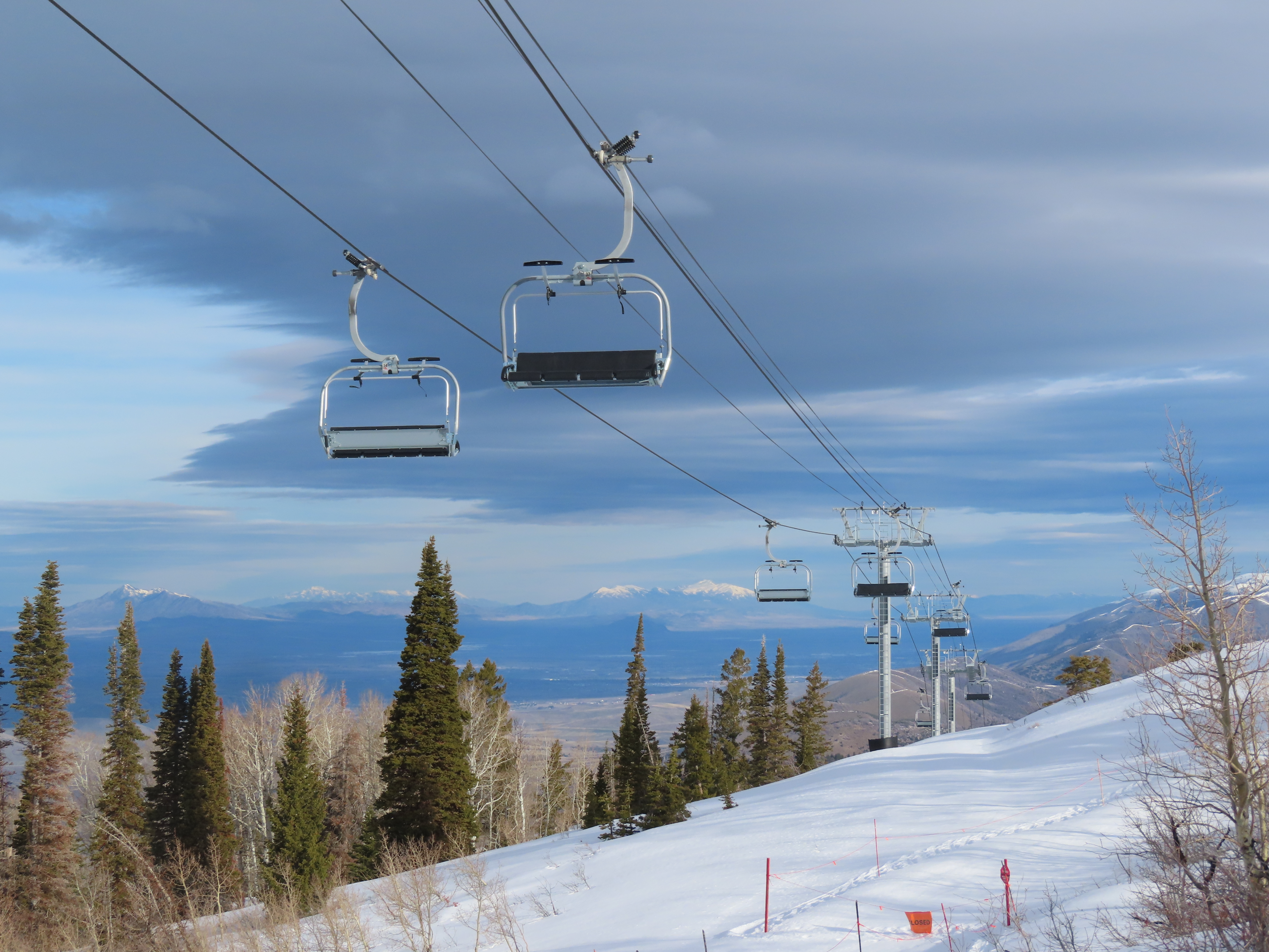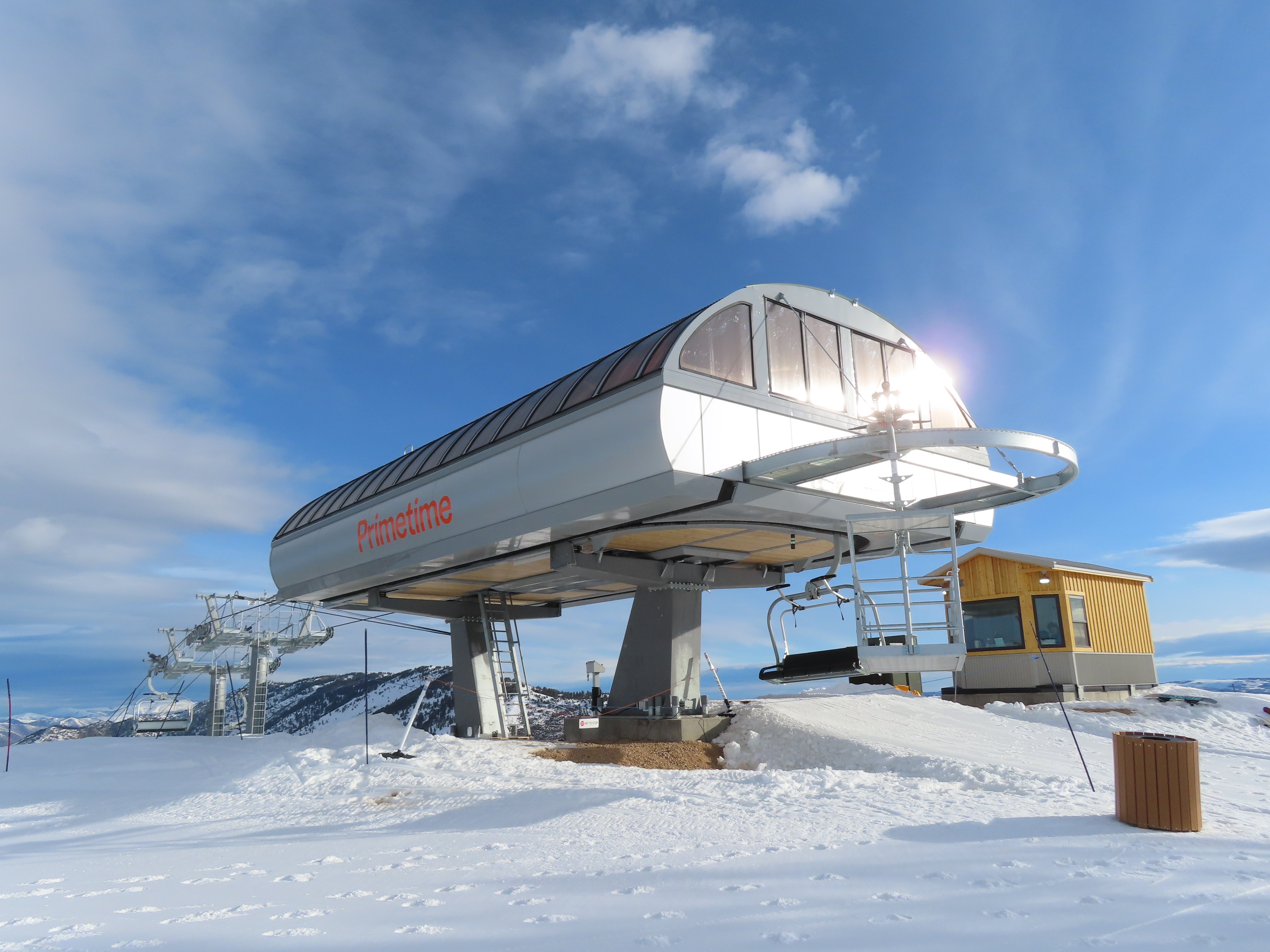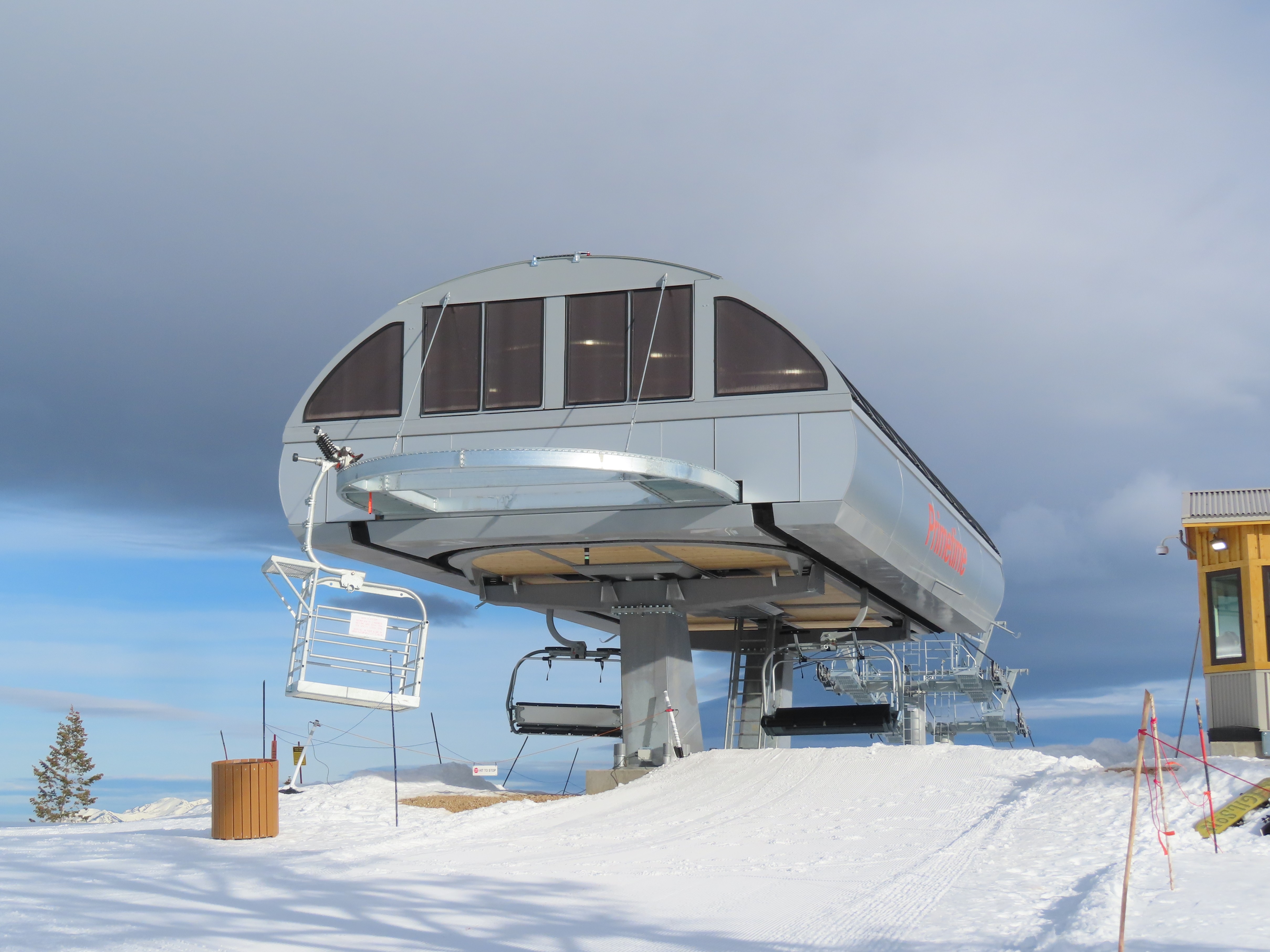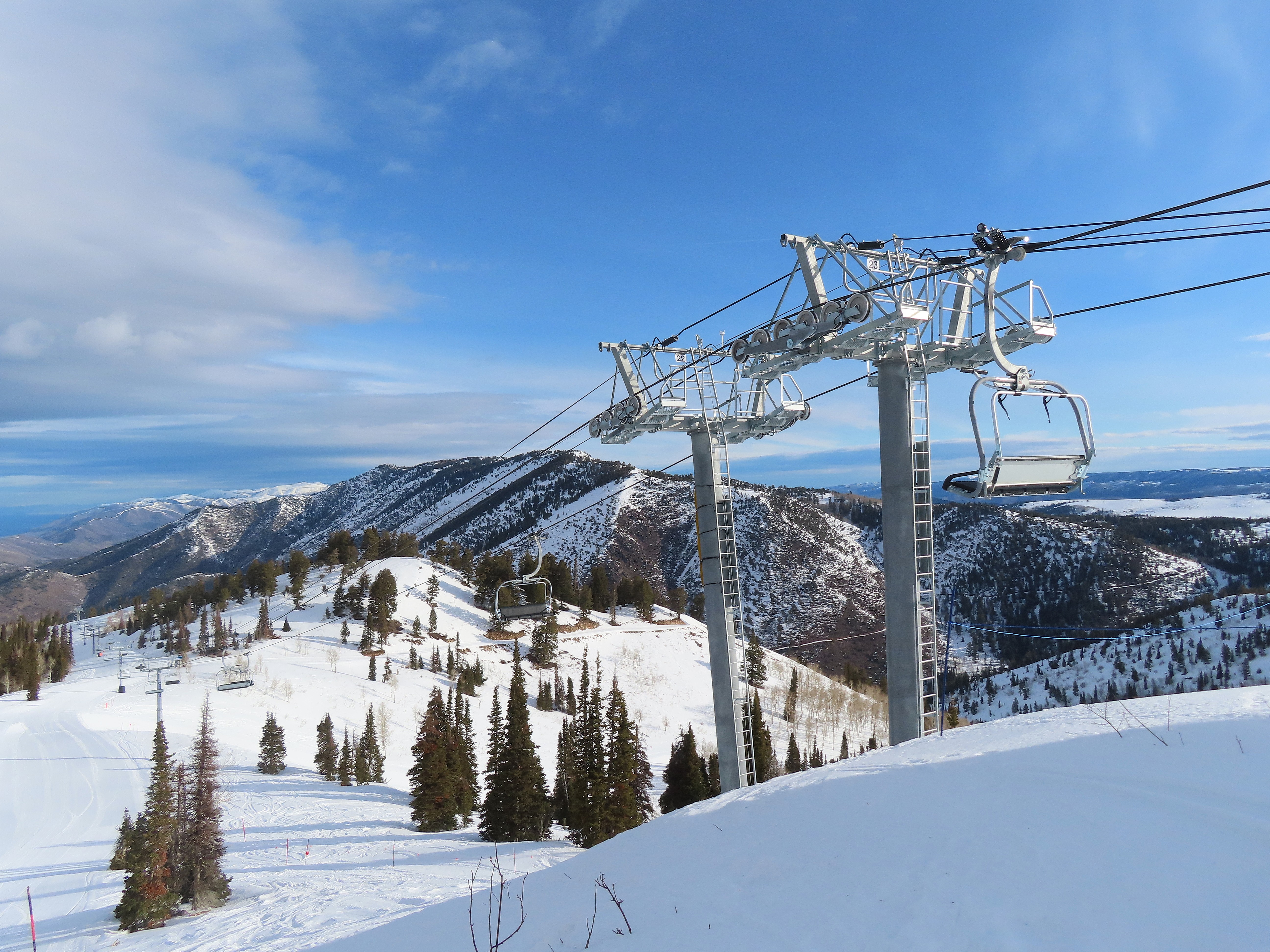 This Leitner-Poma detachable quad services a very large private skiing pod for homeowners.The top terminal sits next the private Raintree Skytrac, built one year prior.LPA station unloading area and maintenance rail.View from the summit.Side view of the top station.The upper part of the line is very low angle.Top terminal and final two towers.View up the line at tower 20.Tower 17 with combination assemblies.View up at T17.View down above the steep section of the line.The first few towers near Davenport Creek.View up the steep middle part of the line.Lower return station.Lift overview.At Powder Mountain, lifts with orange labels are private while lifts with blue labels are public.View up the steep lift line.Side view of the bottom station.