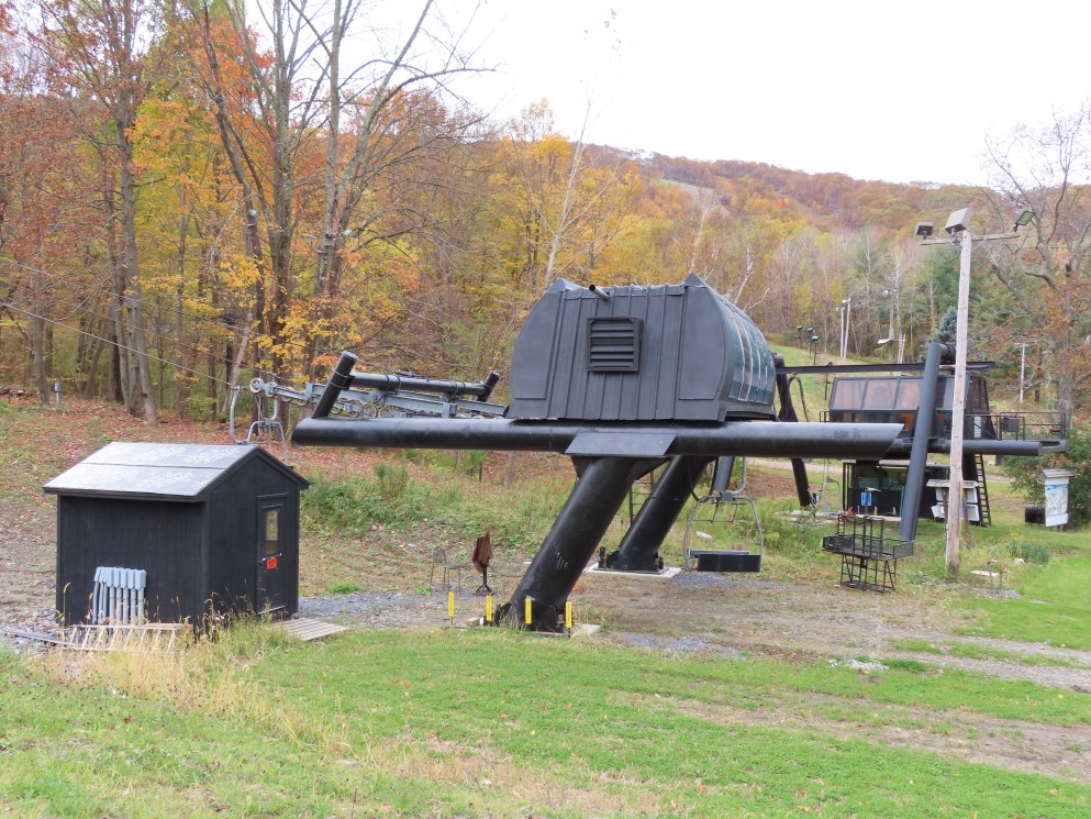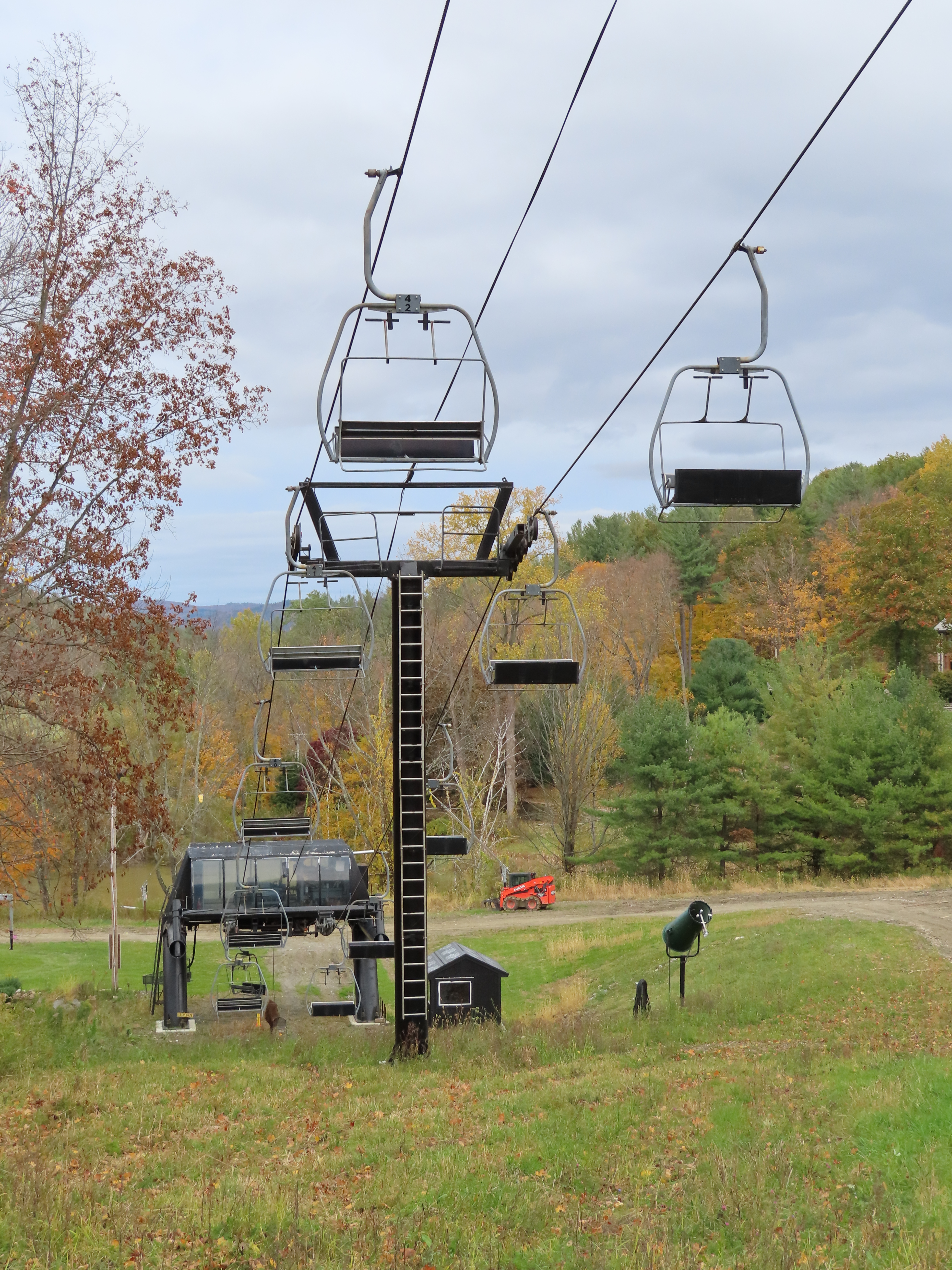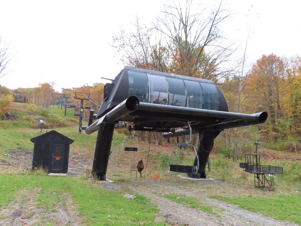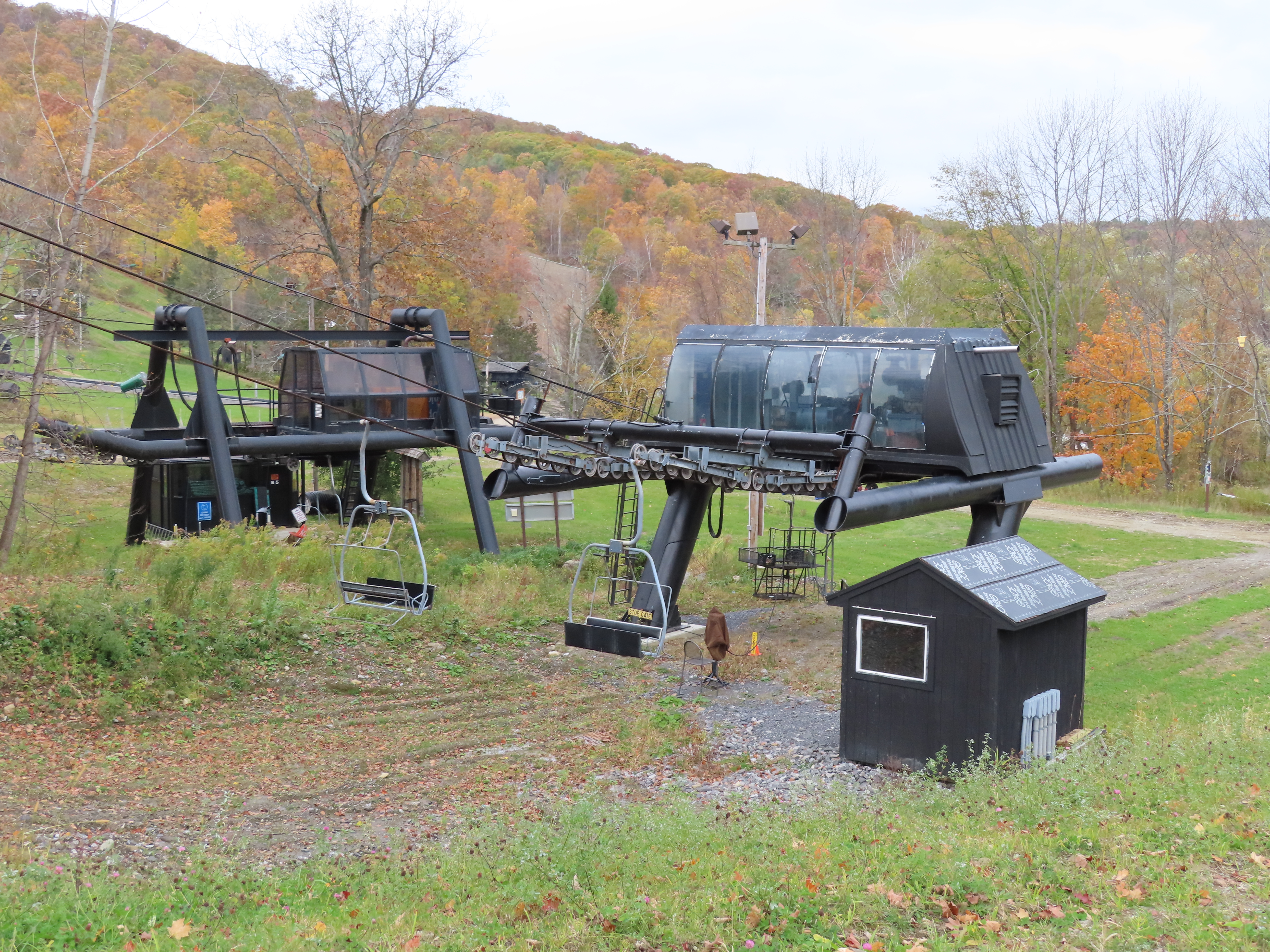 This lift has an interesting history. In 1986 it was scheduled to be installed as the Eclipse Triple at Tenney, NH. Work was stopped after lawsuits by both Tenney and Poma, and the lift was finished by Borvig in 1987. Then what was left of the Poma installation was sold to and installed at Magic Mountain, VT as the Sun Corner Triple, where the Green Chair runs today. When Magic was liquidated in 1995, the Sun Corner Triple was removed and went to Berkshire East where it was installed as the Summit Triple. Then it was replaced by a SkyTrac Quad in 2014 and sat in storage. It was thought that this lift would be reinstalled at Berkshire East as part of its North Face Expansion, but that changed in May of 2018 when the owners of Berkshire East acquired Catamount and proceeded to install this lift here before the 2018-19 season.