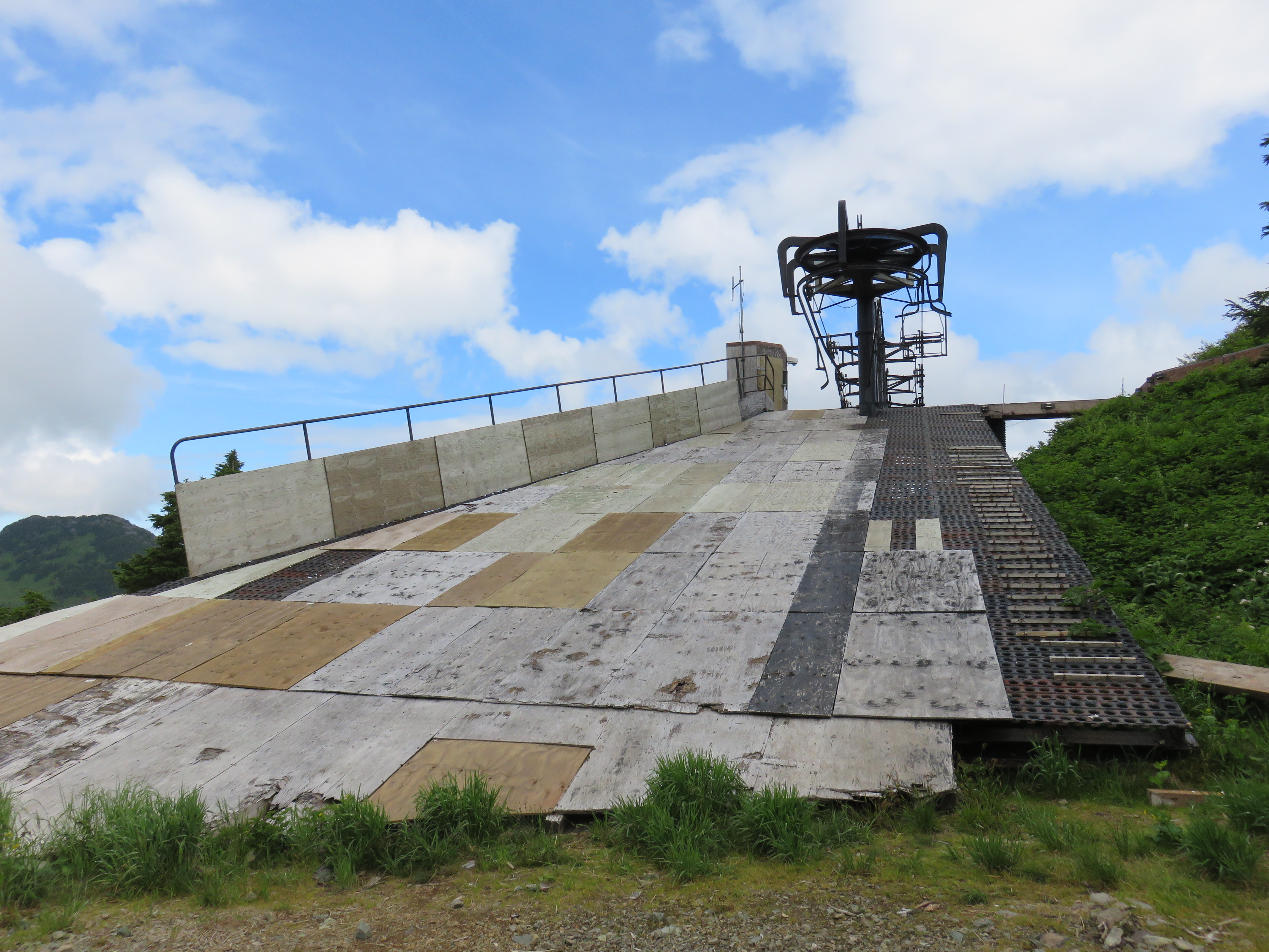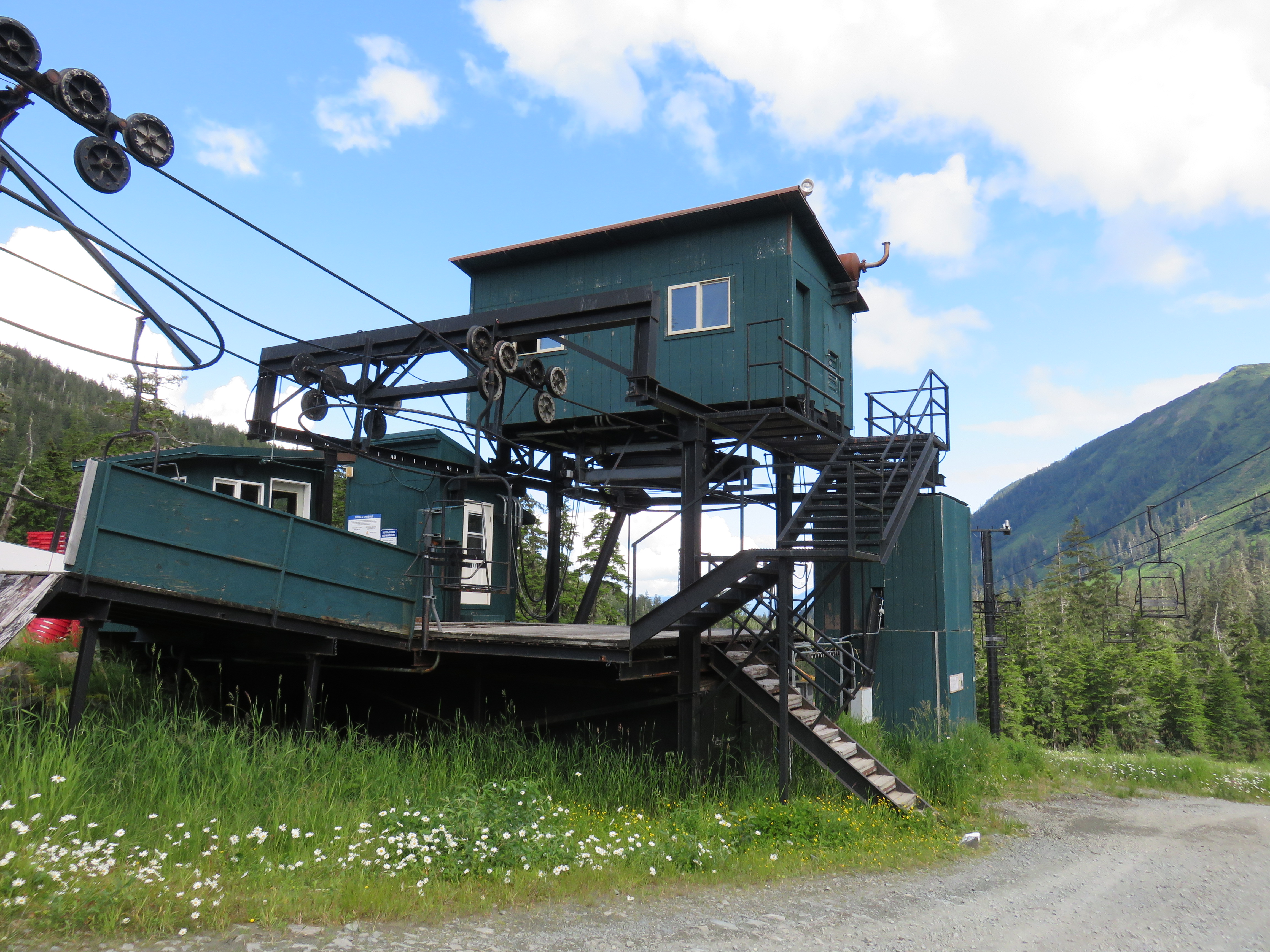 Alaska-sized unloading ramp.Side view of the top bullwheel.View down the line.Breakover towers.Another view from the summit.Lift line.Riblet drive station.Base terminal.
