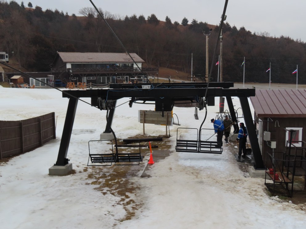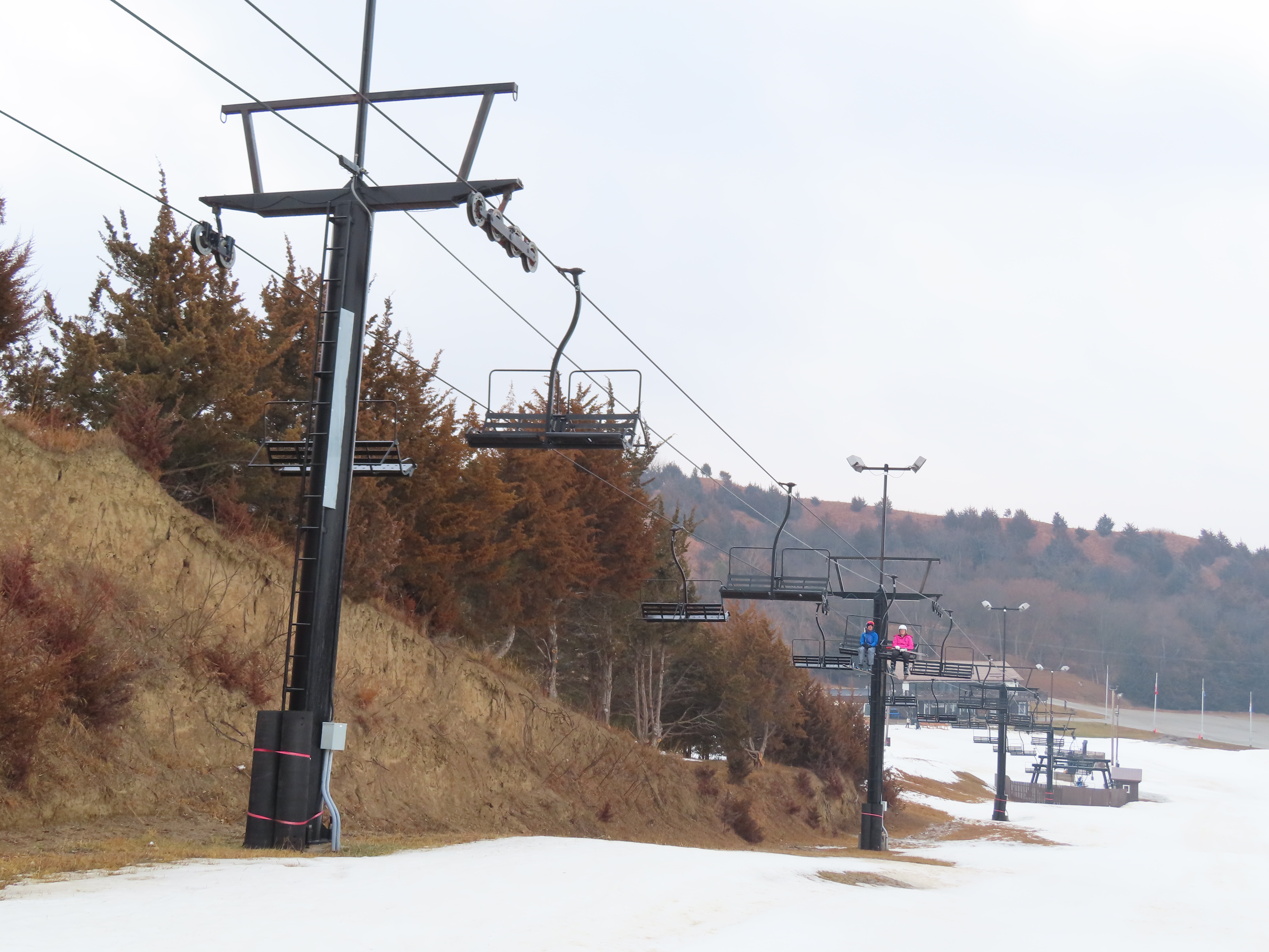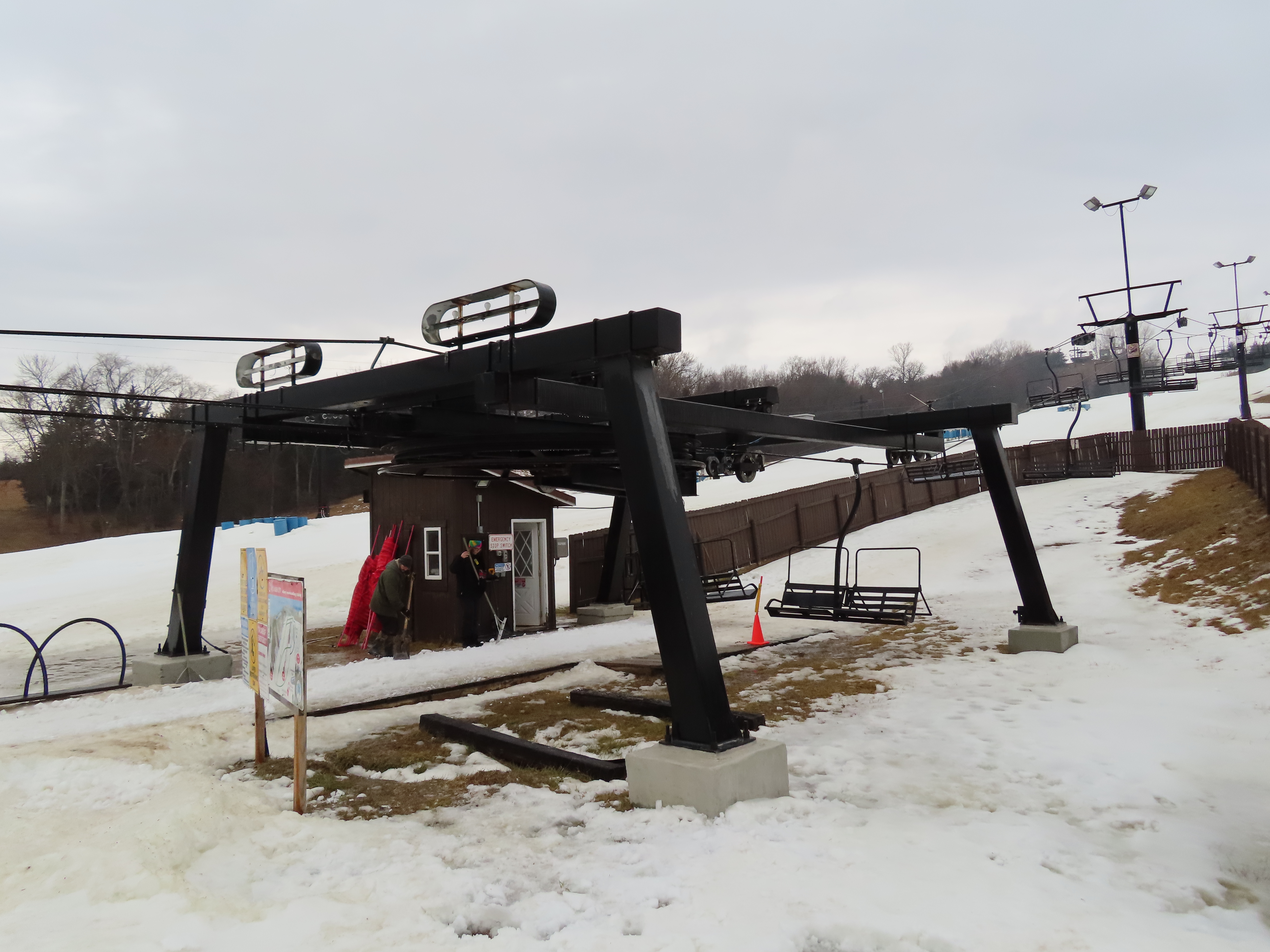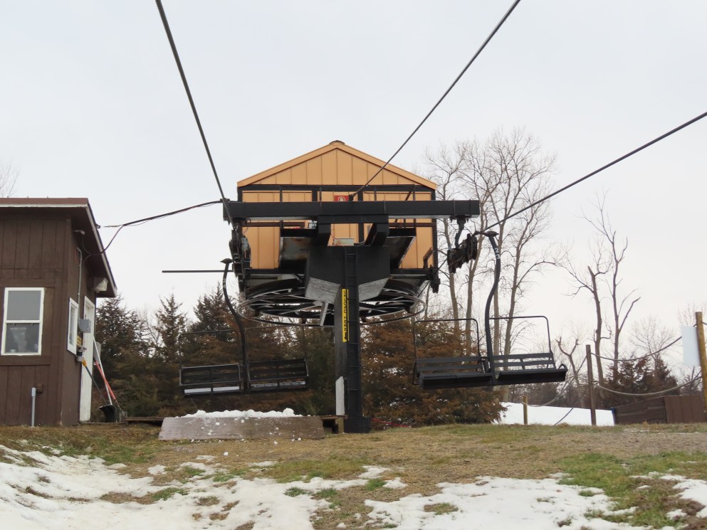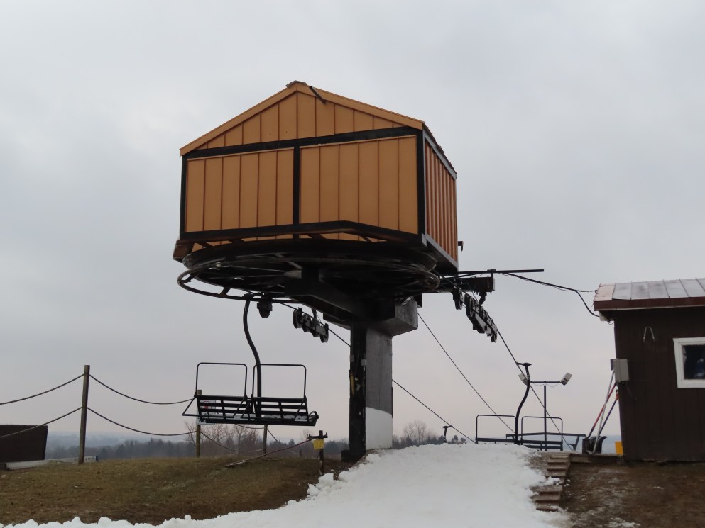 Based on the timing of installation and the availability of center-pole Borvig quads, this is likely one of the two quads originally installed at Riverview Highlands, MI, which shut down in 1995.