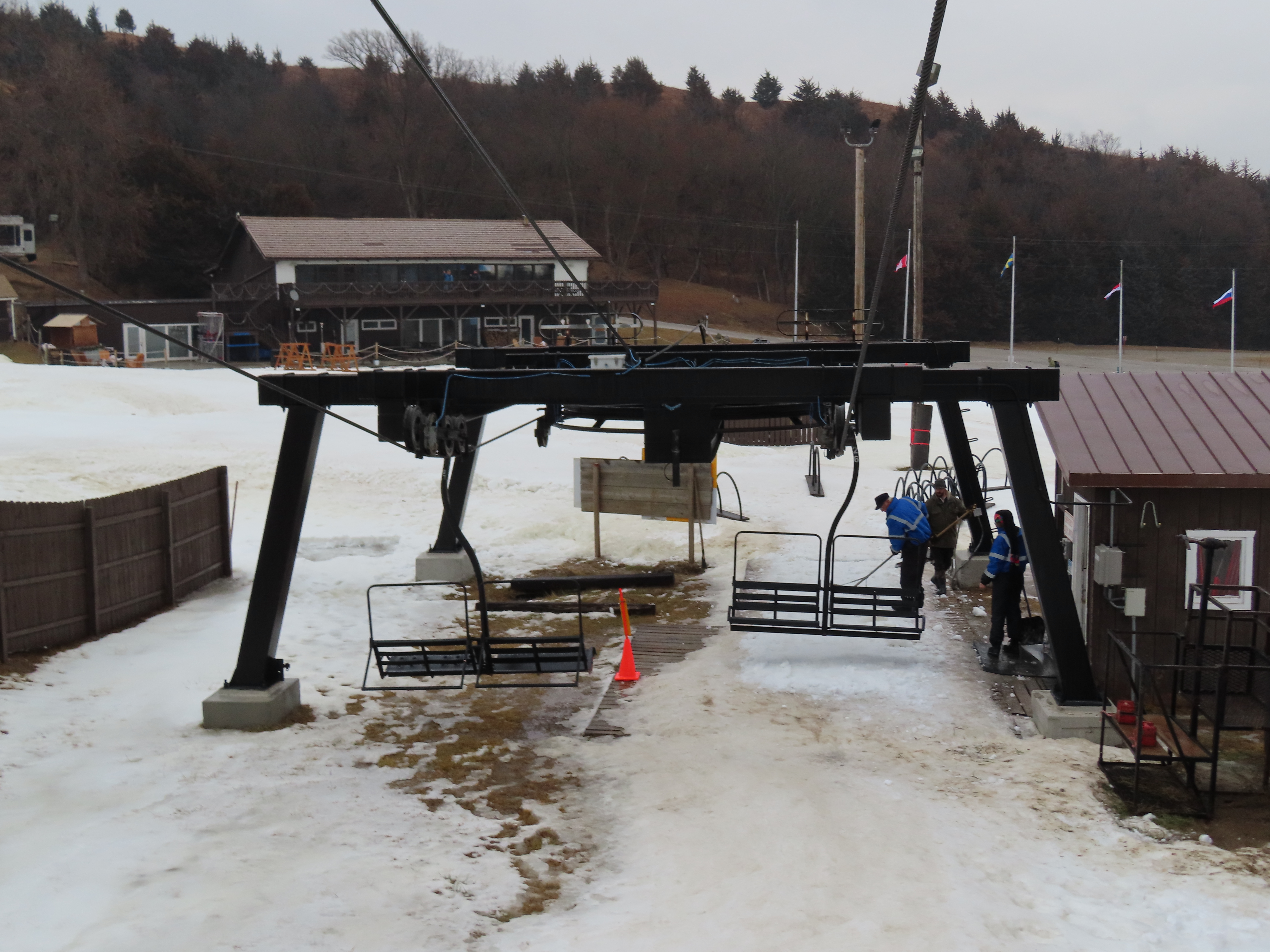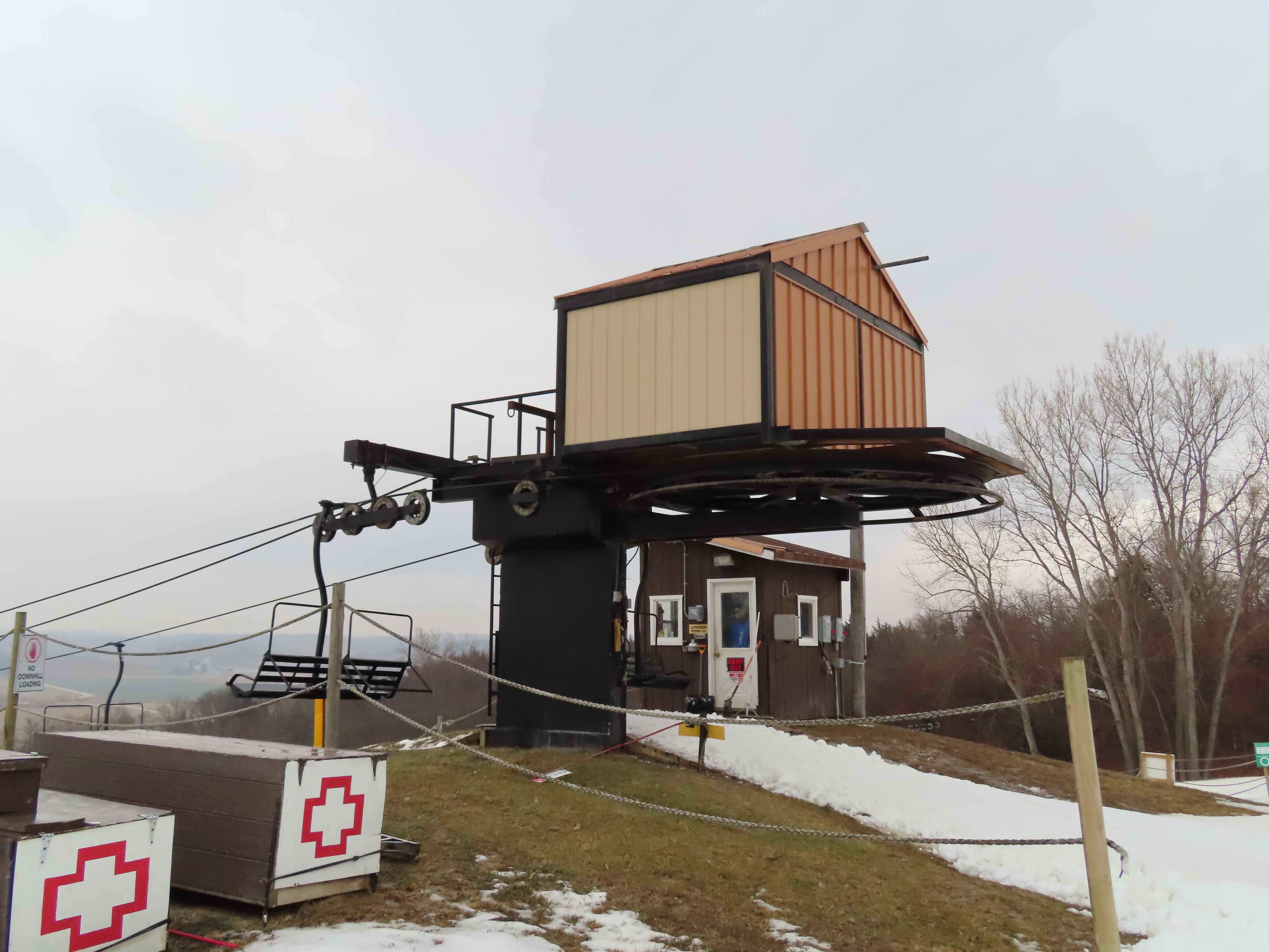 This lift replaced a Poma platter and Hall T-Bar in 1997.Borvig return station.Loading area.Arriving at the drive station.Unloading area.Side view of the top station.Upper half of the lift line.Lower lift line.Almost the entire lift seen from above.