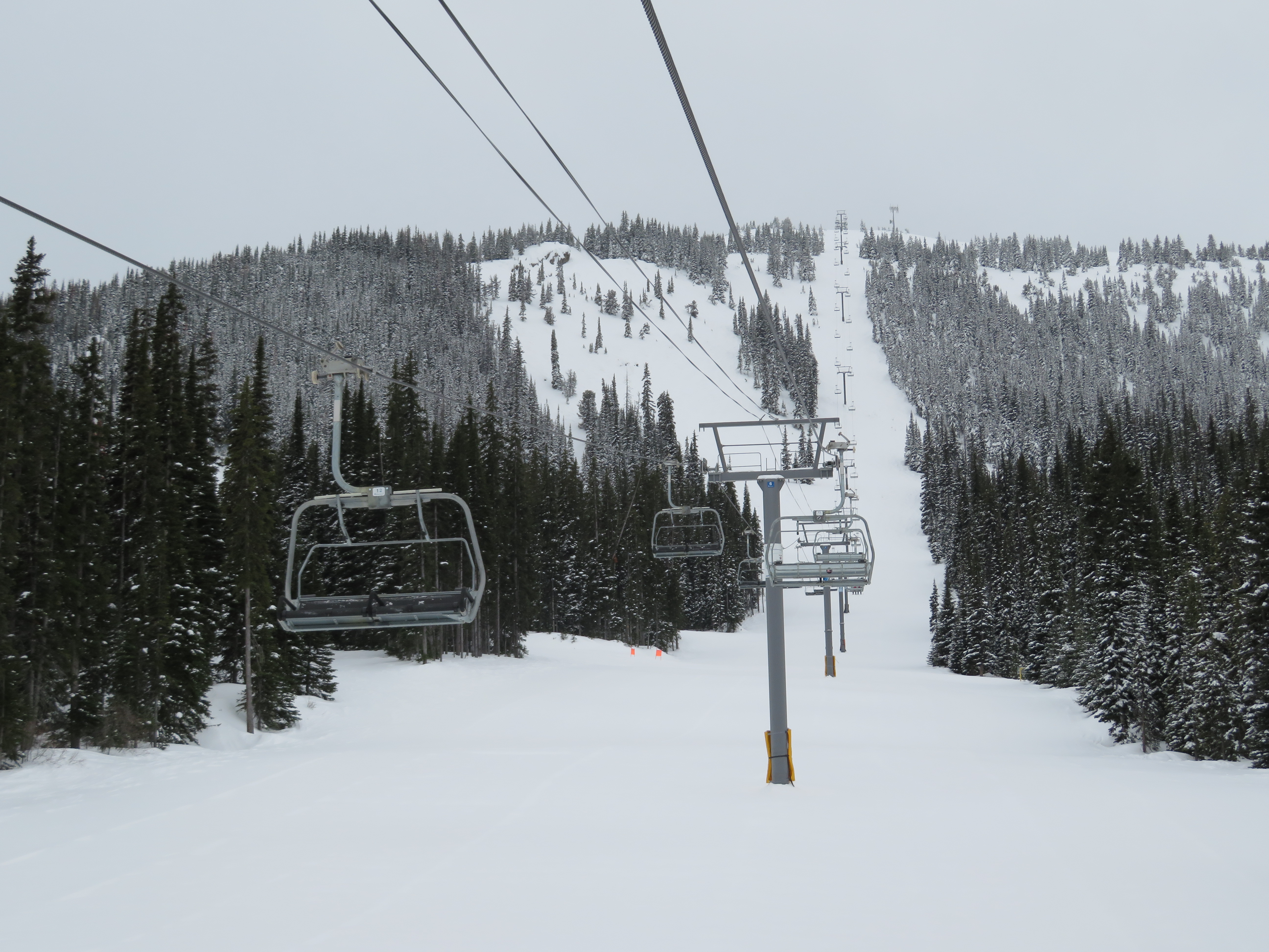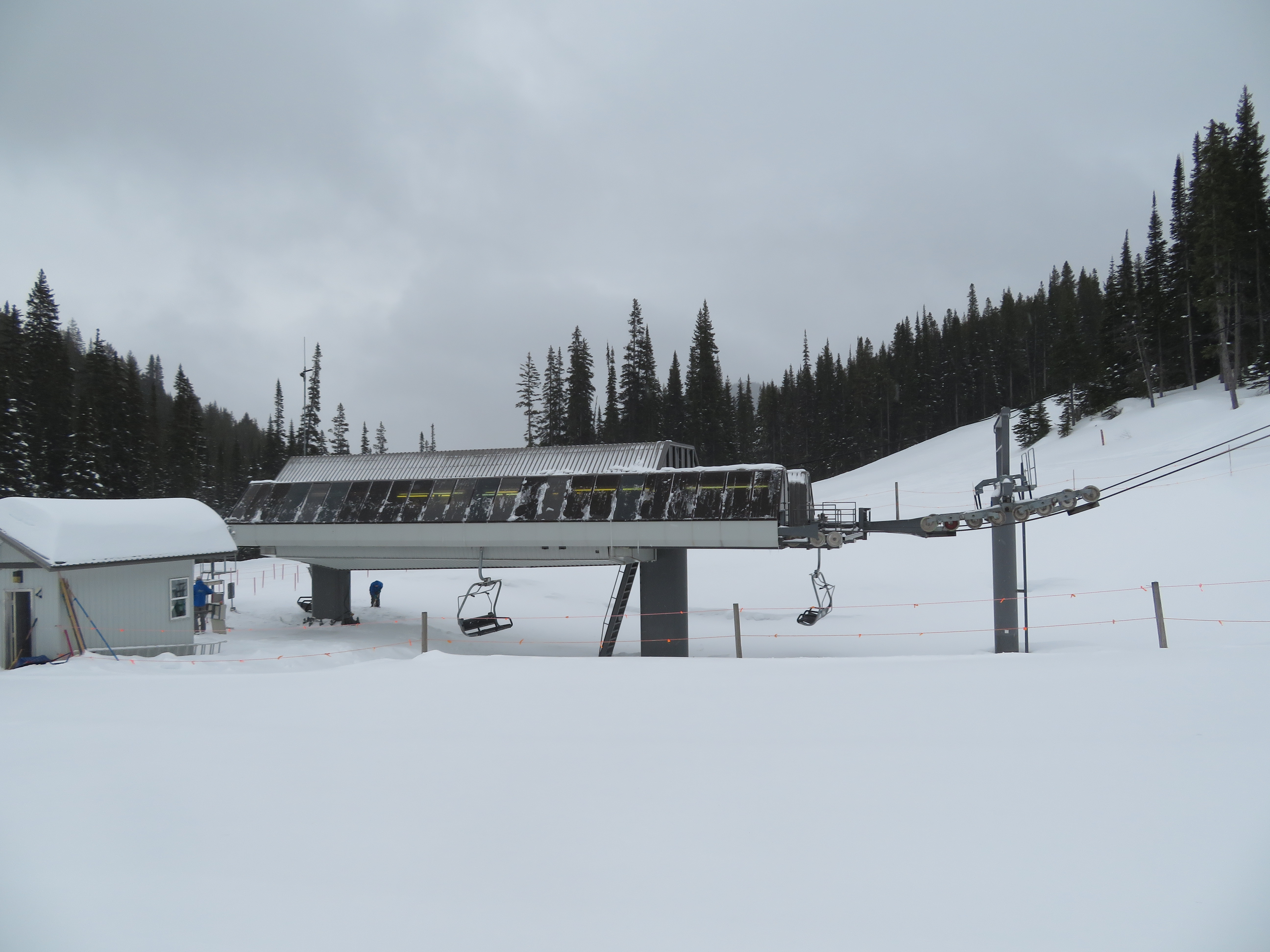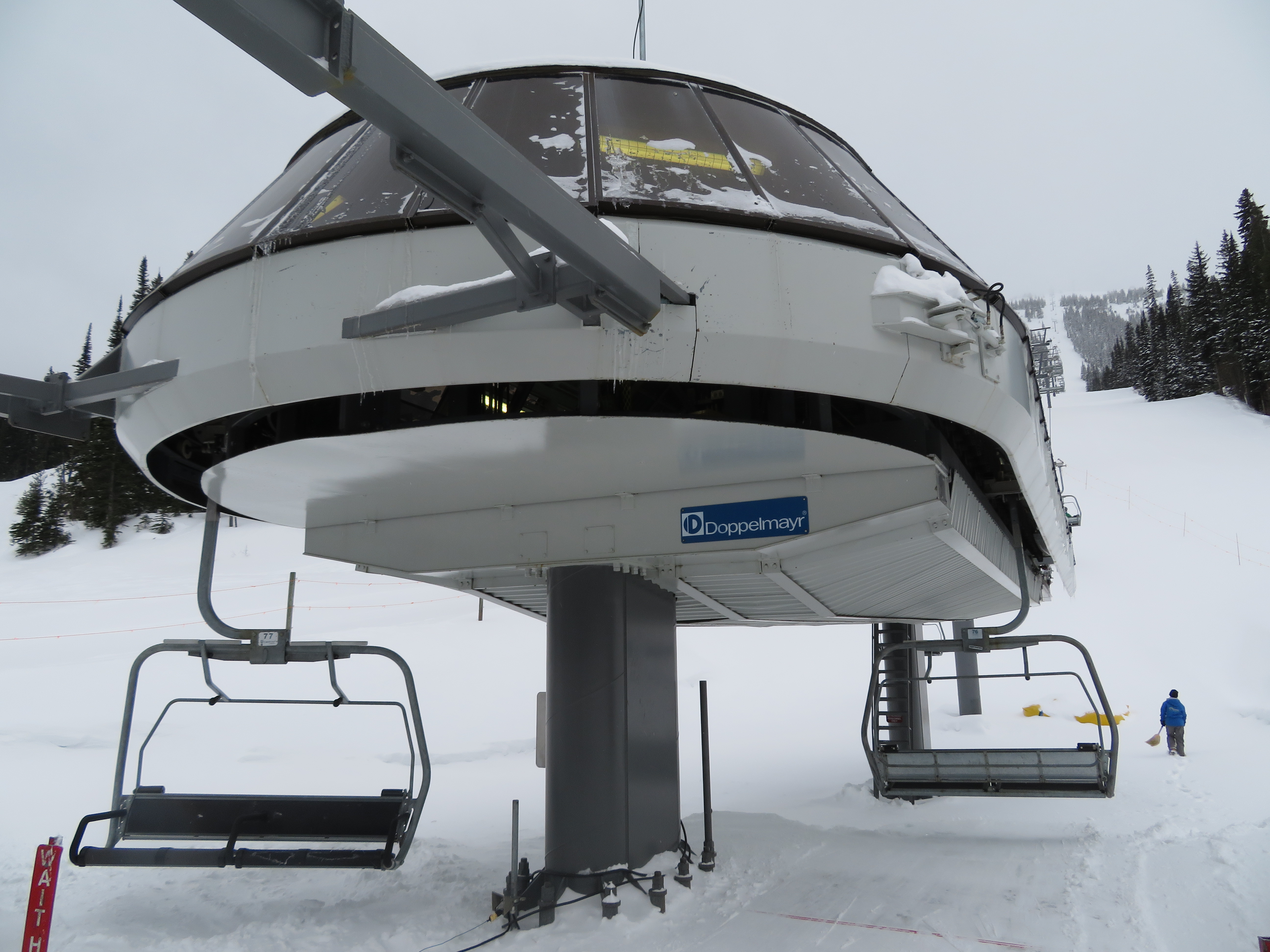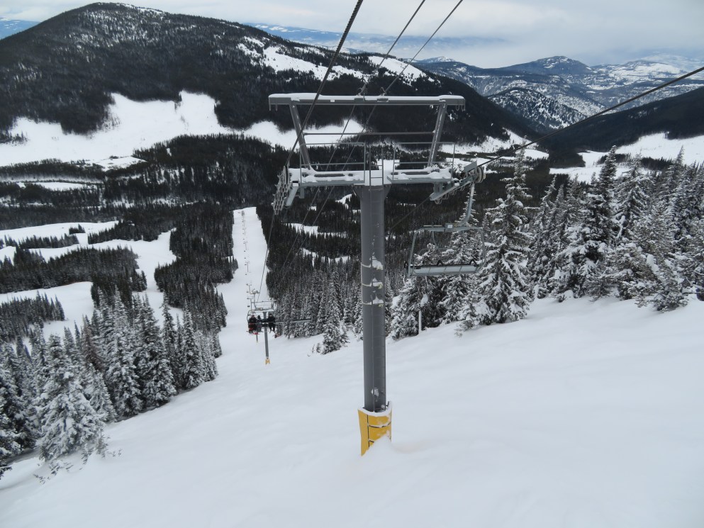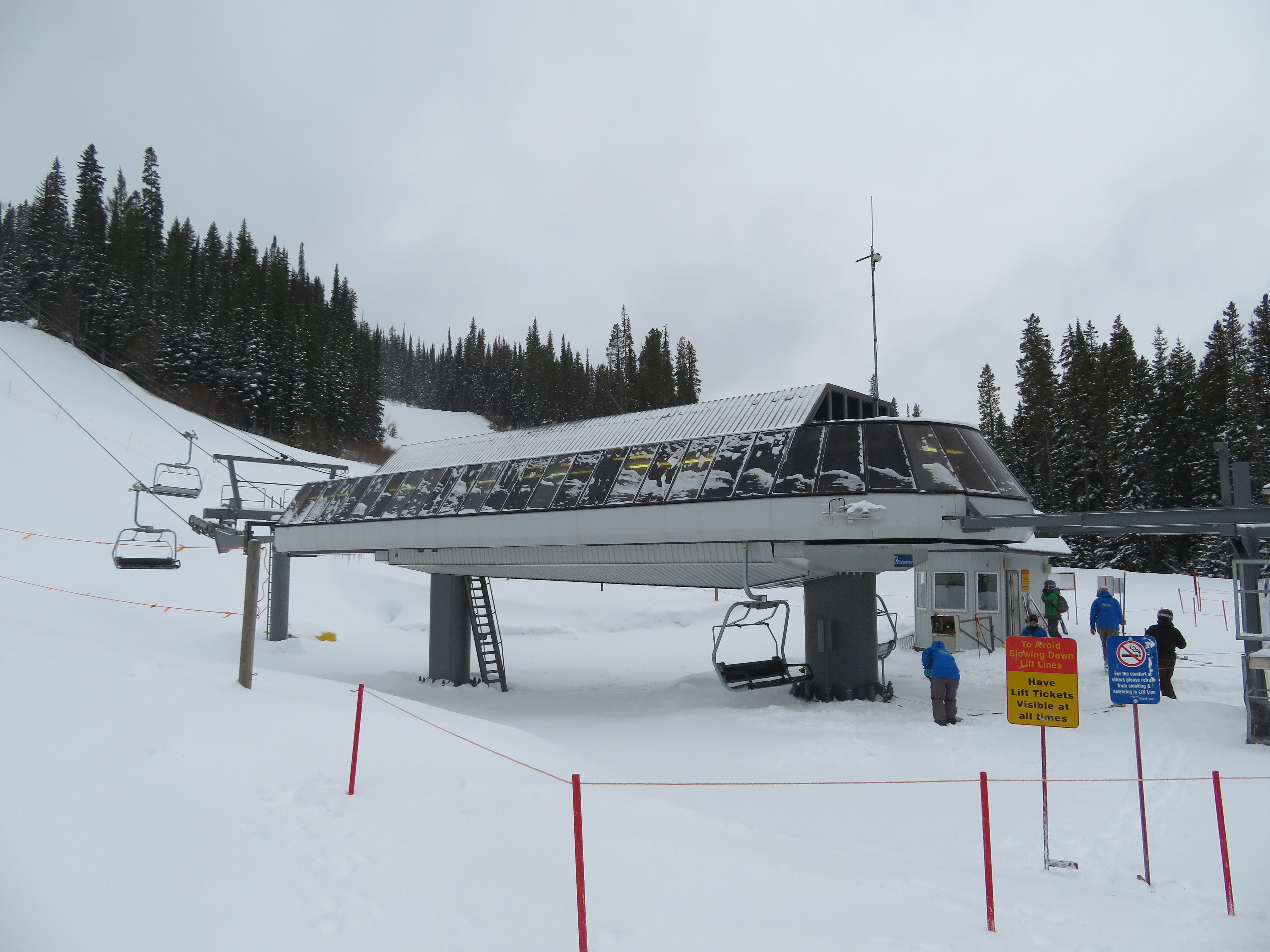 The Quickdraw lift services nearly all of Apex’s terrain and opened in 1994.The bottom terminal with a parking and maintenance rail.Side view of the lower station with tensioning.Loading area and early model Uni terminal.Riding up the line.View back down the lift line.Arriving at the drive station up top.Lift line overview.Middle section of the line.Tower 4.Another look at the line.Side view of the top terminal.Departure side at the drive station.