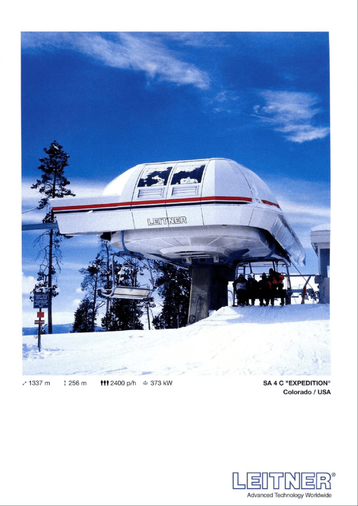 The middle portion of the lift line.Near the top set up for bike operations.View down from the summit.Single-leg drive station.Leitner detachable controls.Murray-Latta bike carriers.Drive station from below.Loading area.Depression tower 1.Leitner “pancake” return station.Return arrival side.Lift line view from the base lodge.Leitner Report entry.