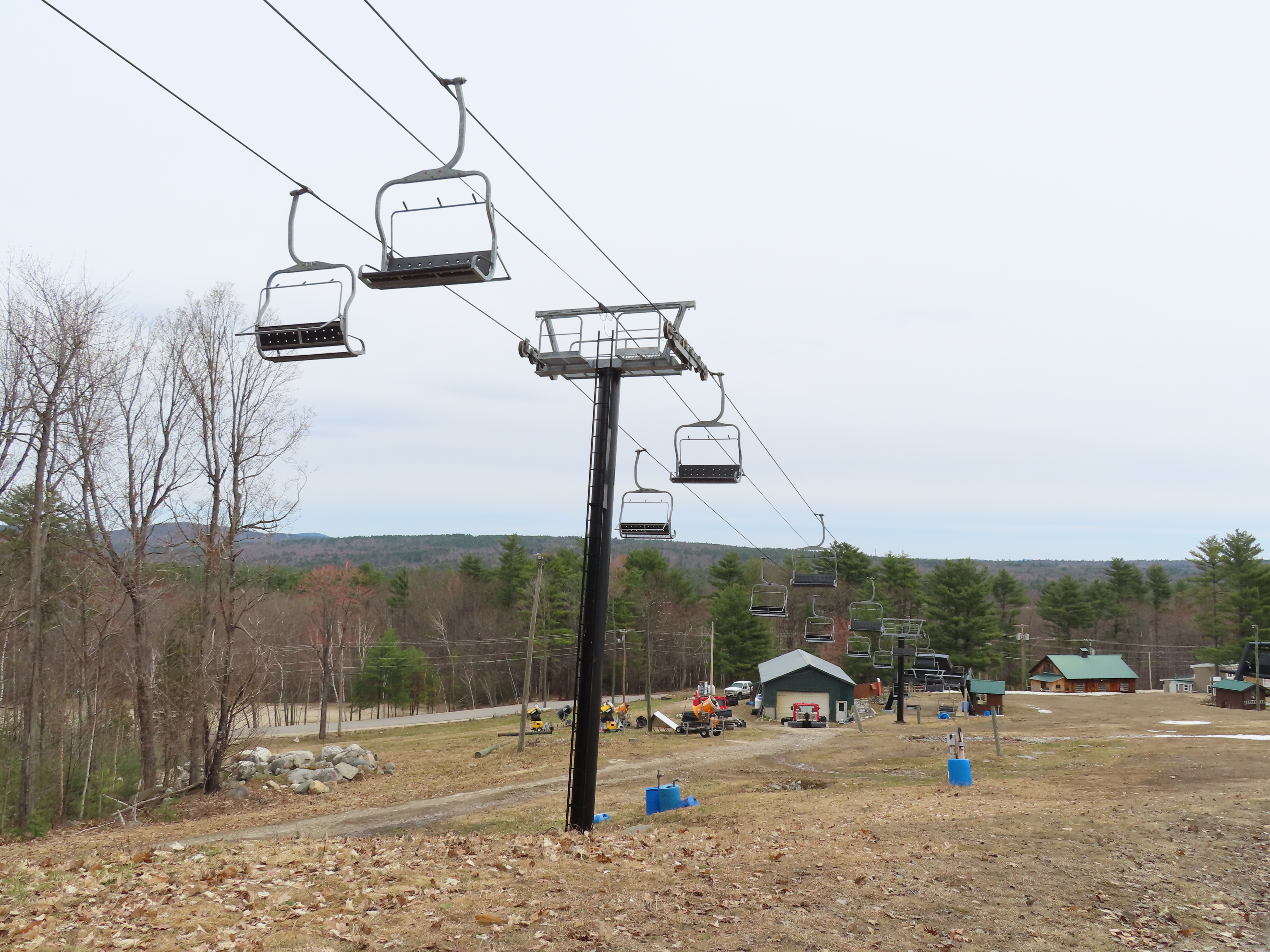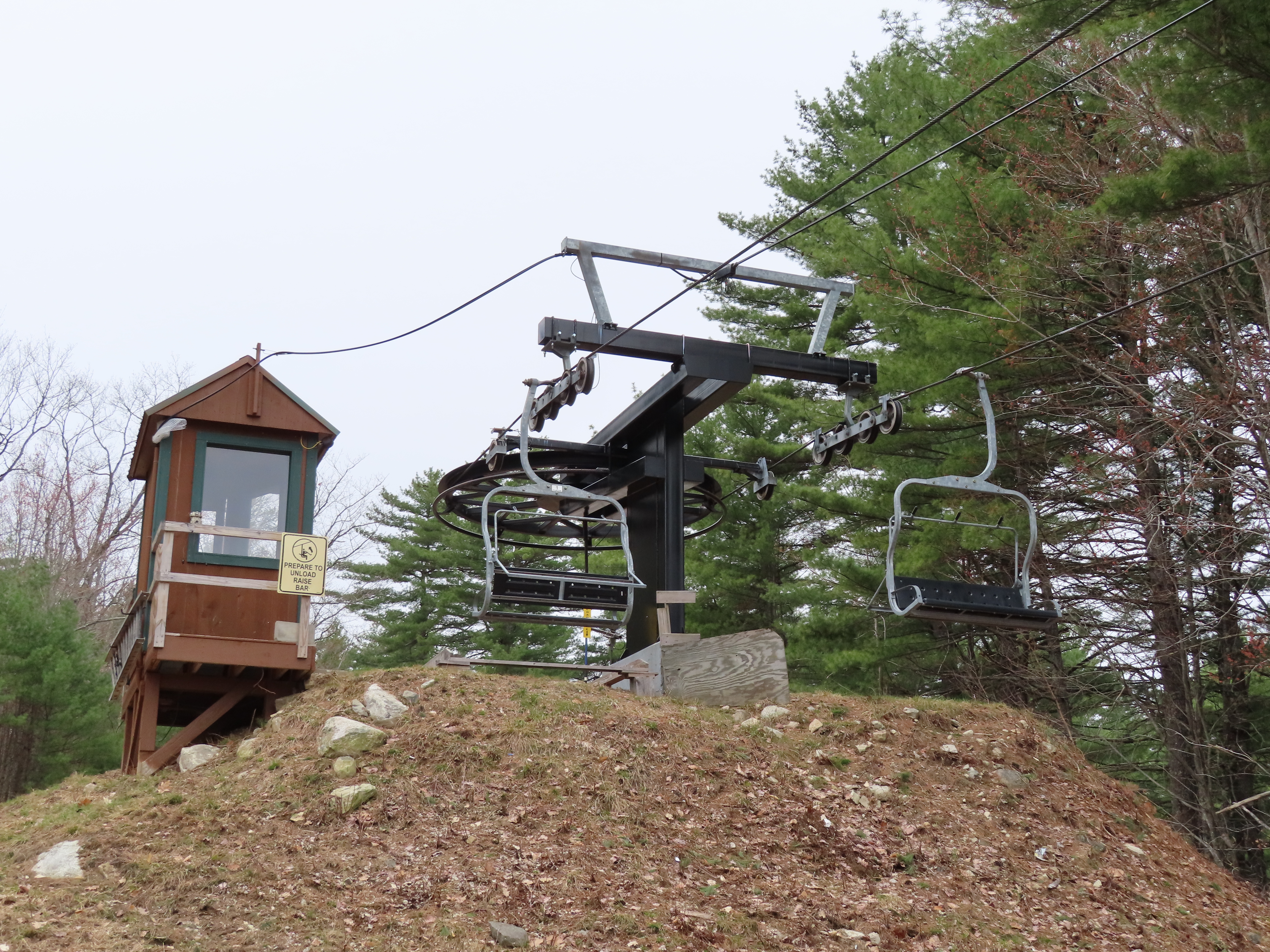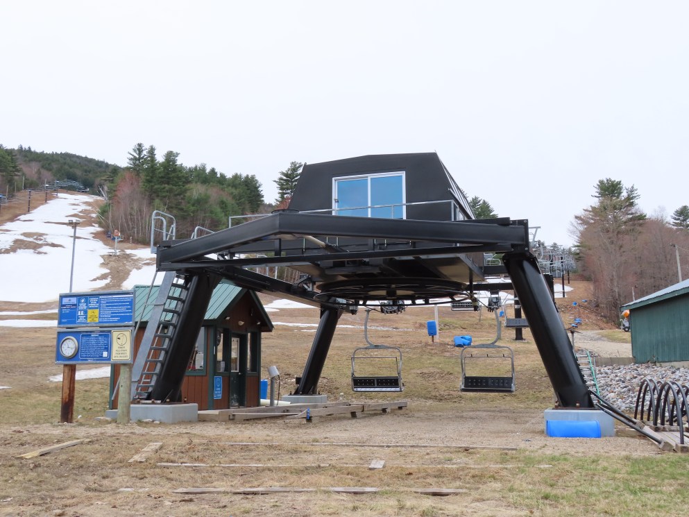 Partek replaced a Borvig double with this triple in 2014.The line is short with only four towers.Upper half of the lift line.A Partek tower with catwalks and lifting frame.T4.Fixed bullwheel up top.Lift overview.Unloading area.Tower 1 and the drive station.Loading area.