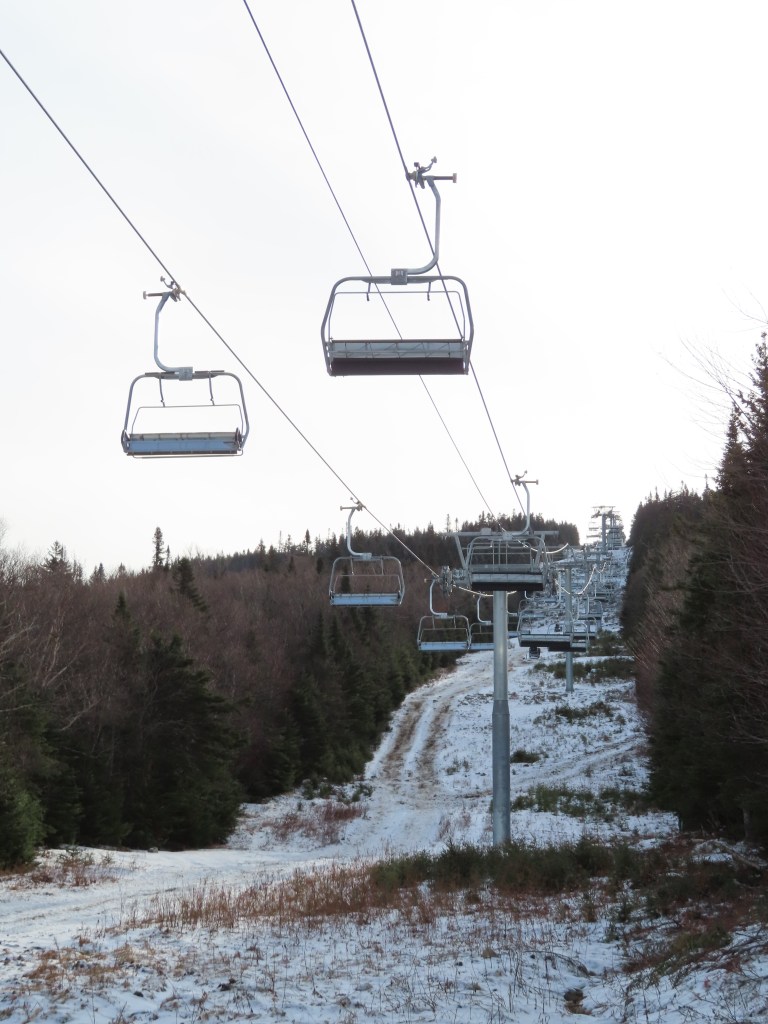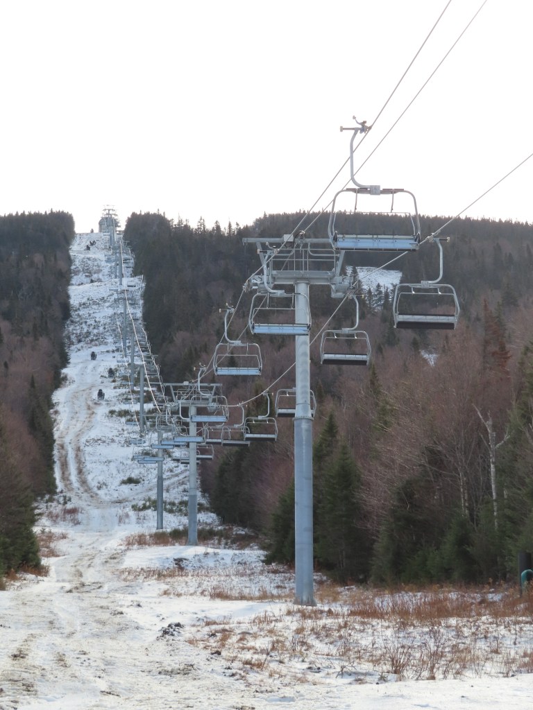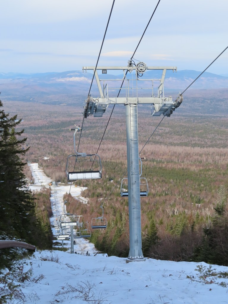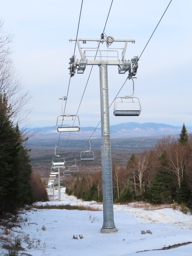 Tower 1 for the new Rangeley lift, which replaced a Mueller double upon the mountain’s reopening.Loading area and short maintenance rail.Side view of the Uni-G-M base terminal.Lower station area with RFID gates.Looking up the lift line.The base area.View up at tower 5.Middle part of the lift line.Tower 7.T8.The bottom terminal is near the top of South Branch.The return terminal.Top station with a view of Rangeley Lake.Unloading area.Uni-G station and Doppelmayr operator house.Side view of the top terminal.Another view of the upper station.View down near the top.The lift alignment.Doppelmayr EJ chair with DT-104 grip.Tower 11.Upper part of the lift line.Controls in the motor room.Inside the terminal.Motor and two diesel engines.The lower station.