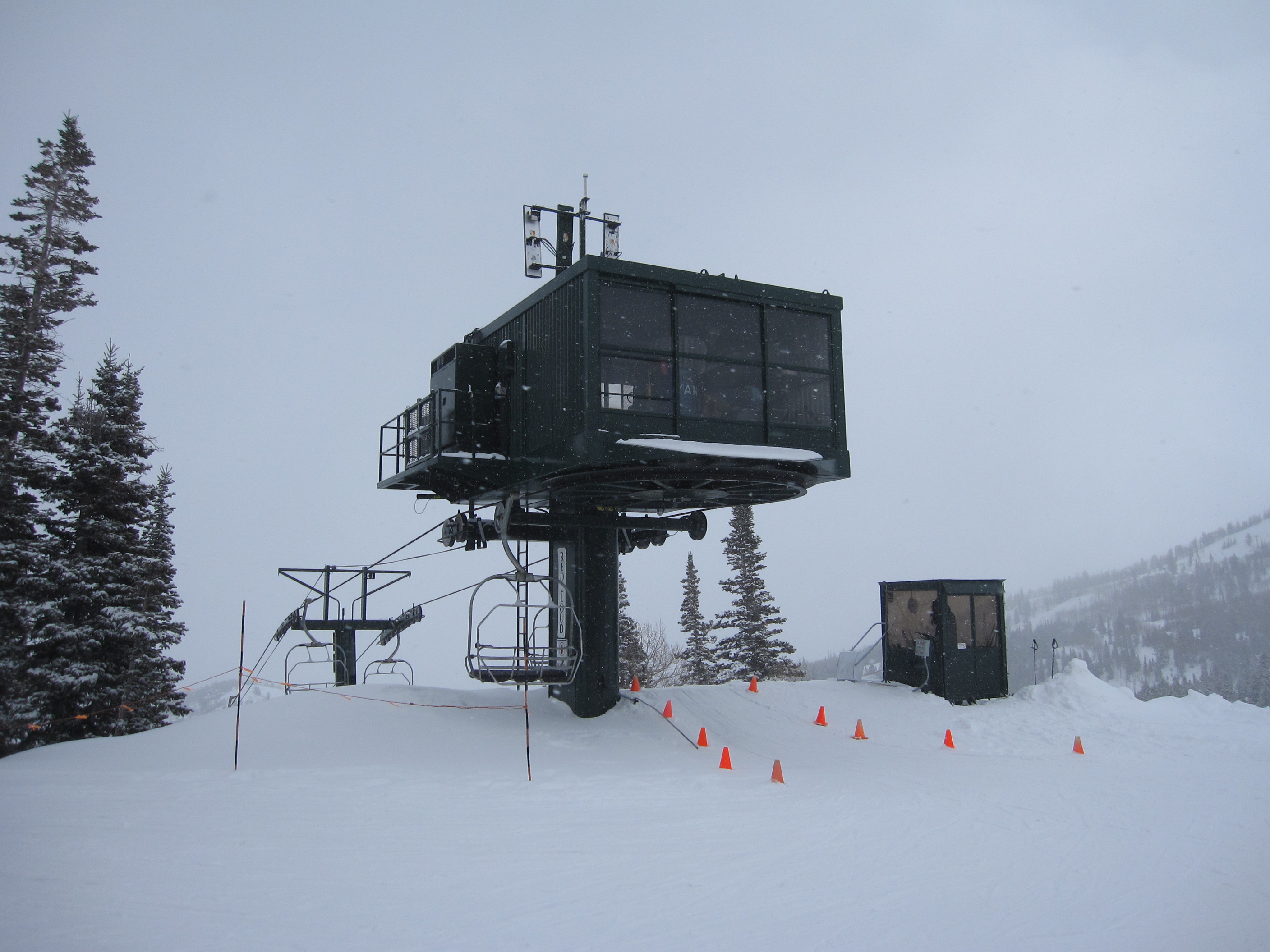This has an enclosure around the bottom terminal that I haven’t seen anywhere else (except Quincy when it was a triple chair next door, later removed at The Canyons). Looks like it’s meant to match Viking next door and the high speed quads.