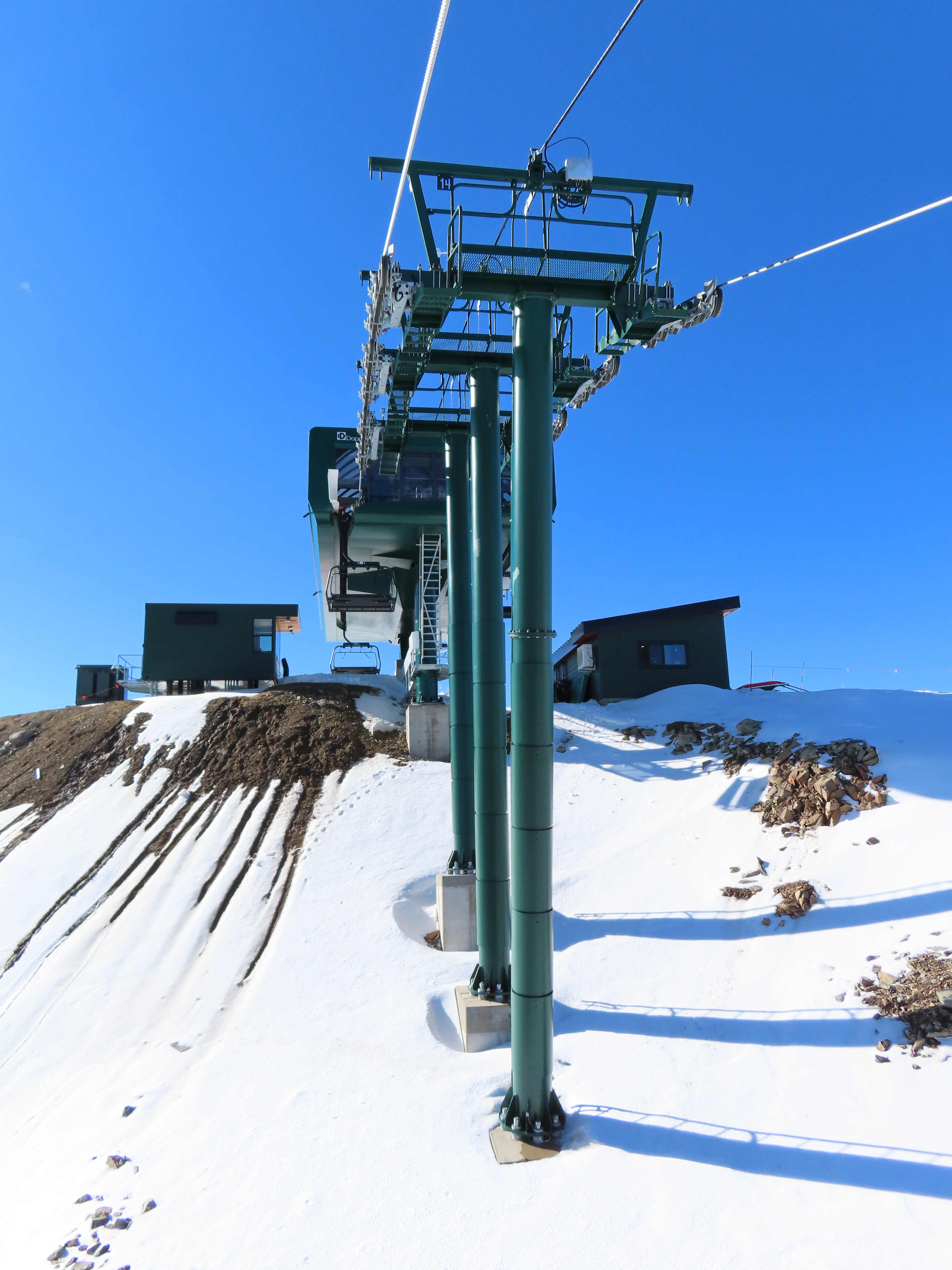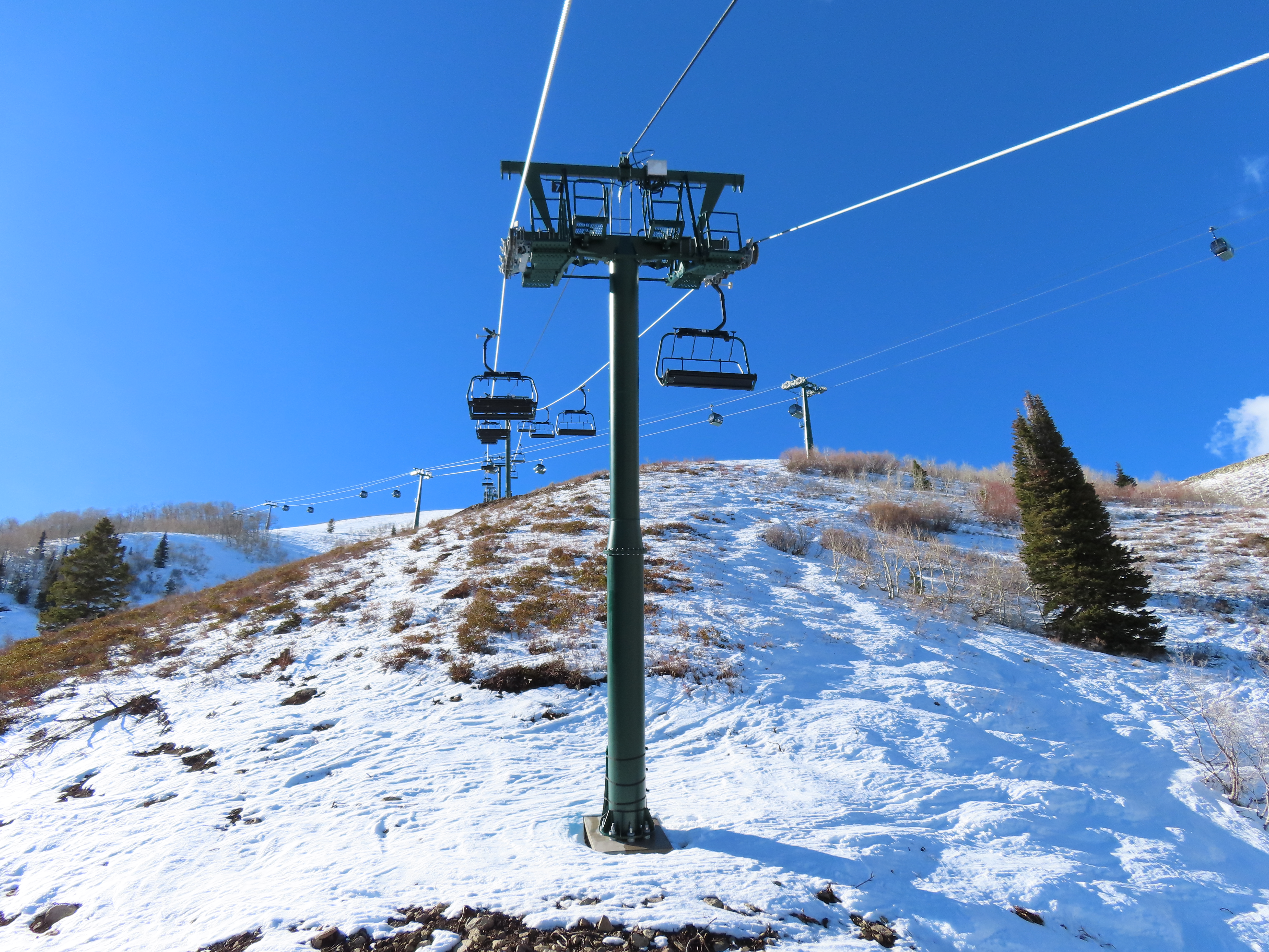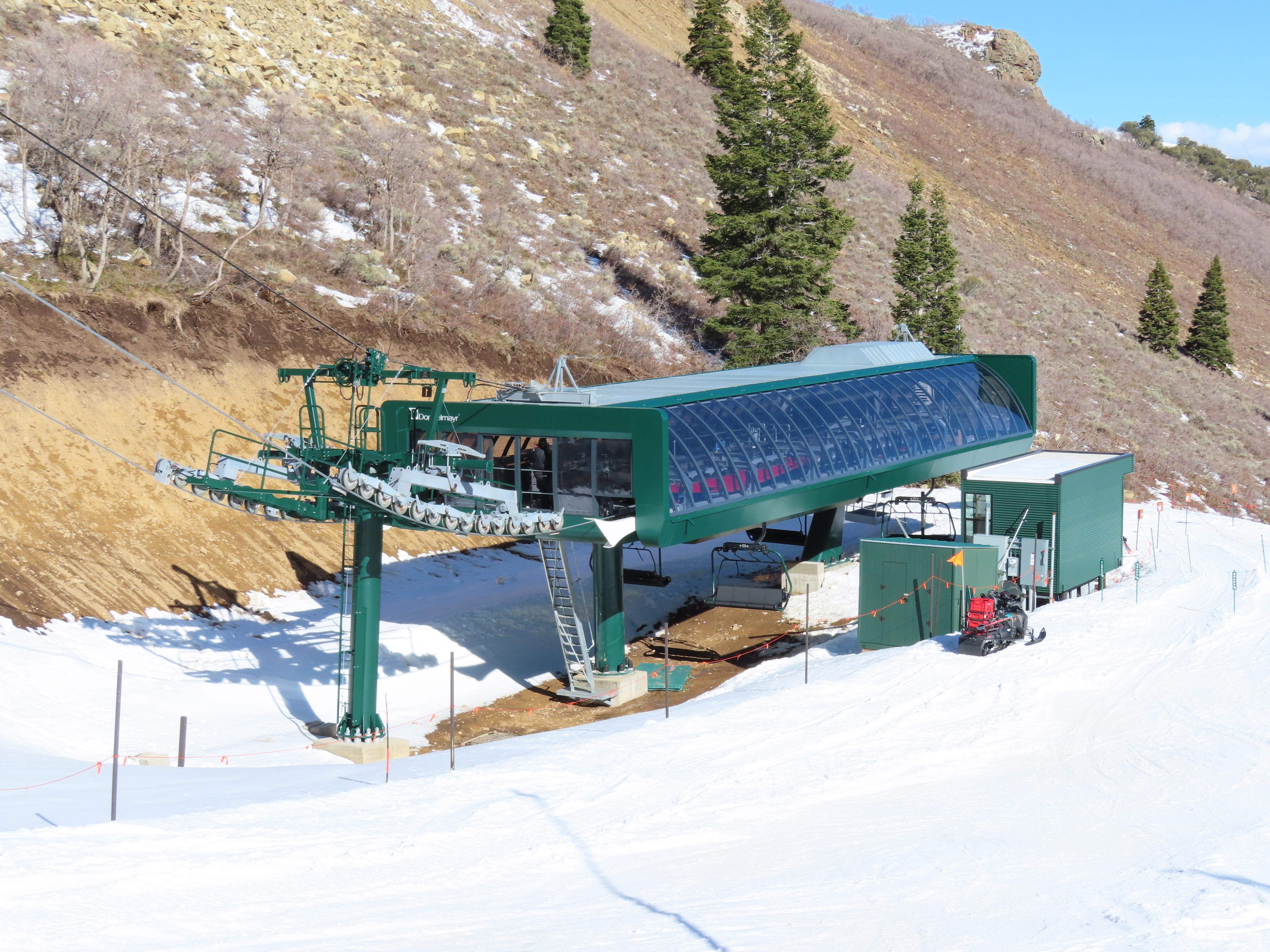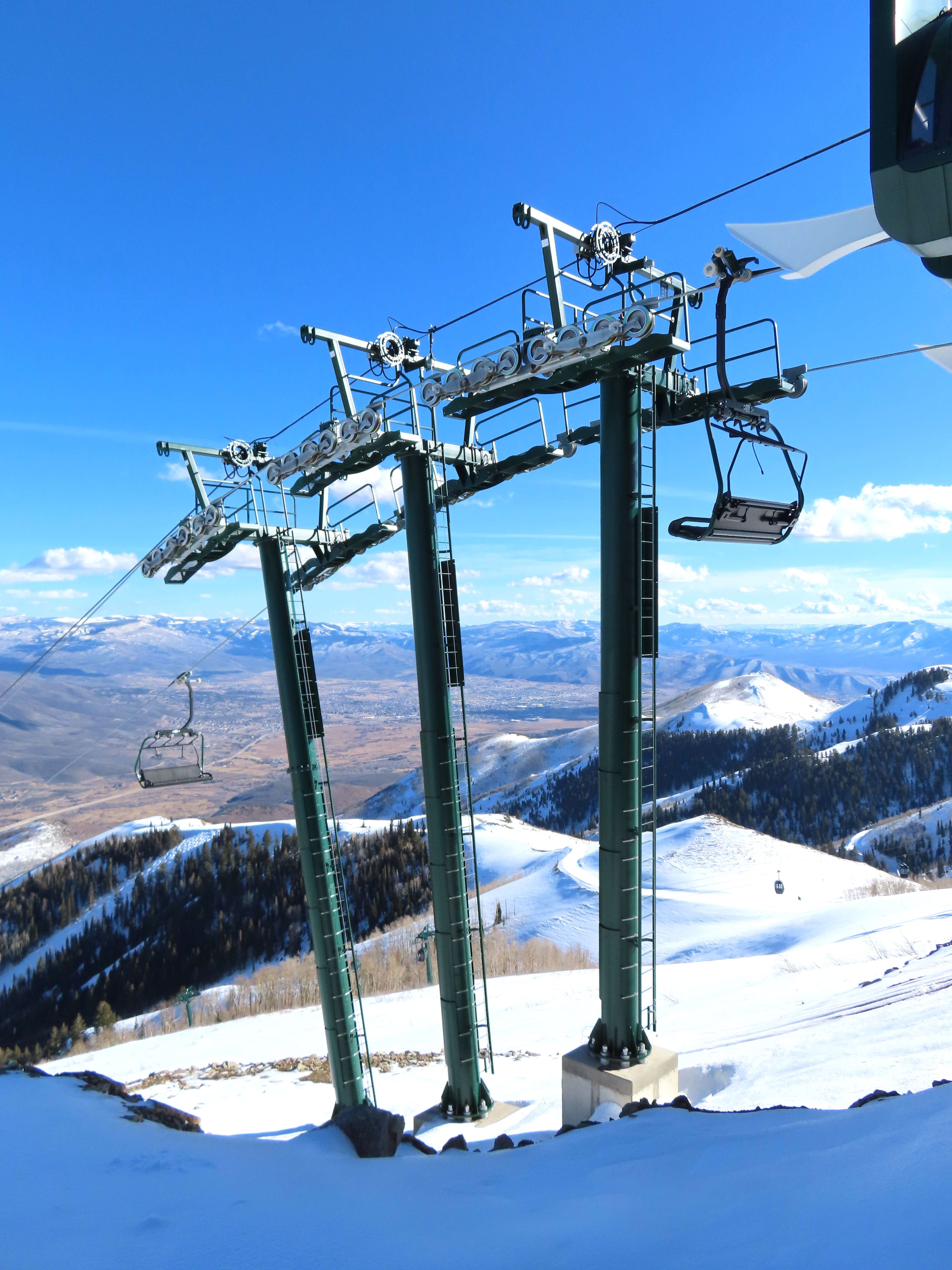 This lift serves the upper half of what was originally planned as one very long lift up the gut of Park Peak.Near the top, Revelator passes underneath the East Village Gondola section II.Lower station and tower 1 along the Catch All trail.View up the line near the bottom terminal.UNI-G station designed to mimic a D-Line.American style tower head.View riding up at tower 7.Looking back down the lower line.Tower 8.Crossing under the gondola at tower 10.View back down.Nearing the summit.Big breakover with three towers.Arriving at the drive.Unloading area on Park Peak.View toward Redemption Ridge.The entire lift seen from behind.Loading area.Riding out of the canyon.Doppelmayr Connect control system at the drive.View from the top terminal.Another view from the motor room.ABB electric motor.Due to its location, this lift incorporates both standby and evacuation engines.Controls in the station.Grip detach rail.View from the summit toward Big Dutch and Jordanelle.Side view of the drive station and breakover.Upper terminal seen from Redemption.