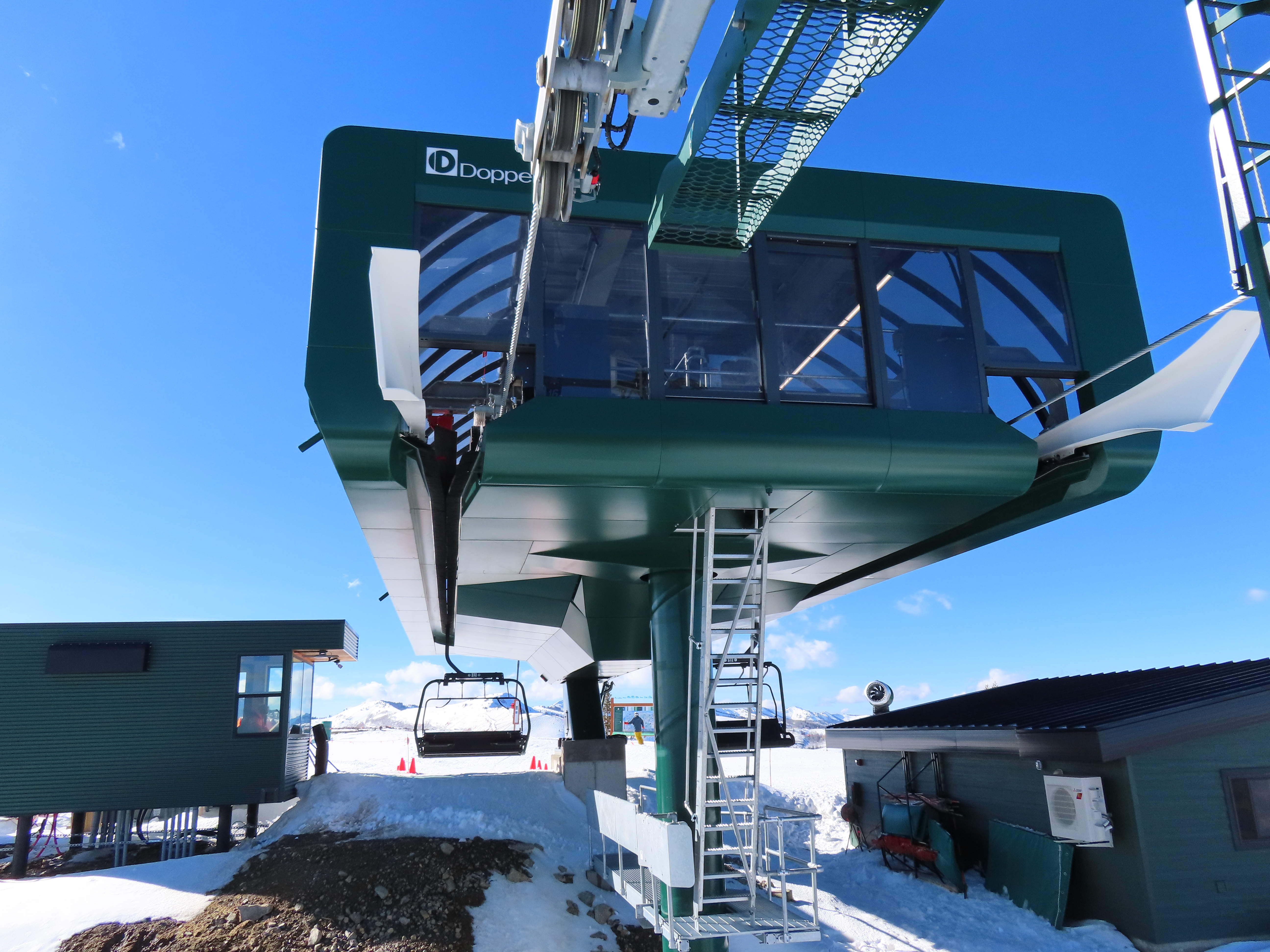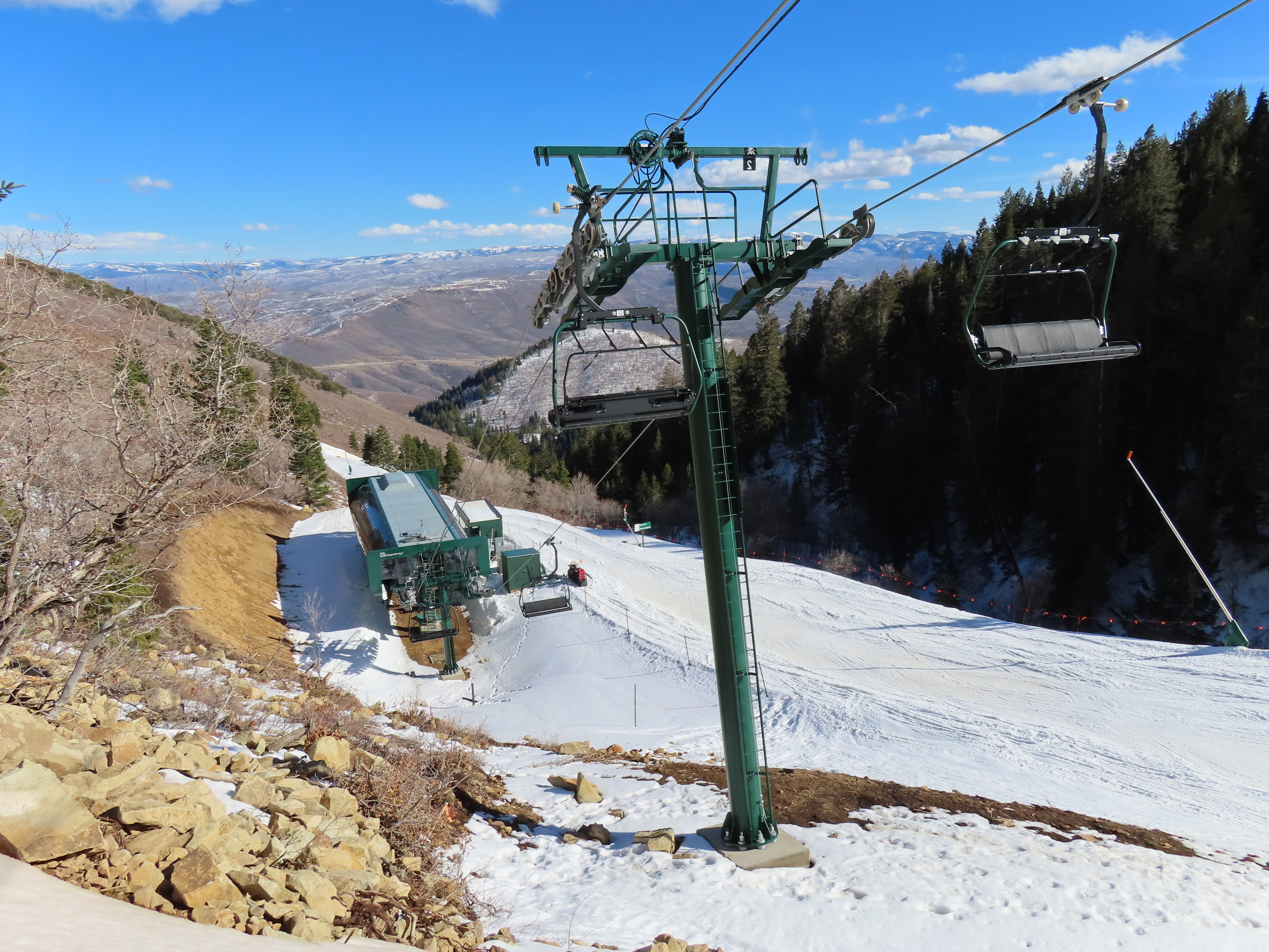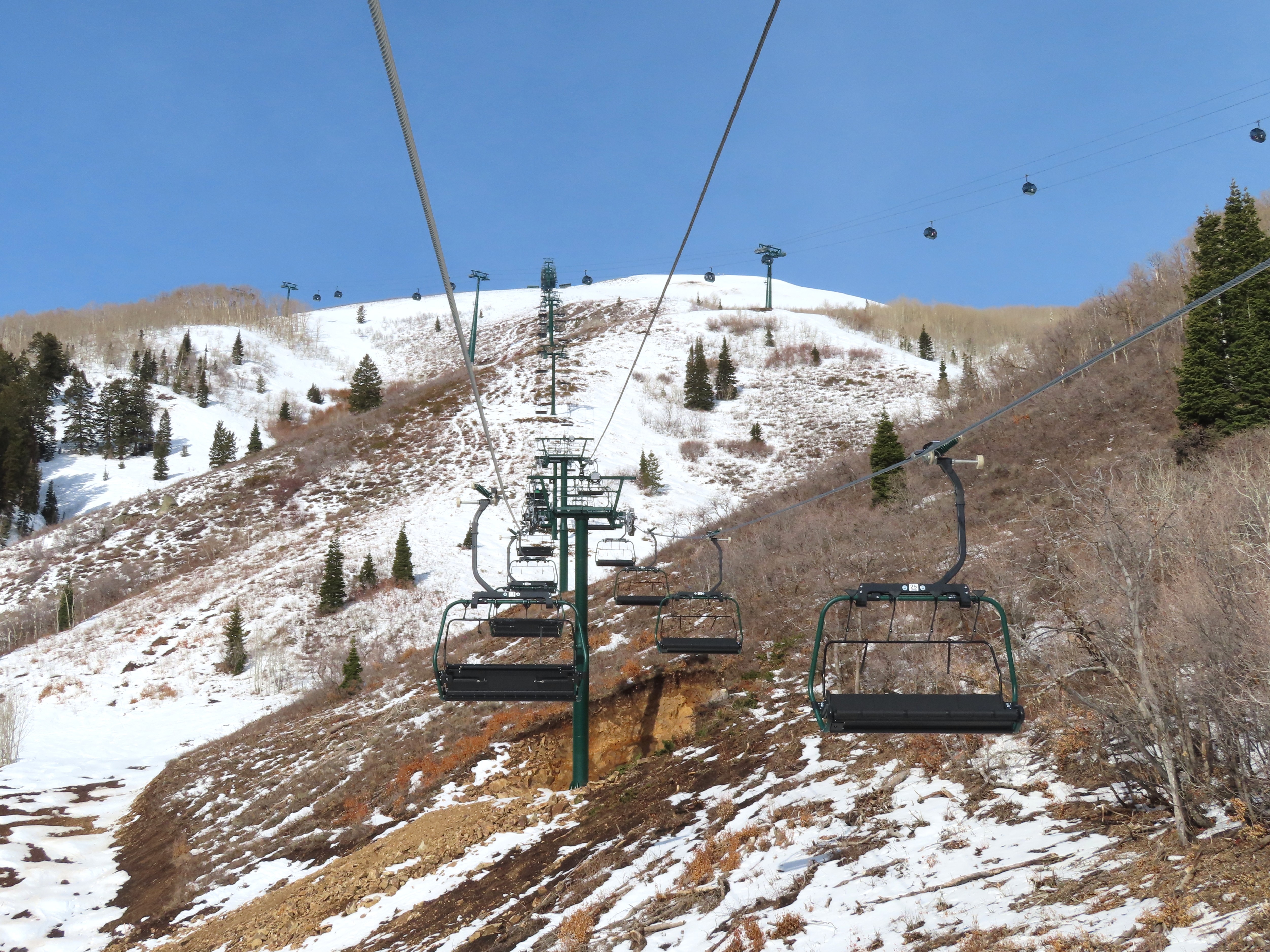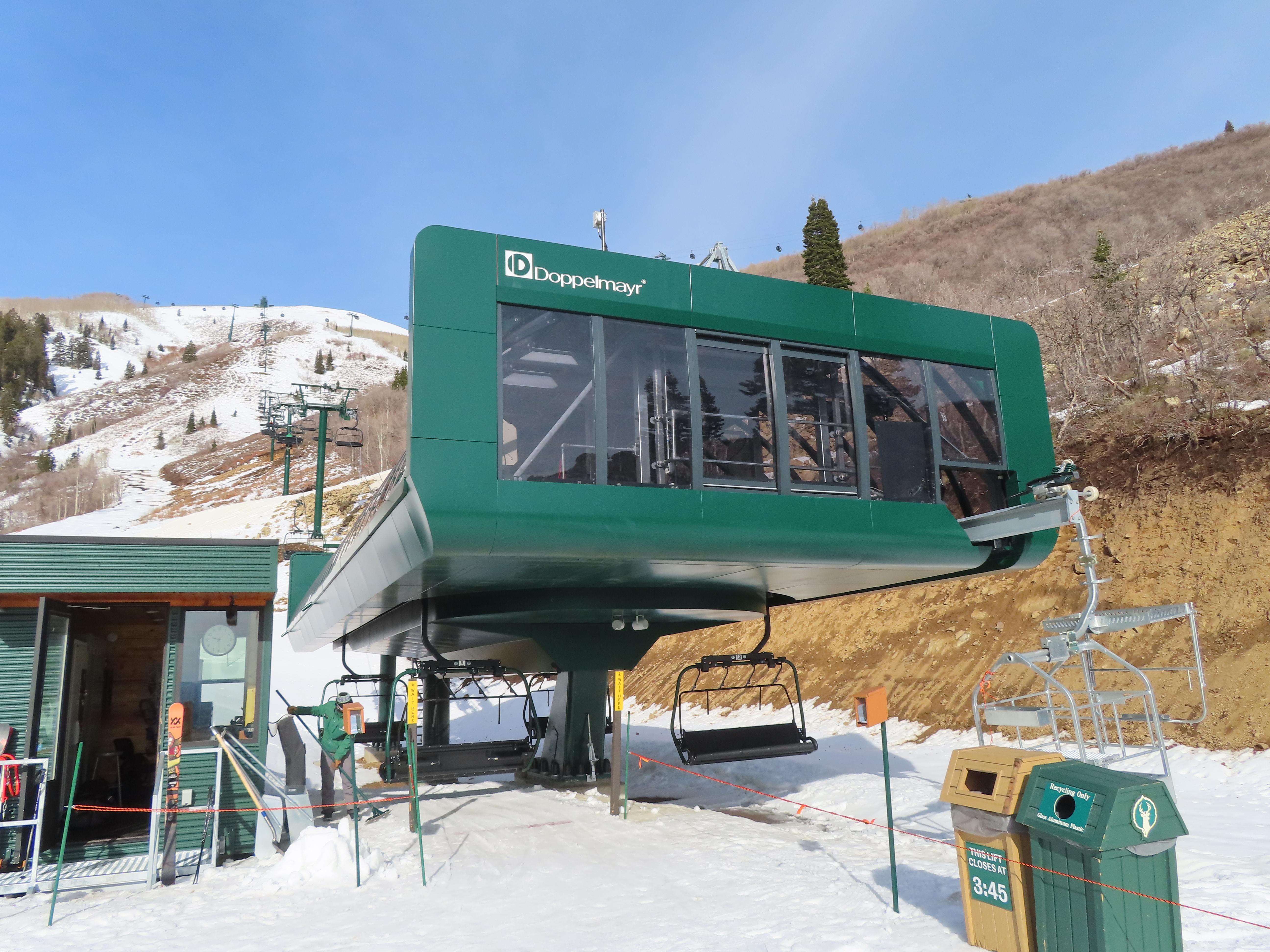 This lift serves the upper half of what was originally planned as one very long lift up the gut of Park Peak.Near the top, Revelator passes underneath the East Village Gondola section II.Lower station and tower 1 along the Catch All trail.View up the line near the bottom terminal.UNI-G station designed to mimic a D-Line.American style tower head.View riding up at tower 7.Looking back down the lower line.Tower 8.Crossing under the gondola at tower 10.View back down.Nearing the summit.Big breakover with three towers.Arriving at the drive.Unloading area on Park Peak.View toward Redemption Ridge.The entire lift seen from behind.Loading area.Riding out of the canyon.Doppelmayr Connect control system at the drive.View from the top terminal.Another view from the motor room.ABB electric motor.Due to its location, this lift incorporates both standby and evacuation engines.Controls in the station.Grip detach rail.View from the summit toward Big Dutch and Jordanelle.Side view of the drive station and breakover.Upper terminal seen from Redemption.