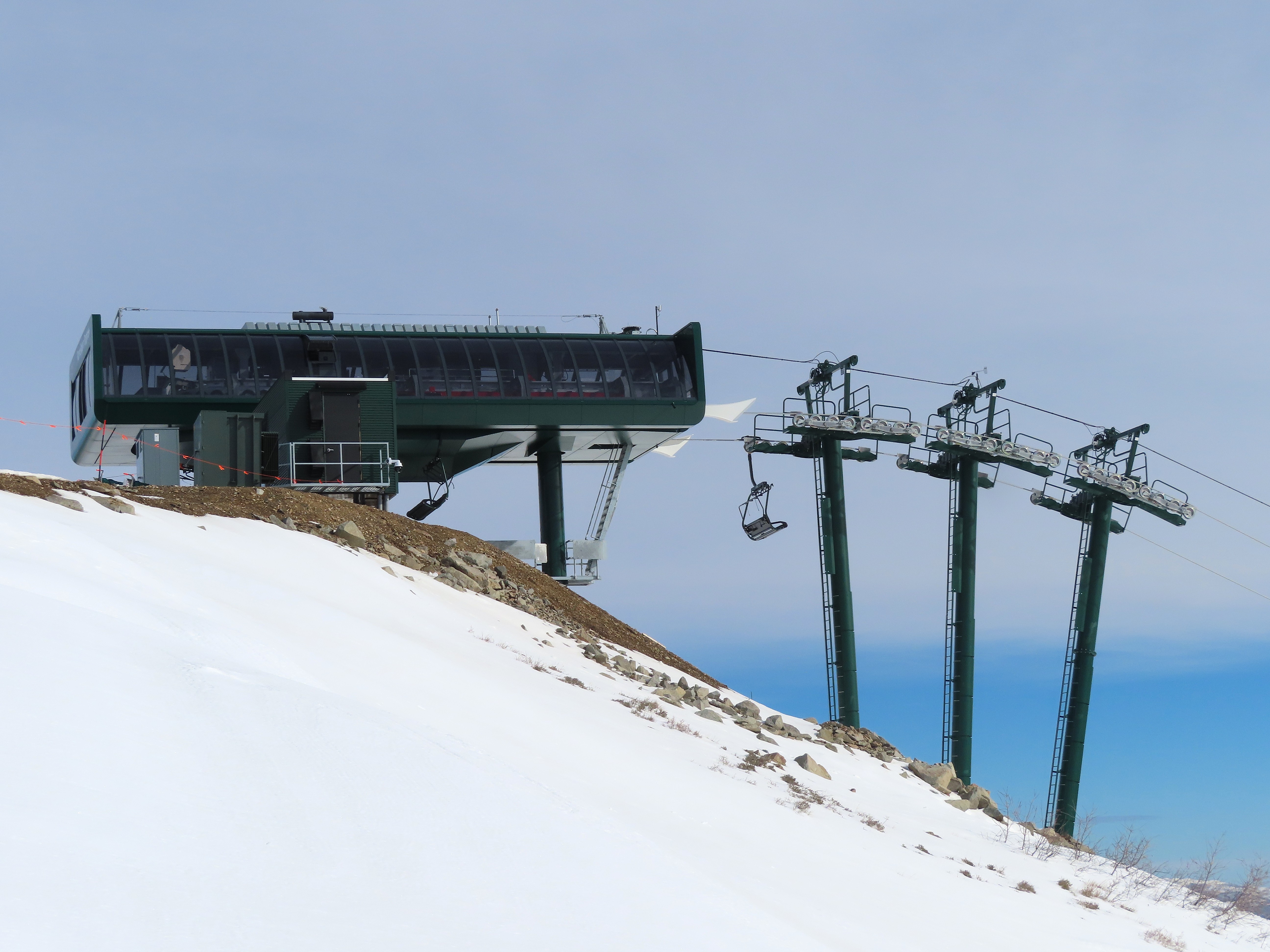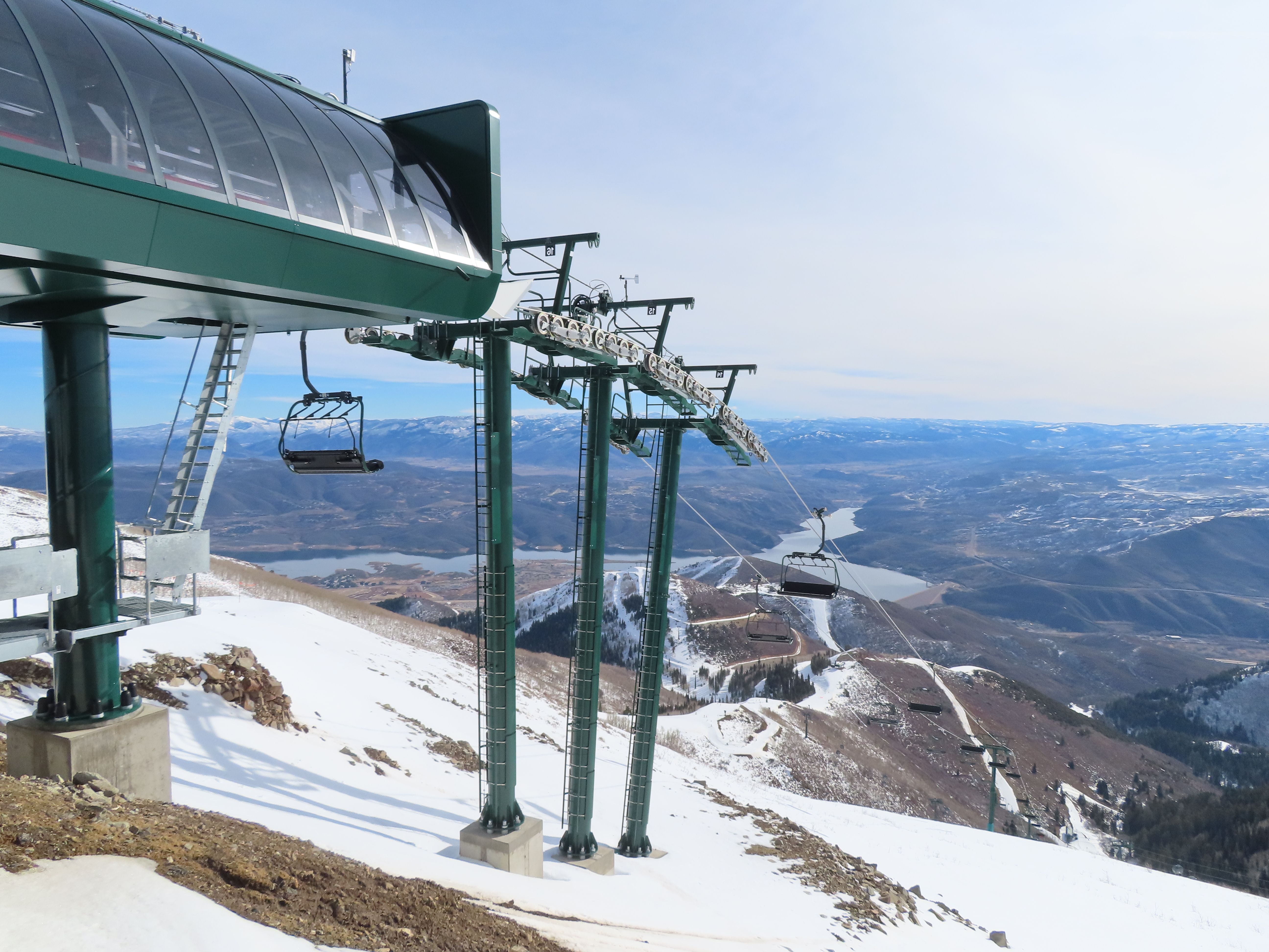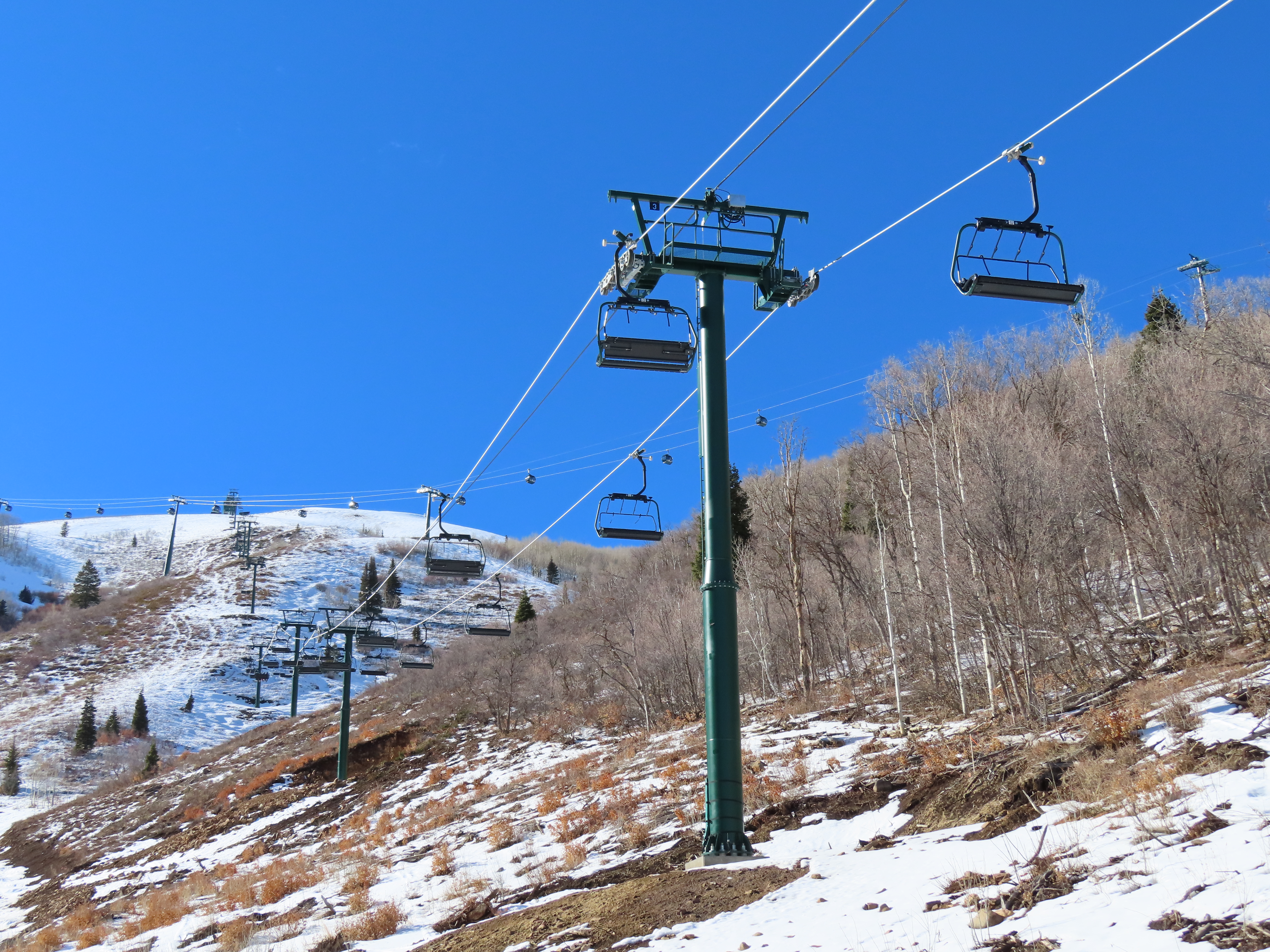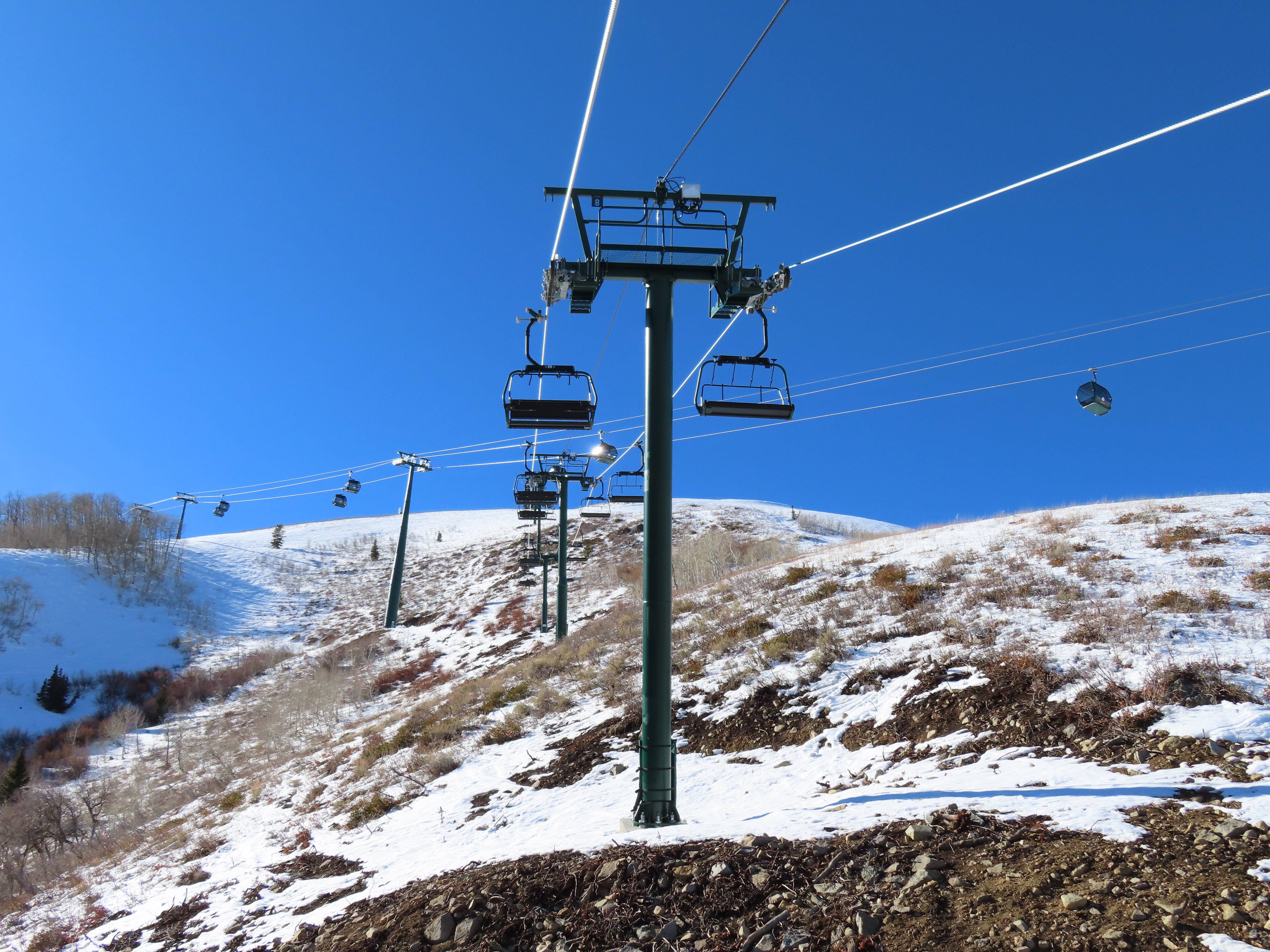 This lift serves the upper half of what was originally planned as one very long lift up the gut of Park Peak.Near the top, Revelator passes underneath the East Village Gondola section II.Lower station and tower 1 along the Catch All trail.View up the line near the bottom terminal.UNI-G station designed to mimic a D-Line.American style tower head.View riding up at tower 7.Looking back down the lower line.Tower 8.Crossing under the gondola at tower 10.View back down.Nearing the summit.Big breakover with three towers.Arriving at the drive.Unloading area on Park Peak.View toward Redemption Ridge.The entire lift seen from behind.Loading area.Riding out of the canyon.Doppelmayr Connect control system at the drive.View from the top terminal.Another view from the motor room.ABB electric motor.Due to its location, this lift incorporates both standby and evacuation engines.Controls in the station.Grip detach rail.View from the summit toward Big Dutch and Jordanelle.Side view of the drive station and breakover.Upper terminal seen from Redemption.