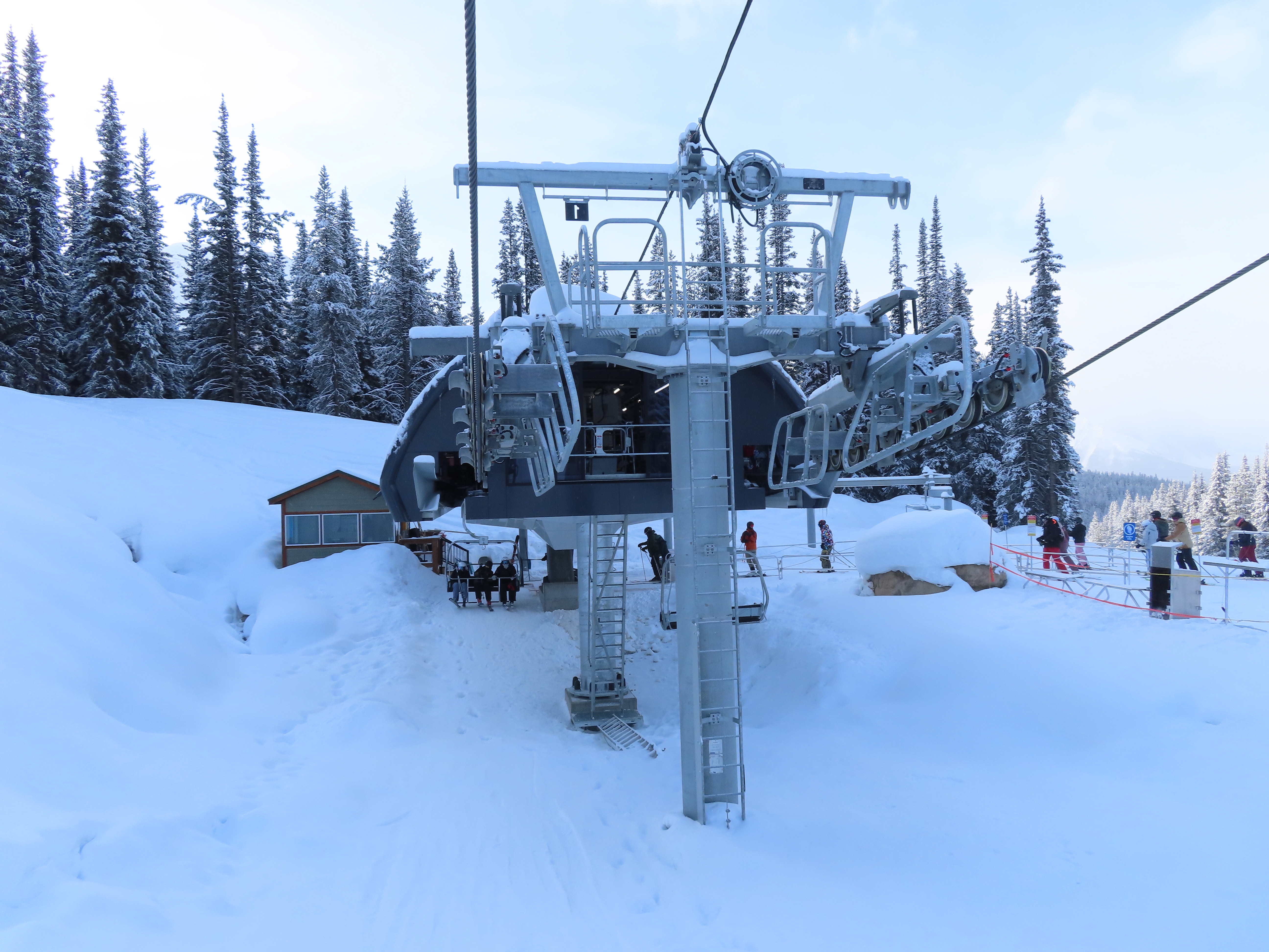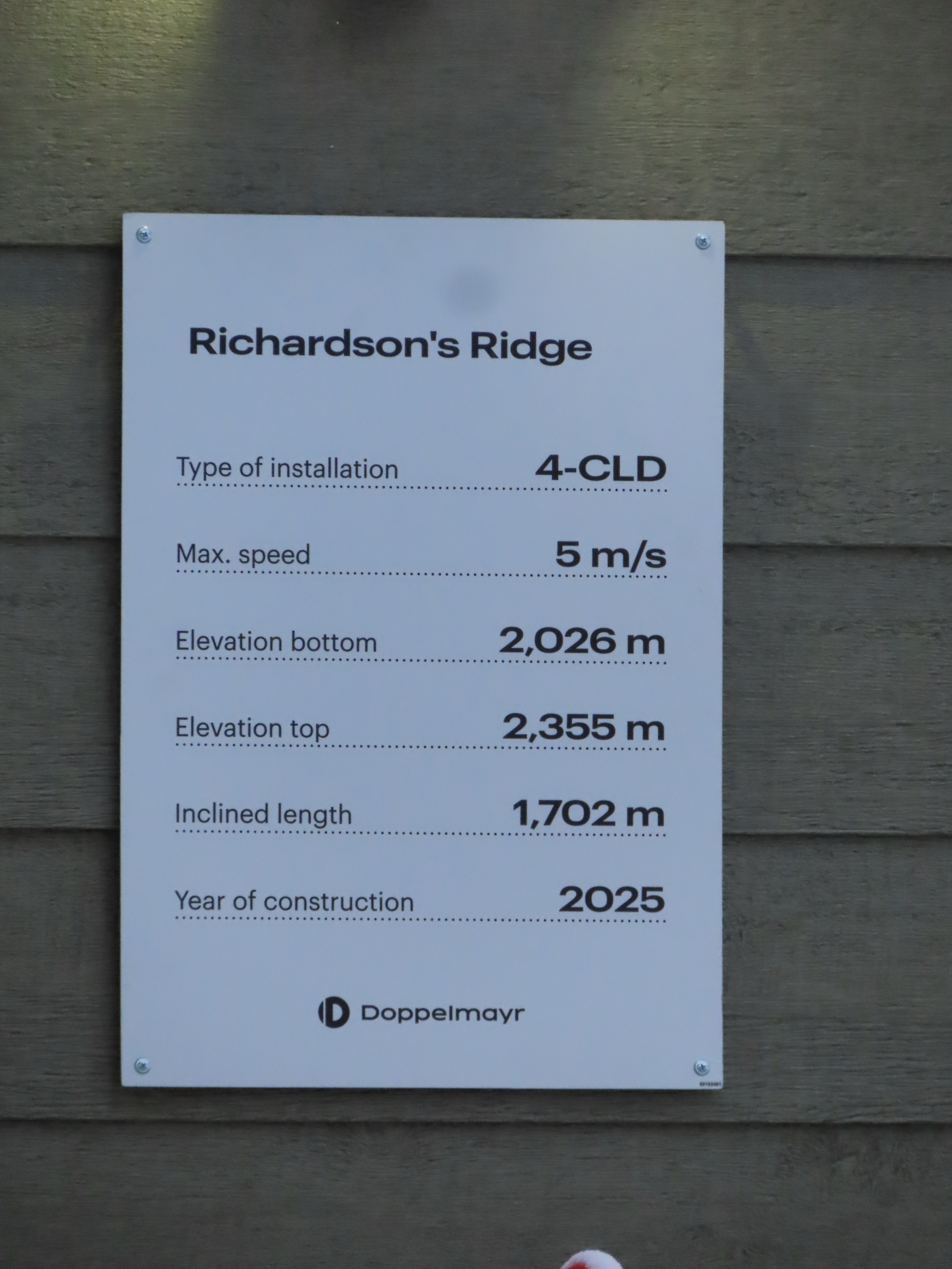 Lake Louise opened the Richardson’s Ridge expansion for the 2025-26 season.The expansion lift became Lake Louise’s third new Doppelmayr detachable in five years.View up the line at tower 5.Doppelmayr stats sign.Tower 1 adjacent to the bottom terminal.View back toward Larch at tower 6.Rodomg up the line at tower 8.Nearly flat middle section of the line.Tower 15.View back toward Larch and Paradise lifts.Tower 16.Arriving at the return terminal.Unloading area.View from the summit.Tower 18 and the upper station.The final few towers.Looking down the line at tower 16.Tower 15 seen from above.Middle part of the line.Tower 13.T12.Tower 10 above Larch.View up at T11.Steepest part of the line below tower 7.Hold down tower 5.The first few towers.View up from the bottom terminal.Name on the side of the UNI-G station.Agamatic grip.Another view of the top station.Side view of a tower head.90 degree loading.Expansion area seen from Larch.Lift line overview.Base station tucked along the Pika trail.UNI-G drive station.Lift overview.Long maintenance rail and work carrier.Tall tower 4.Carrier with foot rests.Crossarm on tower 15.Upper station overview.This expansion also opened hike-to terrain above the top station.Side view of the return.Tower 3.Lower station just above Temple Lodge. A future surface lift may connect the two.