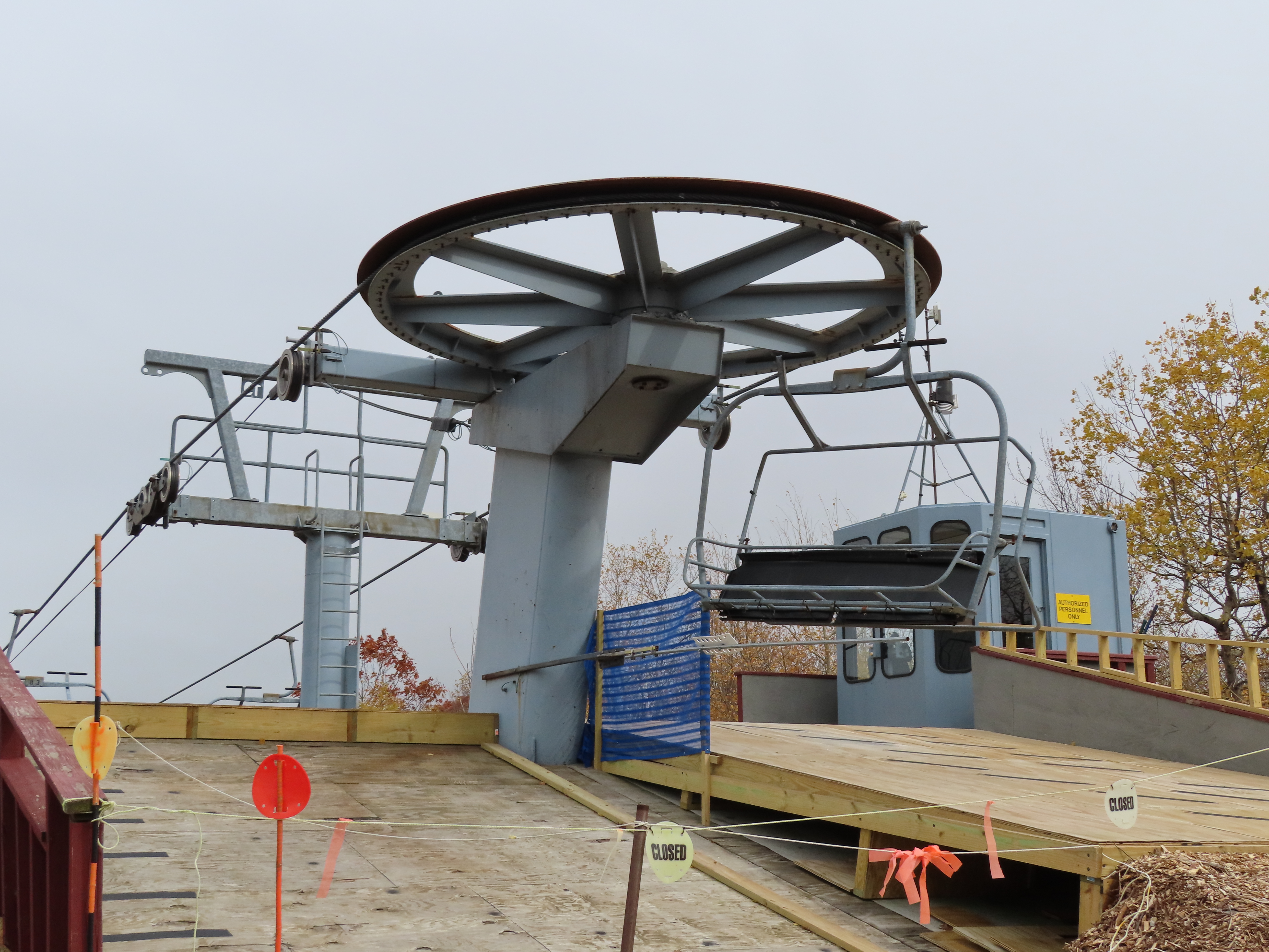 This was the Superchief fixed grip quad at Belleayre. It was built in 1999 and only operated 7 seasons before going detachable. Most of the tower tubes stayed at Belleayre and were reused on the detachable. This lift mostly reuses tower tubes from the Hall double it replaced. The others were either new or leftover tubes that Belleayre did not need in the conversion. At Belleayre, this lift would’ve had around 220 chairs based on the length, speed, and capacity. 104 were reused at Belleayre and the rest were sent here. The tower heads, line gear, drive, and return all came from Belleayre.