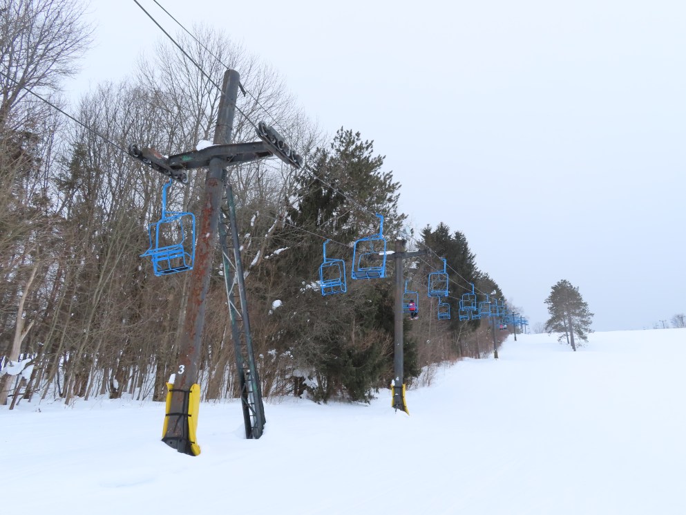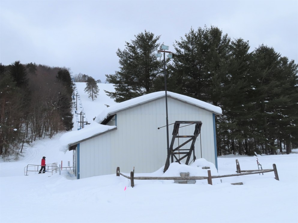 This Hall lift came from Mt. Rowe aka Alpine Ridge in Gilford, NH. It was sold to Snow Ridge by Milo Pike who had purchased the area from Attitash.