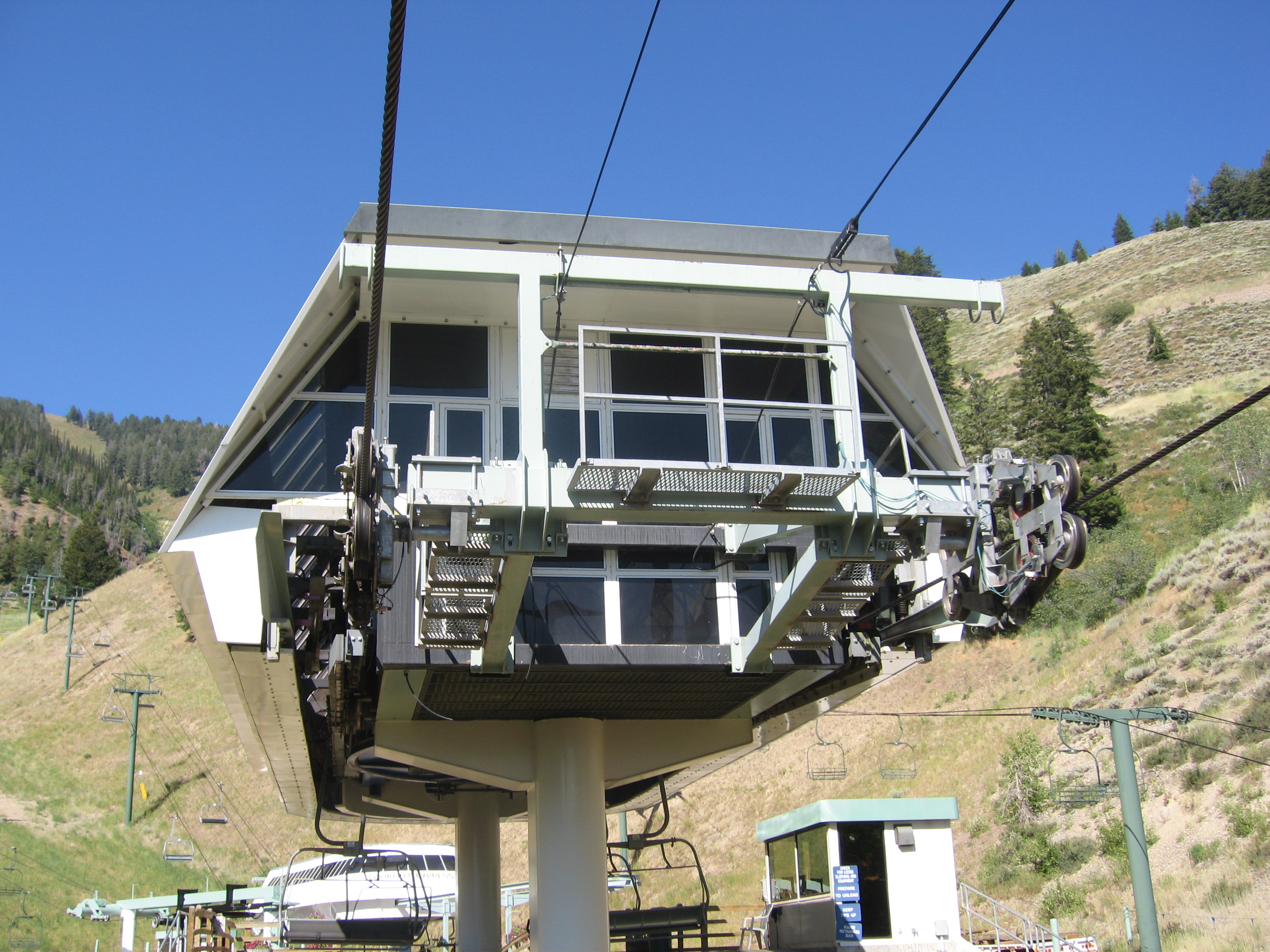 Top terminal during summer operations.Top terminal sandwiched between two Yan fixed grips.Top terminal seen from below with exposed bullwheel.Looking back towards River Run.Another view looking down the line.Bottom terminal at River Run Plaza.Arriving at the base.Lift line seen from the parking lot.The first few towers.Middle section of the line.Upper lift line.Top terminal next to sister lift Lookout Express.View down the line from above.Top terminal seen from above.Side view of the bottom station in River Run Plaza.Doppelmayr Worldbook entry.
