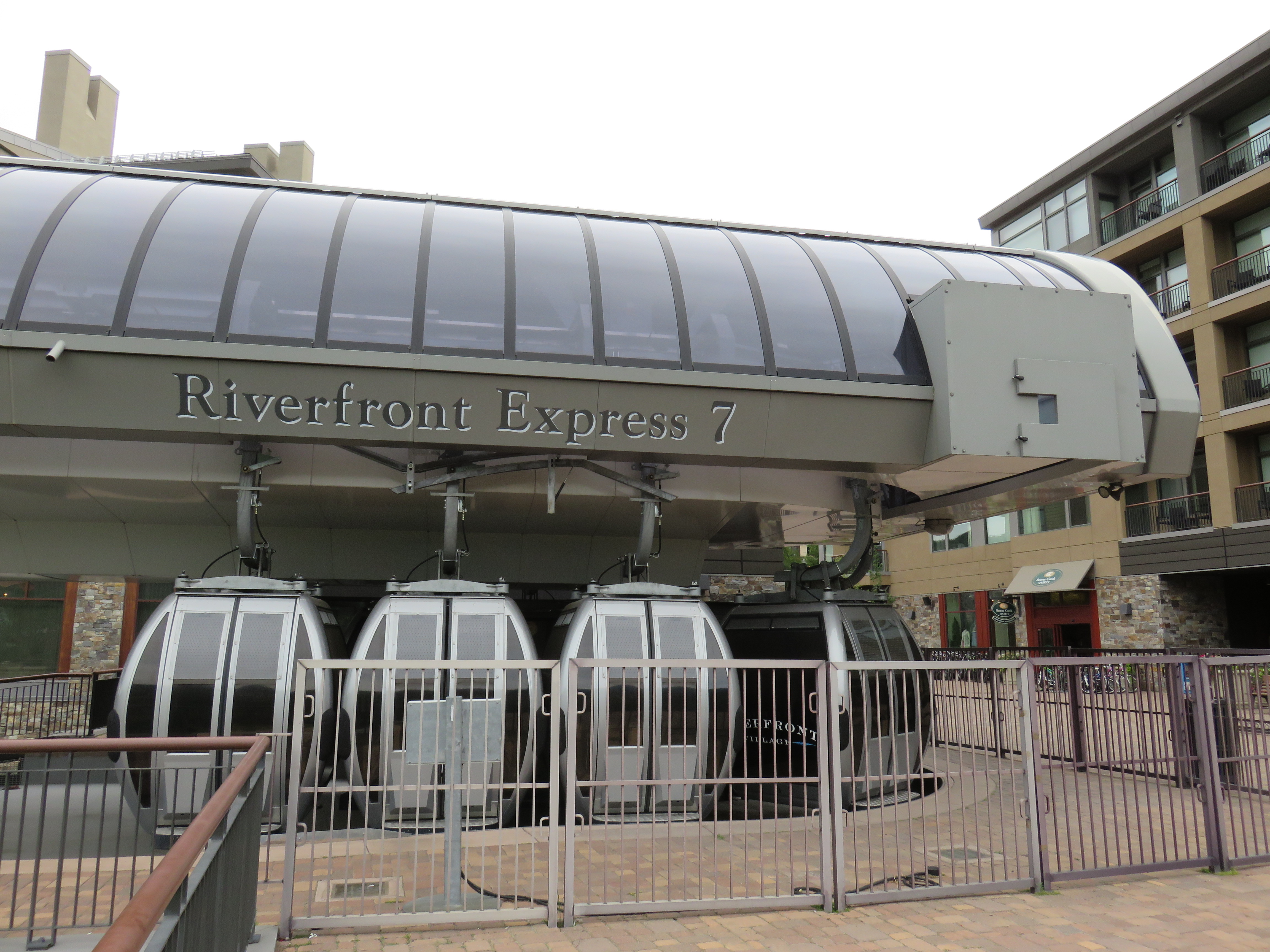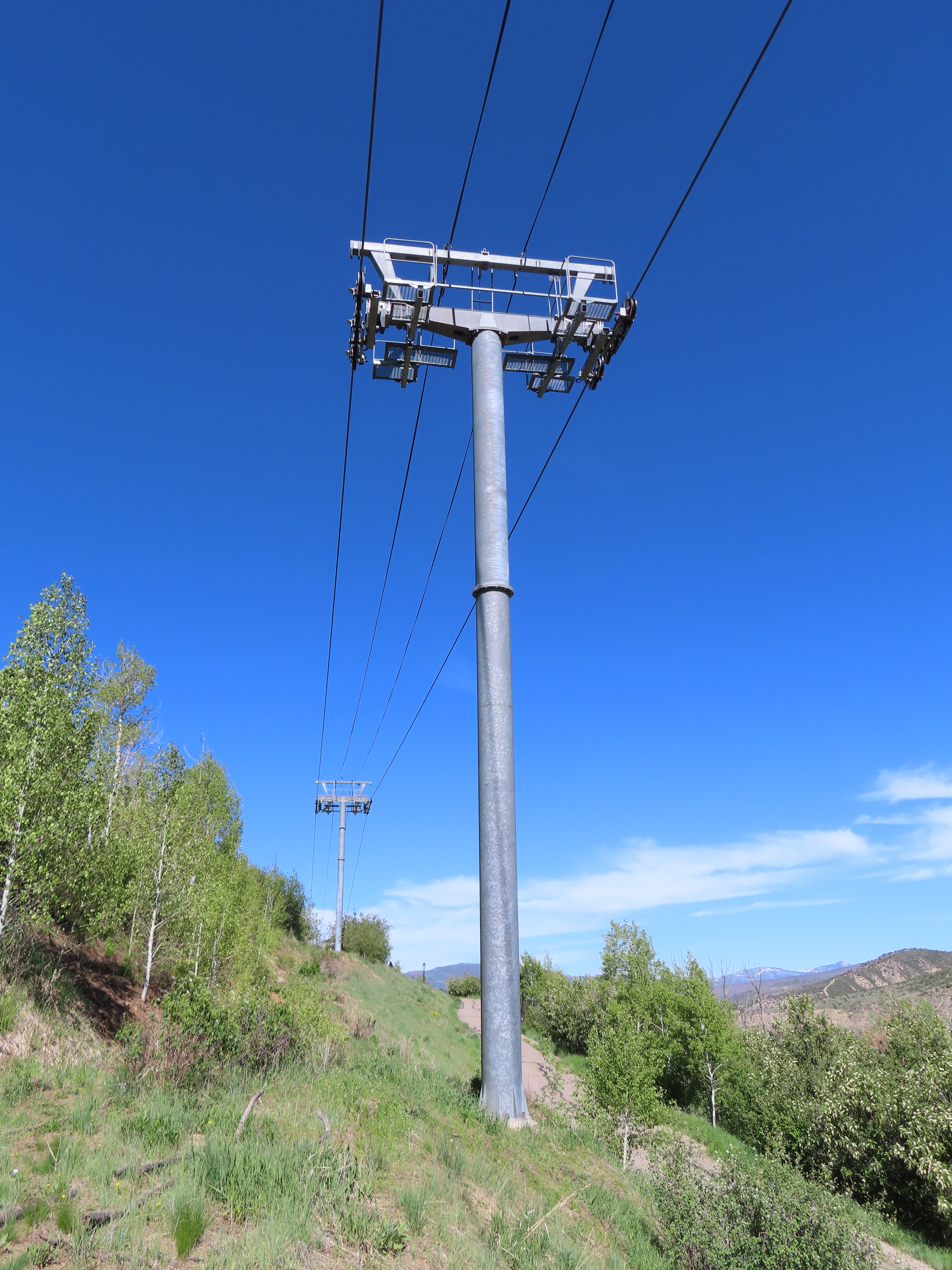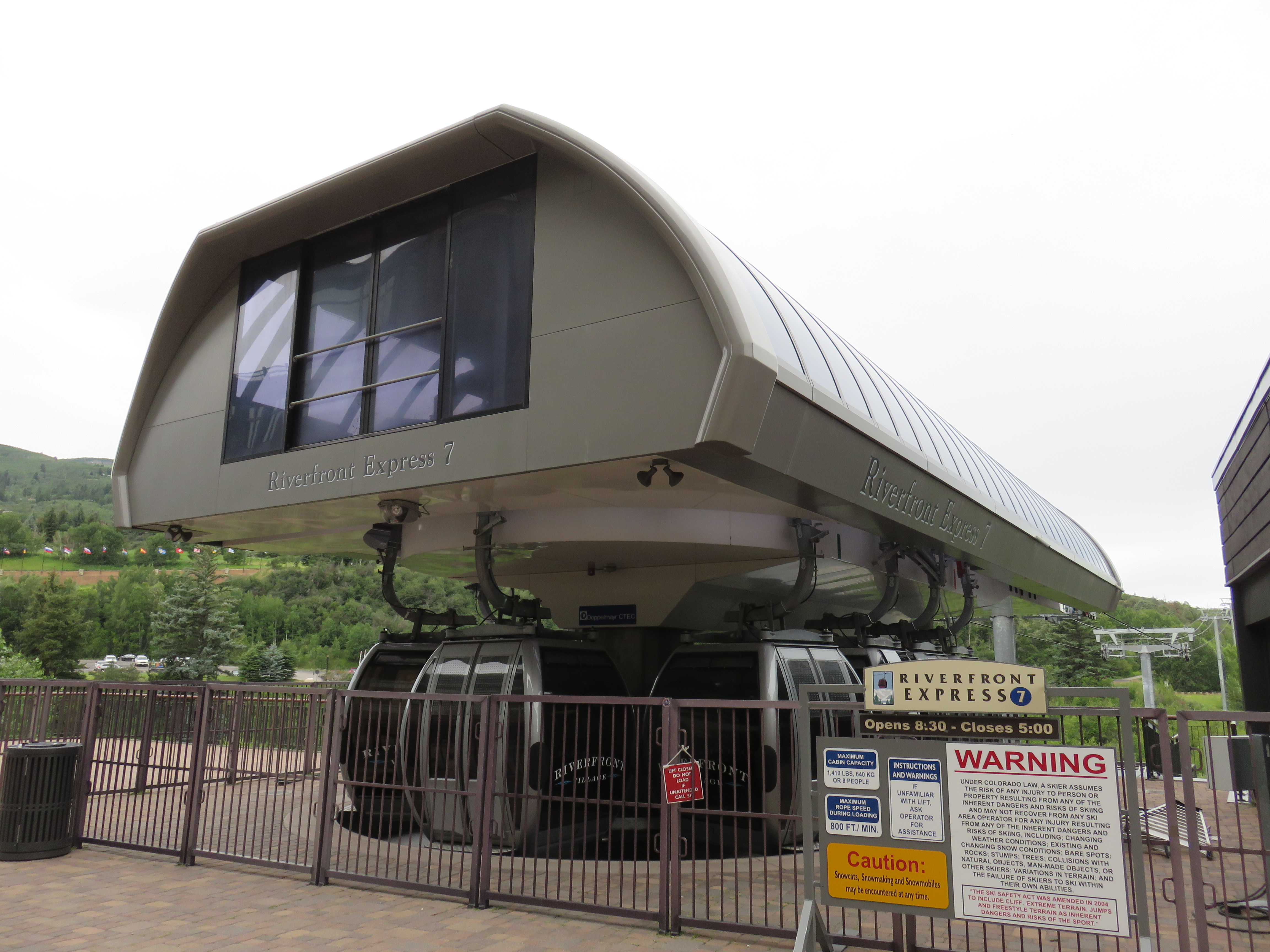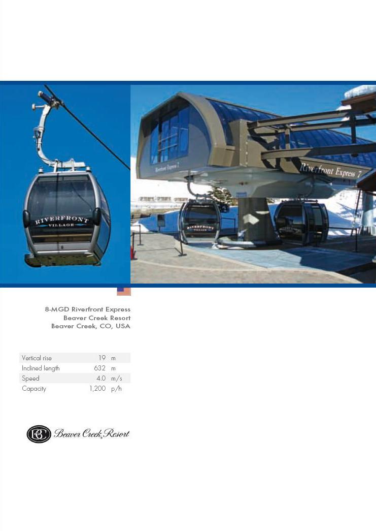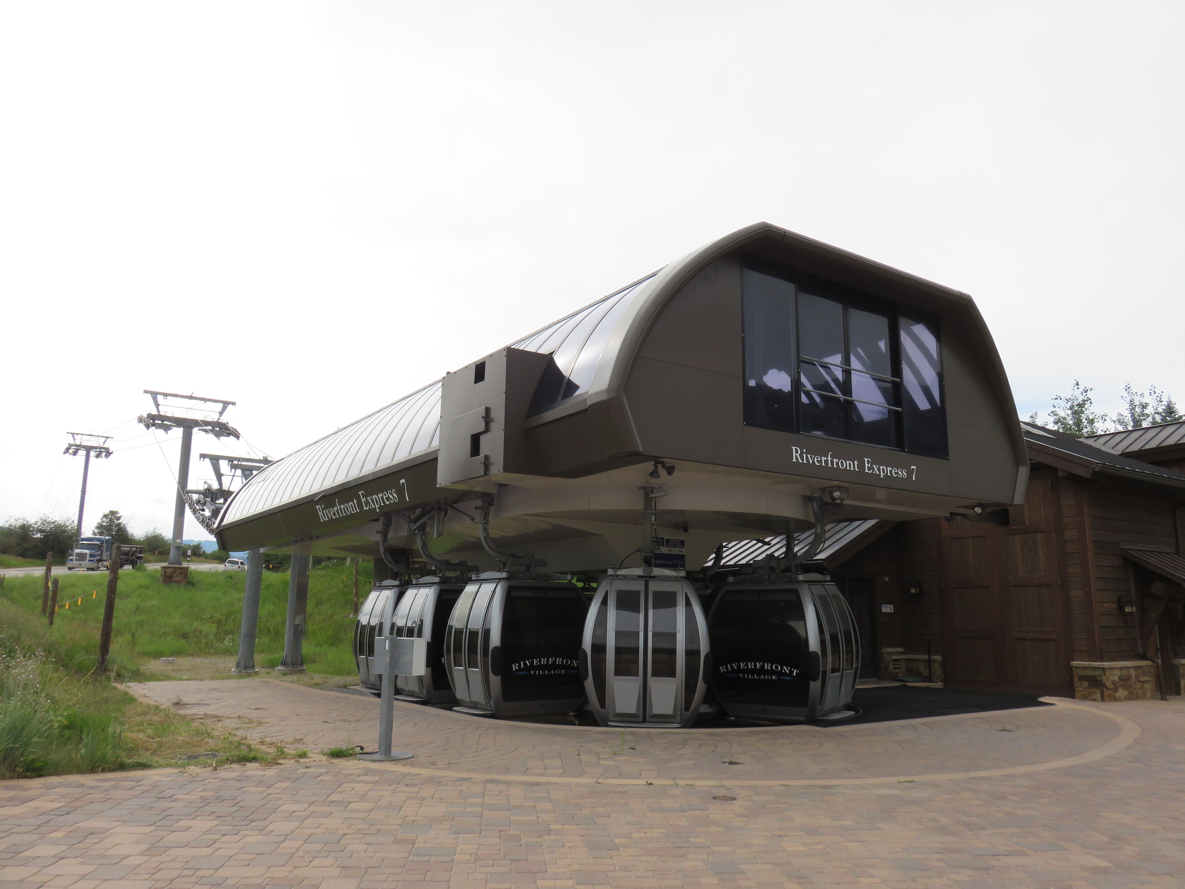 Westin Riverfront terminal.Another view of the Westin station.View towards Beaver Creek Mountain.Loading area with cabins parked for the summer.This lift was built well before the buildings around it.Doppelmayr Uni-G gondola terminal.Beaver Creek Mountain station with cabin maintenance bay.Cabin maintenance facility with integrated operator house.Towers 8 and 9.View crossing over US6.Middle part of the lift line.Looking down the line.The top three towers.Doppelmayr Worldbook entry.