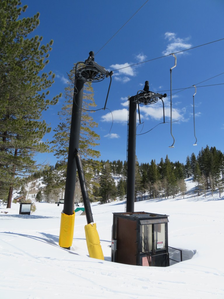 Rocco 1 & 2 – Sky Tavern, NV Rare Yan double surface lifts. Tower 2 looking up. Drive bullwheels at the base. View up the lines. Floating top tension bullwheels. Towers and platters. Top overview. Share this:EmailTwitterFacebookLike Loading...