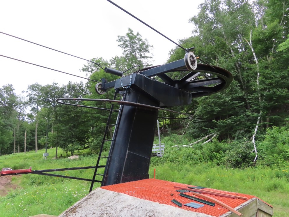 Santa – Granite Peak, WI This Thiokol triple came used to Granite Peak. Top terminal and upper lift line. View from the top. Top terminal. Lift line along a beginner trail. The first few towers. View up the line. Counterweight for tensioning purposes. Loading area. Lift overview. Share this: Click to email a link to a friend (Opens in new window) Email Click to share on X (Opens in new window) X Click to share on Facebook (Opens in new window) Facebook Like Loading...