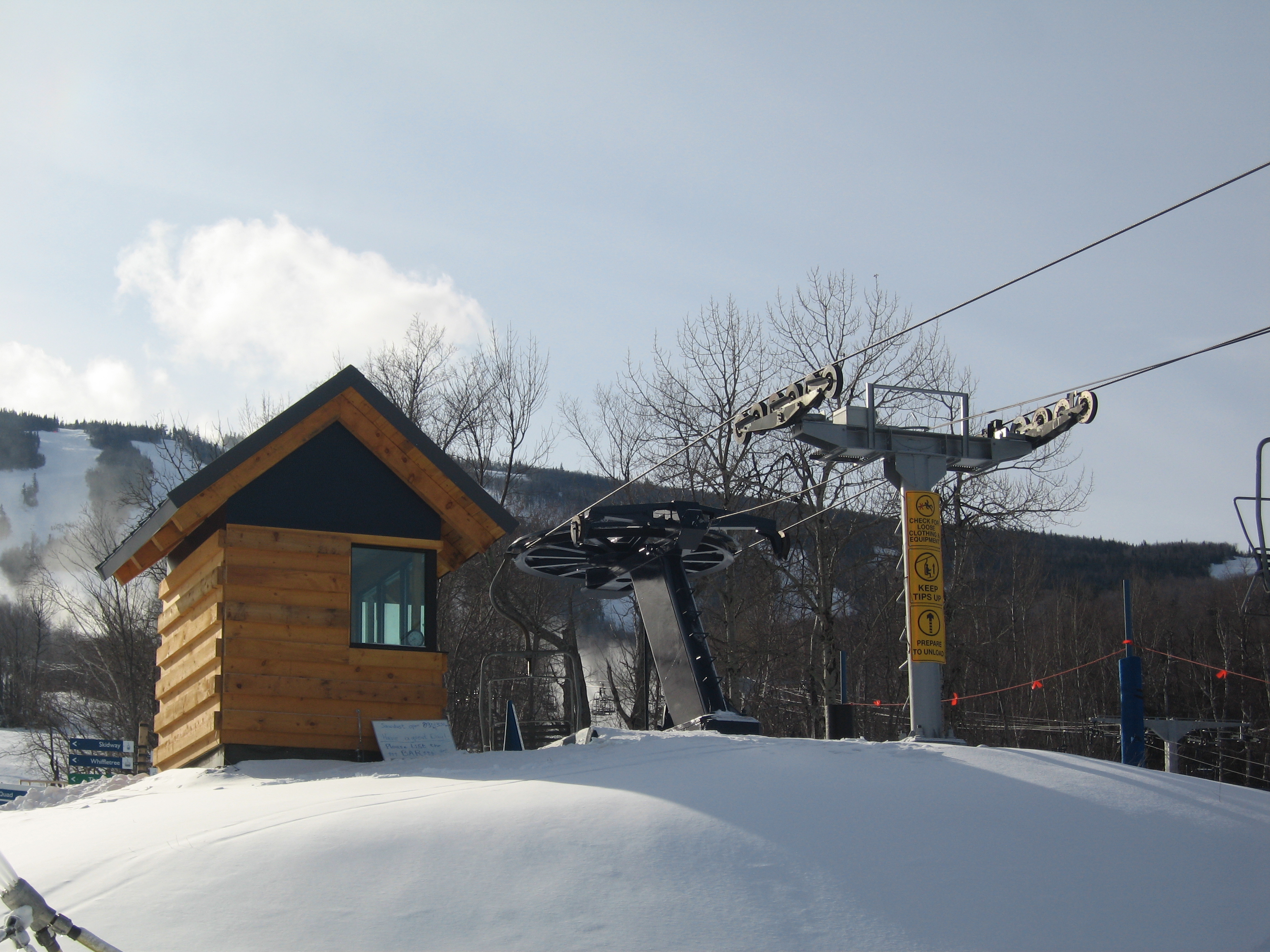 I’ve always loved riding this lift up through the base area, but in all honesty it makes it much less useful as a beginner lift, as beginners have to navigate through the crowded base area to get back to the Birches slope. (Originally, the lift went up the right side of Birches and ended below the base lodge.)